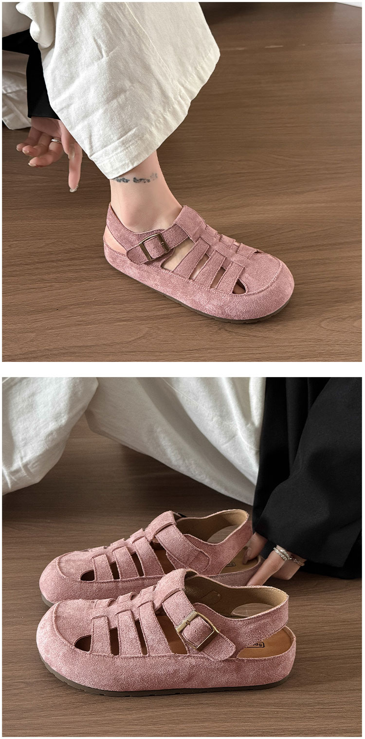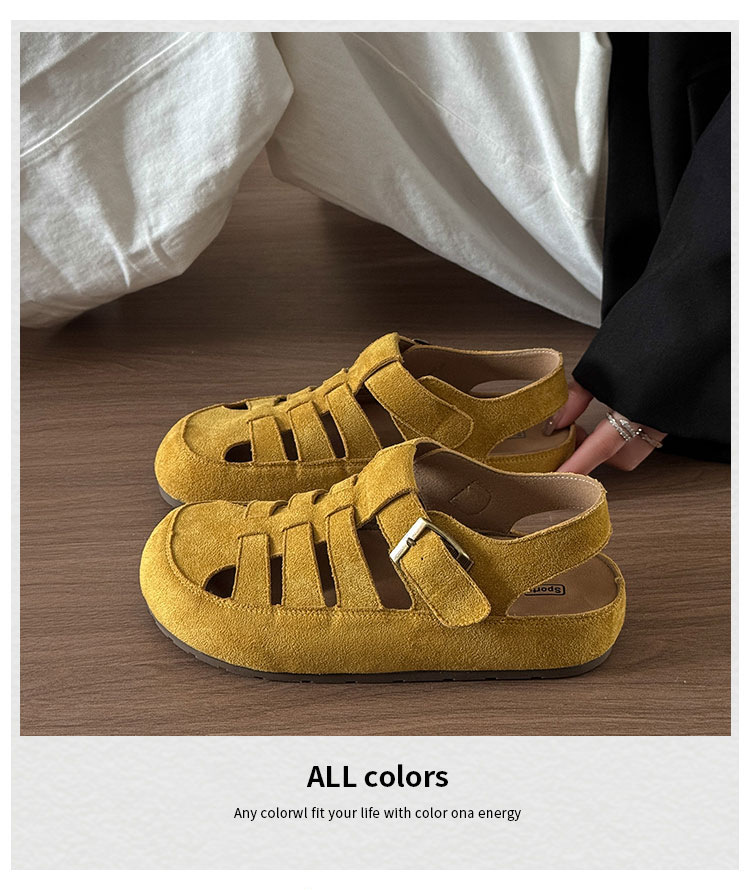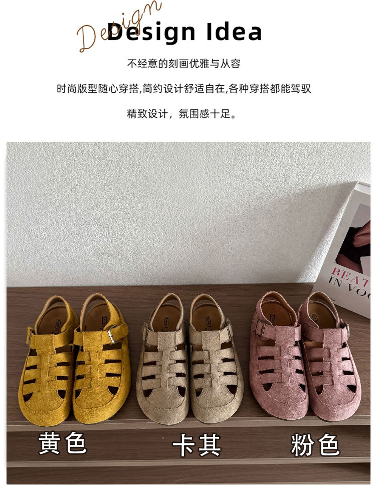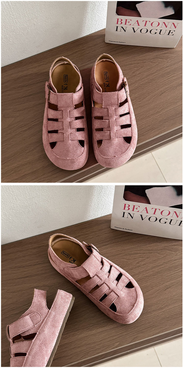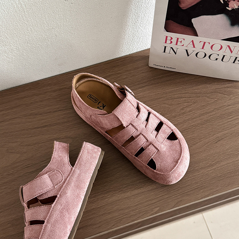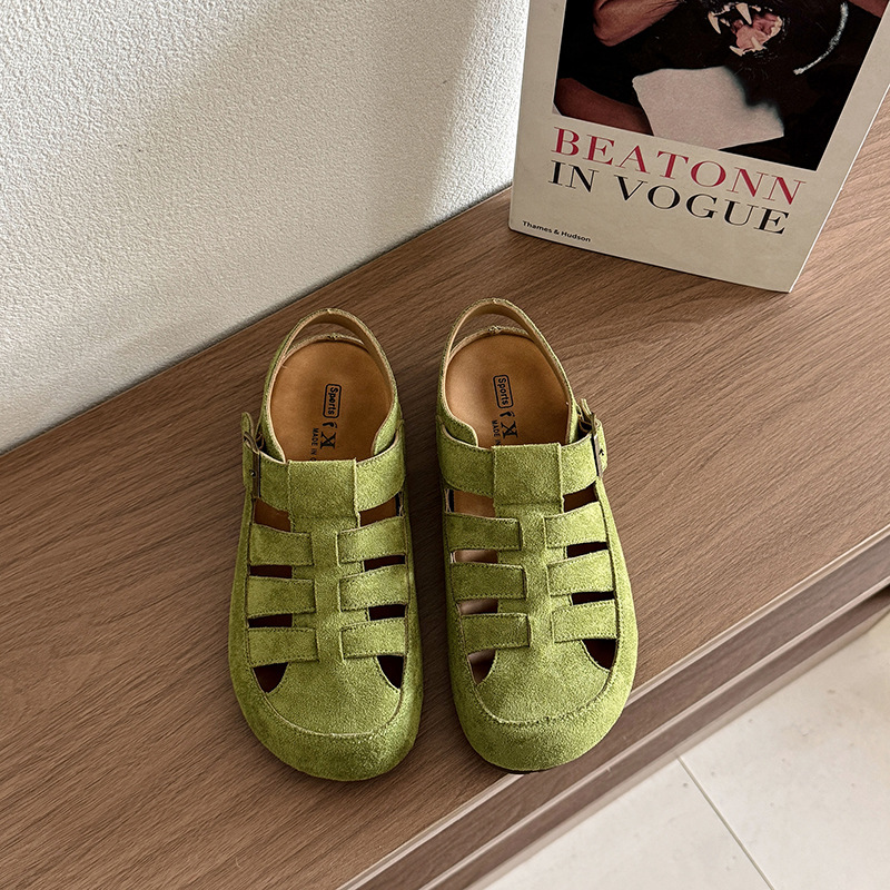 Cowhide 버전 ~ 정품 가죽 로마 샌들 여자 2025 년 여름 새로운 올매치 레트로 미운 동굴 보켄 샌들