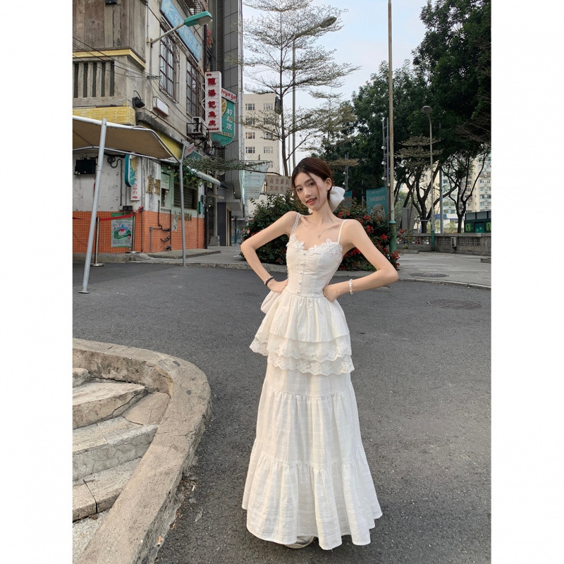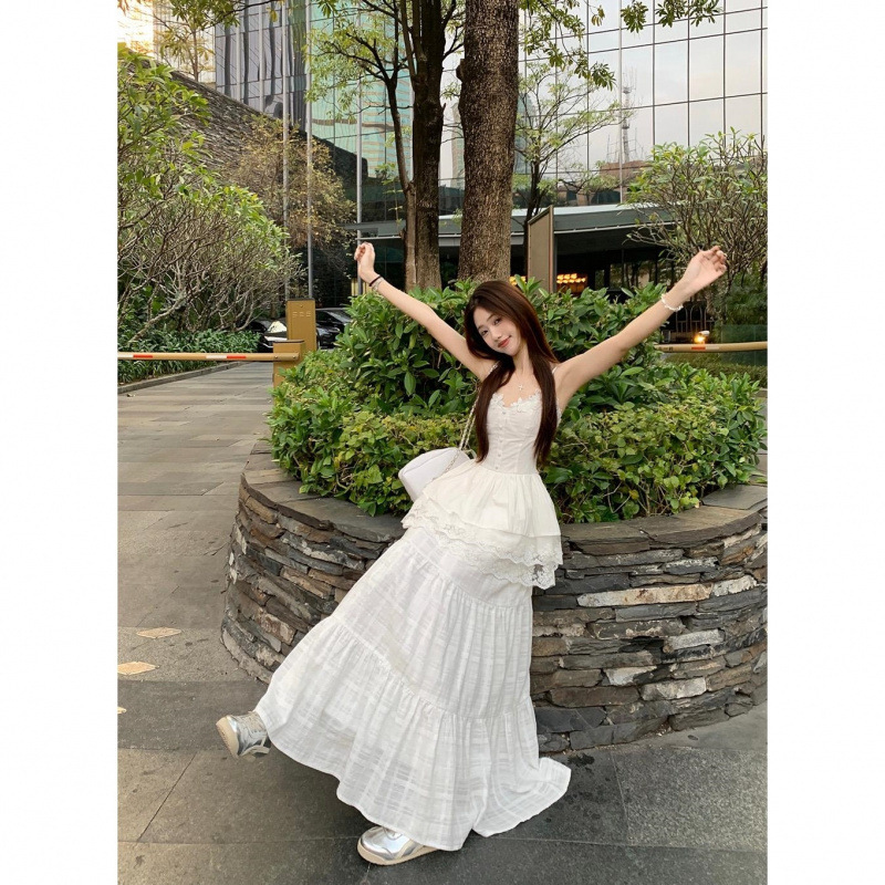 플러스 사이즈 여성 패션 부드러운 스타일 세트 봄 화이트 슬링 통통녀 벨리 커버 슬리밍 하프 길이 스커트 투피스 세트스토어 가기