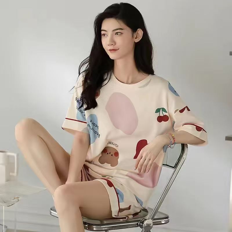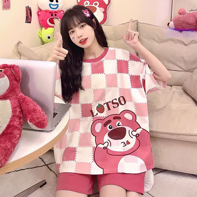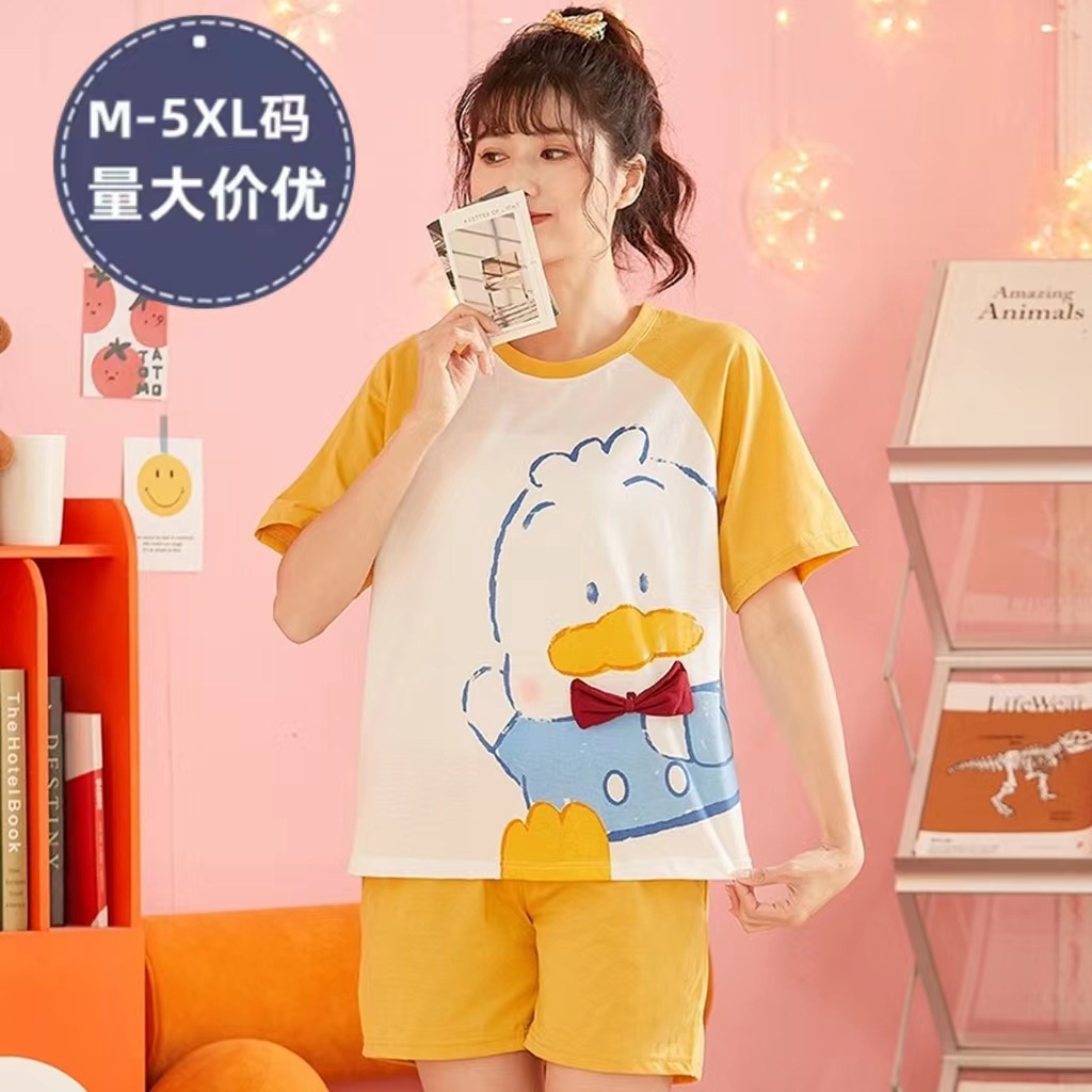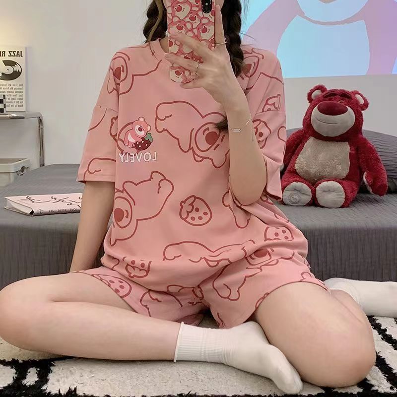 2025 새로운 잠옷 여성 반팔 여름 정장 한국 스타일 학생 달콤하고 귀여운 만화 느슨한 대형 가정 의류스토어 가기