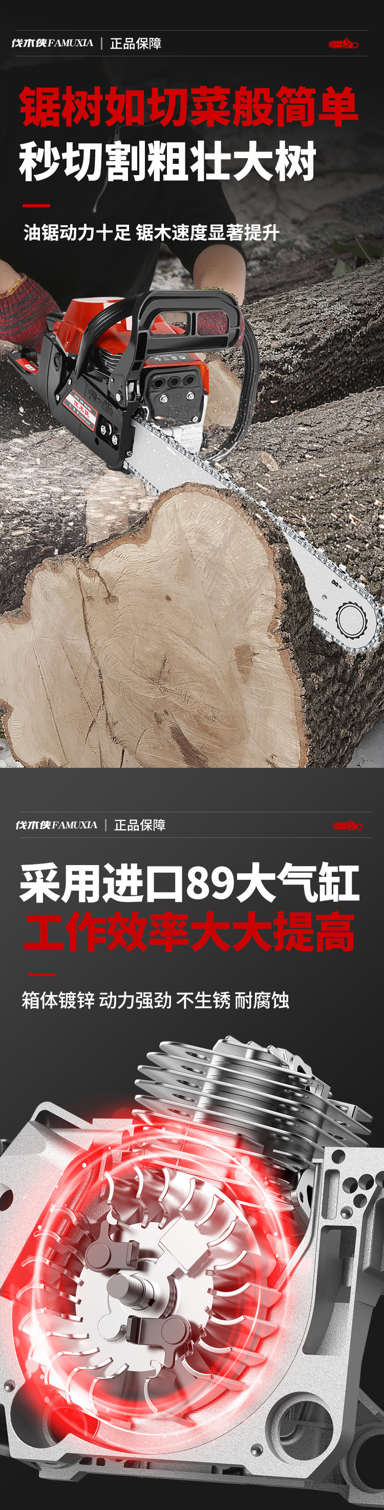 • 고품질 수입 체인 2개 장착 - 18inch [2행정 혼합 오일] 업그레이드 모델