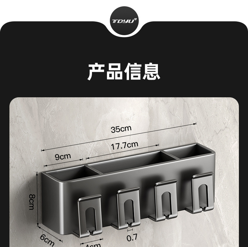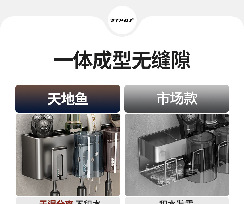 《욕실 건 그레이 칫솔 수납 선반, 펀치 없는 구강청결제 컵, 양치 컵, 전동 칫솔 선반, 수납 벽걸이스토어 가기