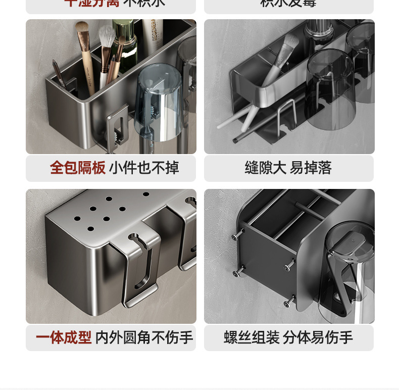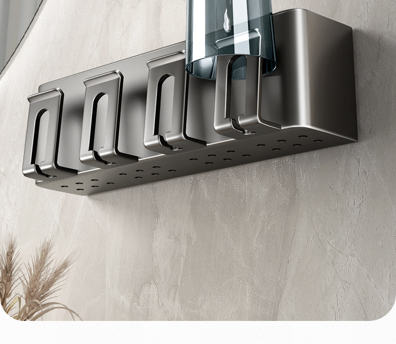 《욕실 건 그레이 칫솔 수납 선반, 펀치 없는 구강청결제 컵, 양치 컵, 전동 칫솔 선반, 수납 벽걸이