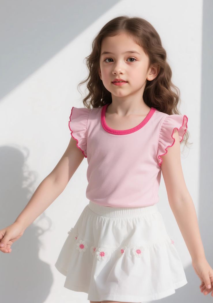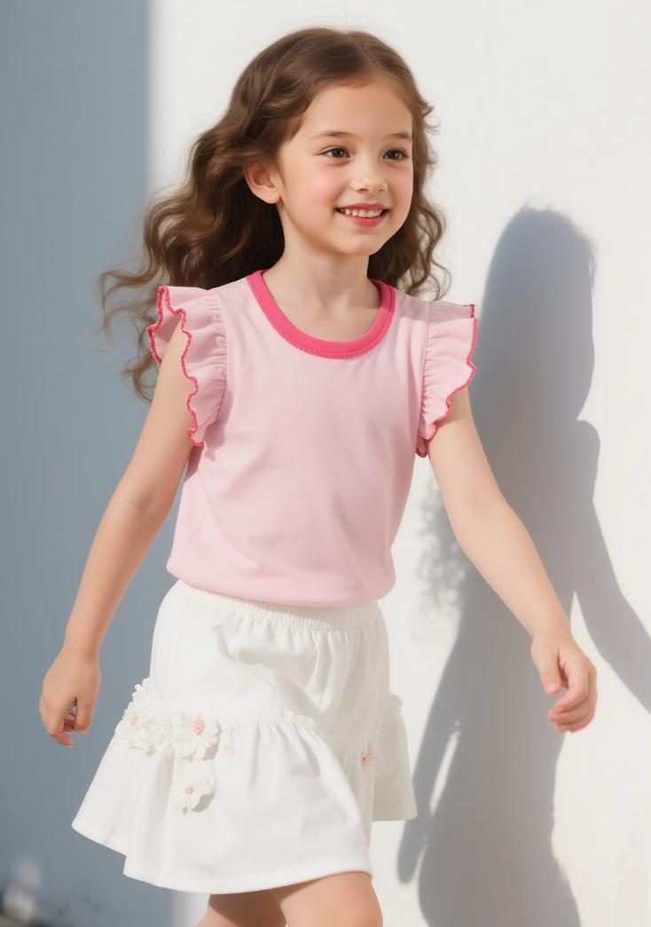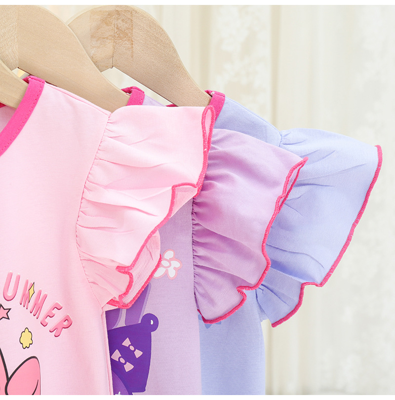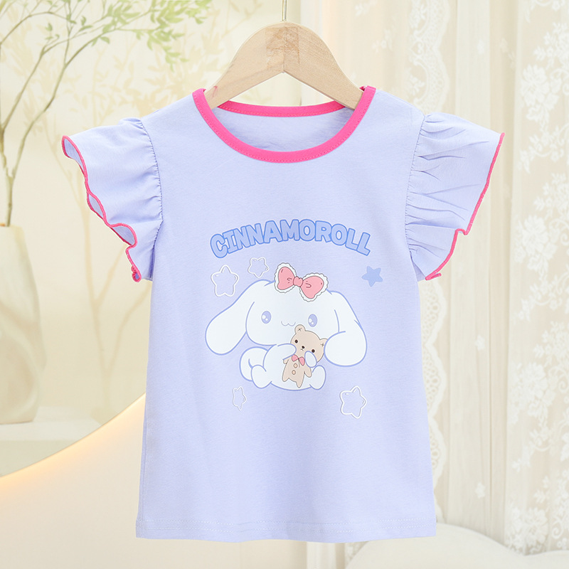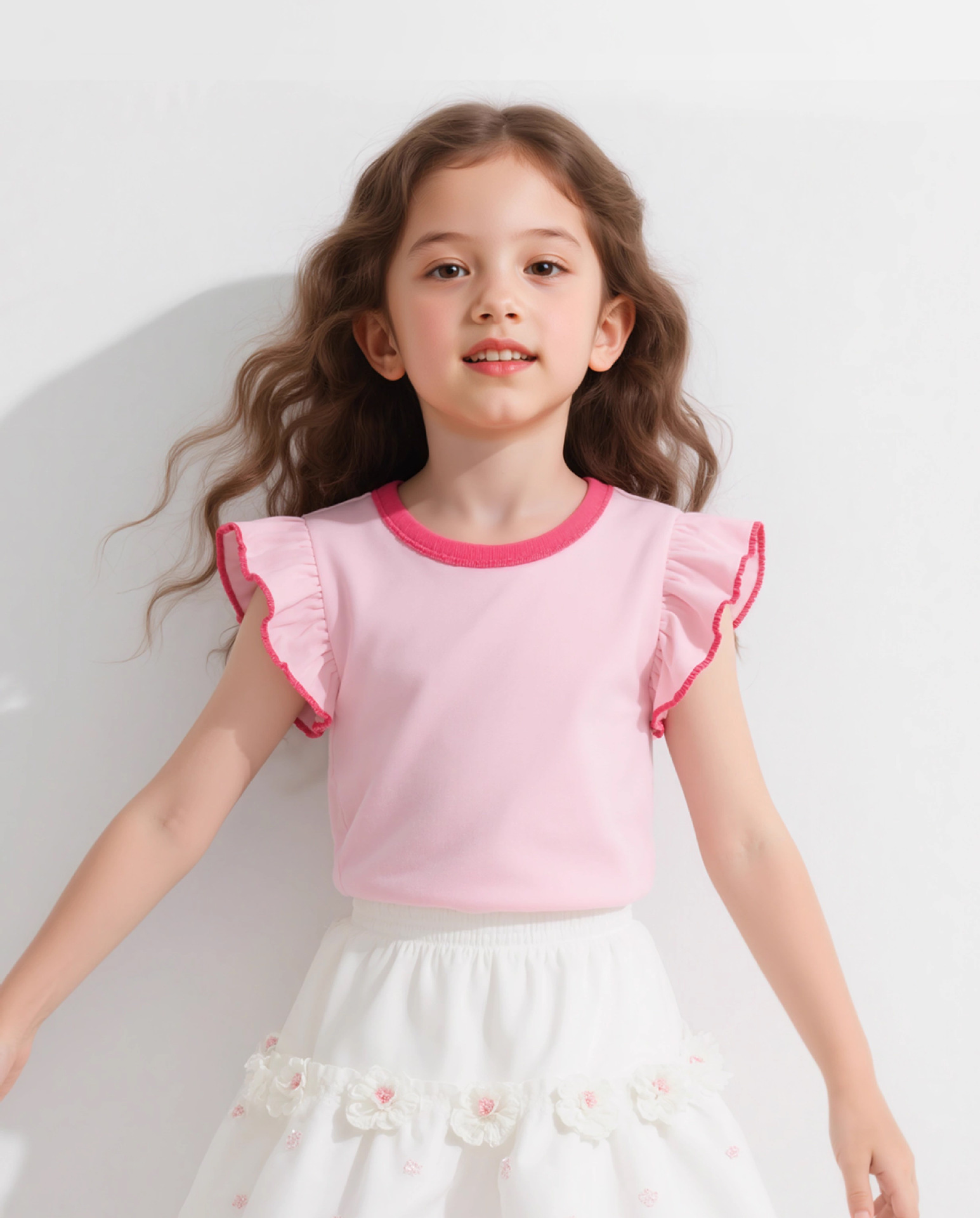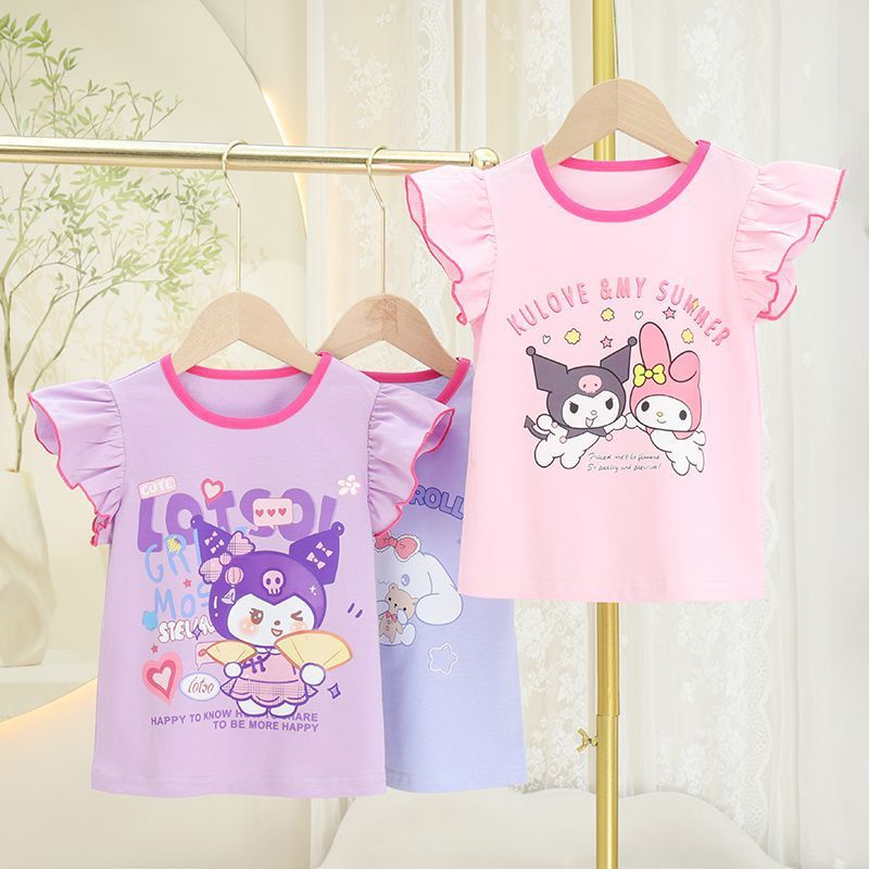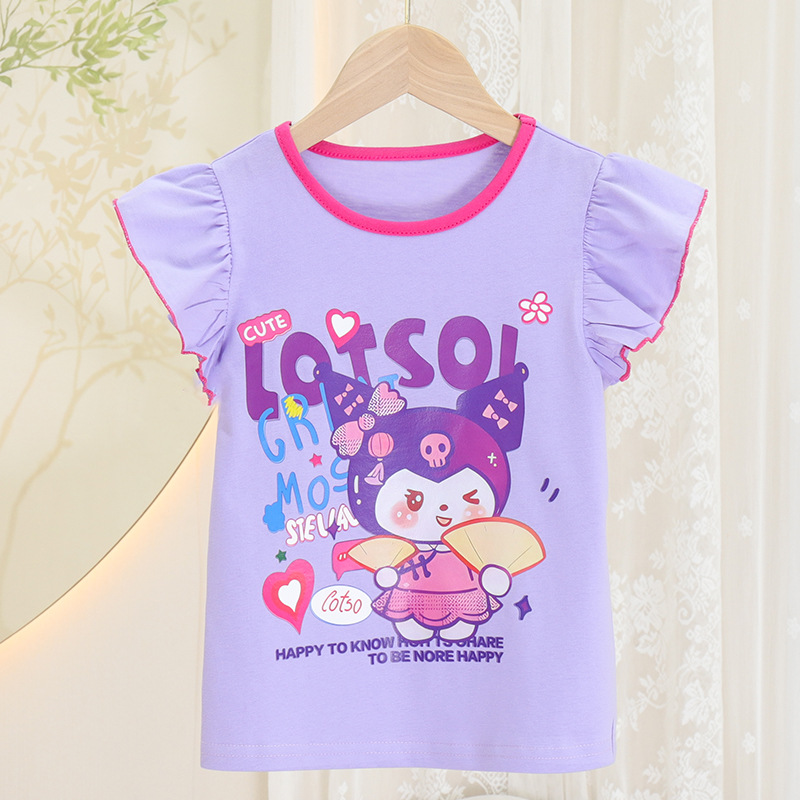 2025 년 여름 신예 소녀 러플 슬리브 반팔 티셔츠 유행 만화 탑 어린이 올 매치 웨스턴 스타일 아우터웨어