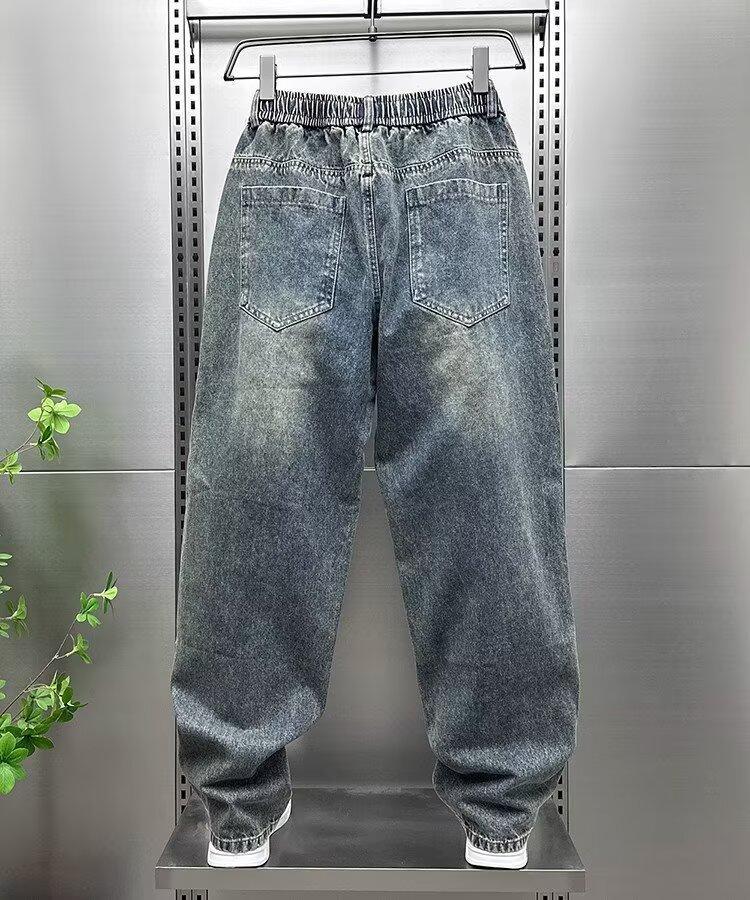 가을 트렌드의 남성을 위한 트렌디한 아메리칸 디자인 찢어진 청바지, 멋스러운 레트로 패치 패치 루즈 스트레이트 팬츠스토어 가기