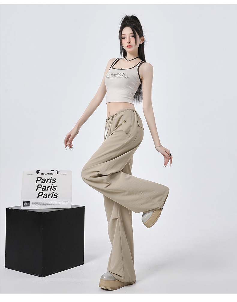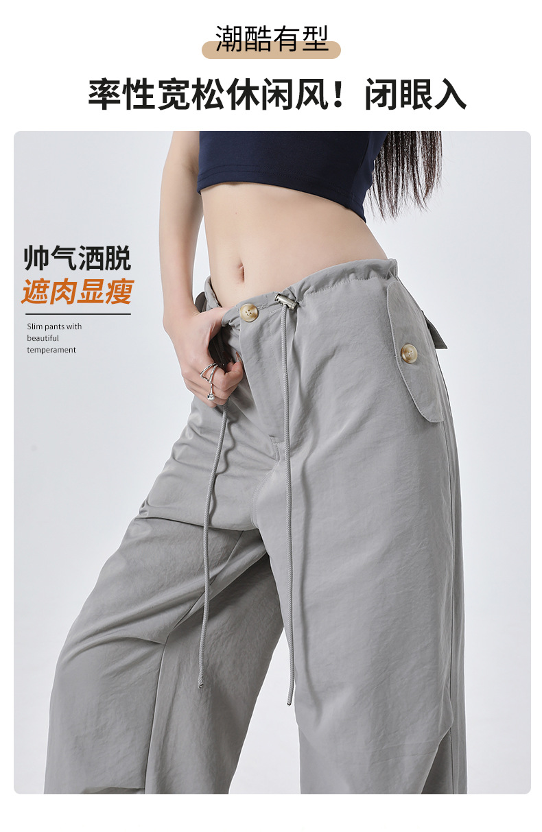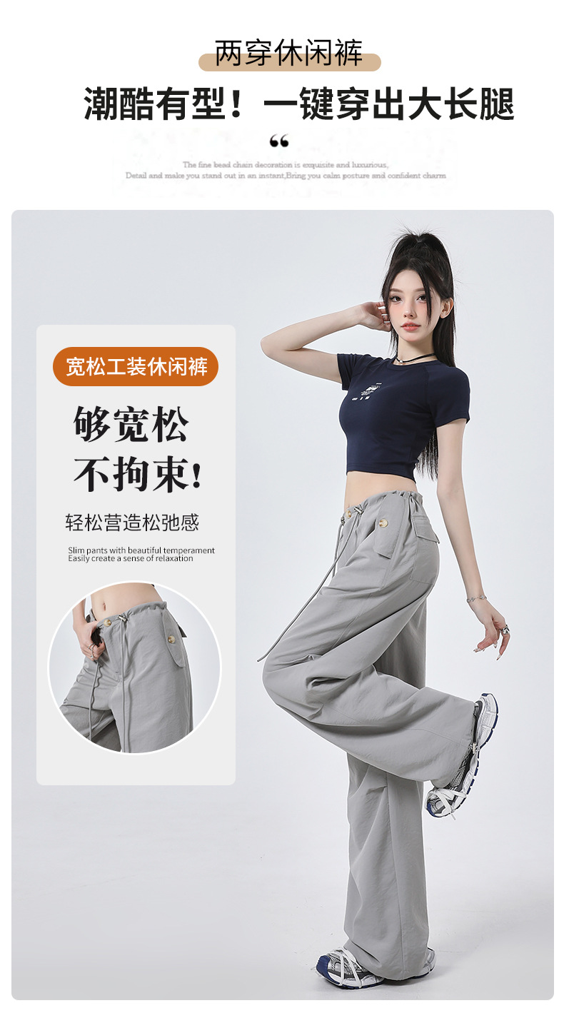 높은 허리 바위 바지 여성 여름 얇은 느슨한 높은 허리 캐주얼 바지 여성 여름 넓은 다리 바지 여성 여름 빠른 건조 바지 여성용 등산 바지