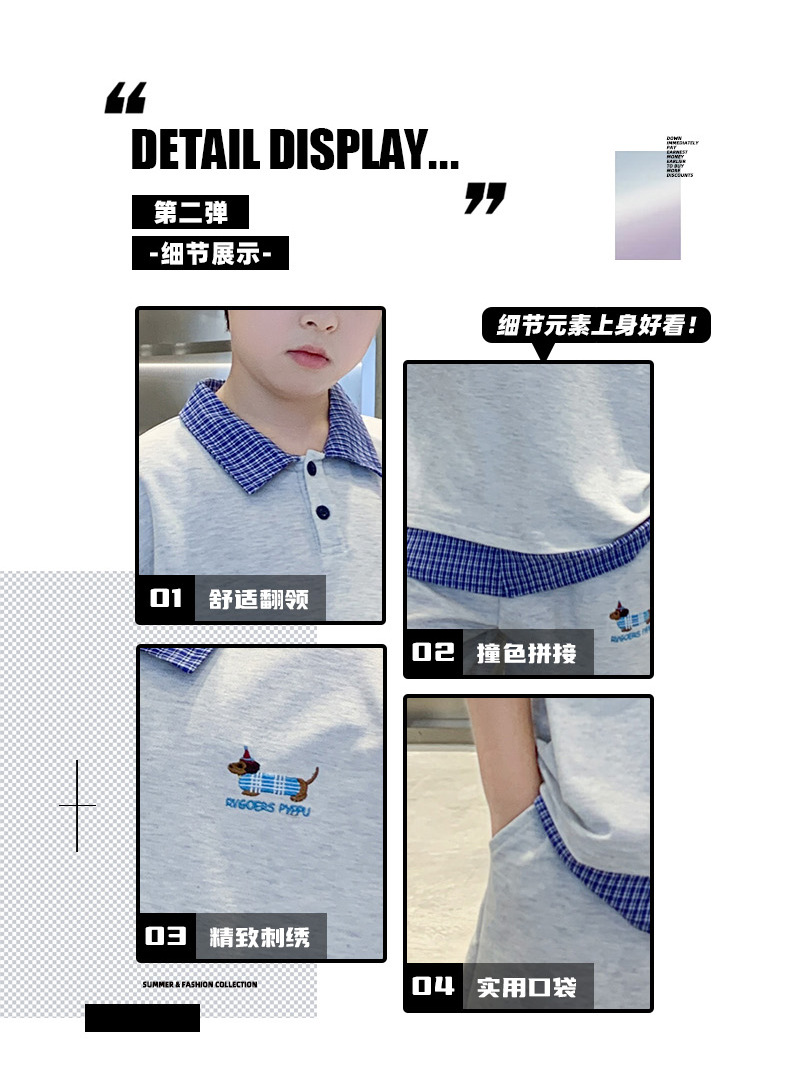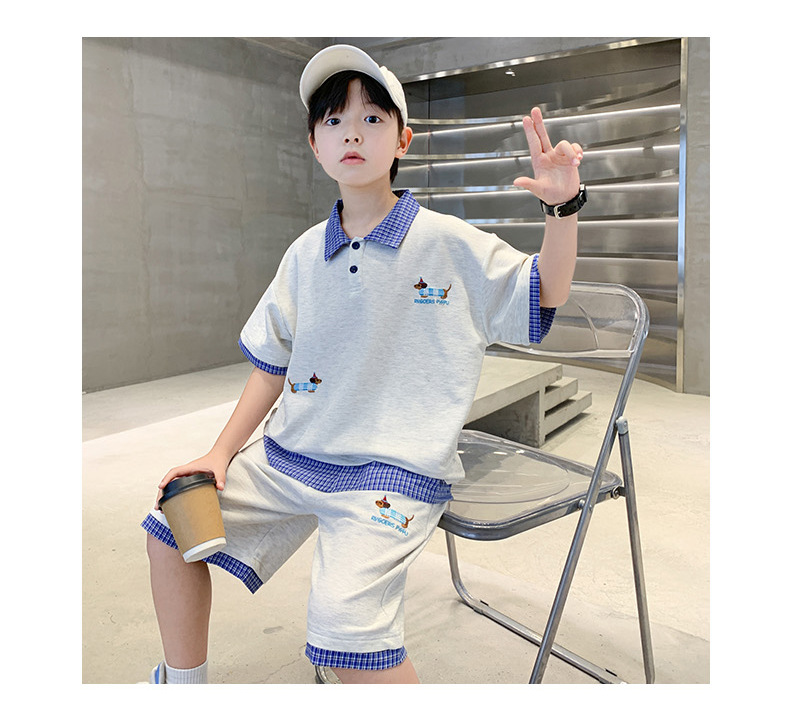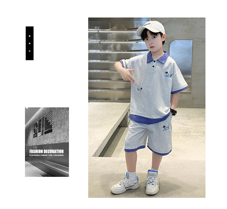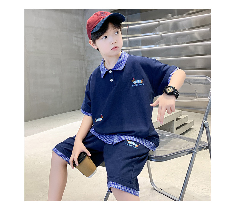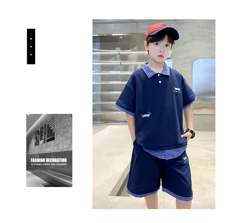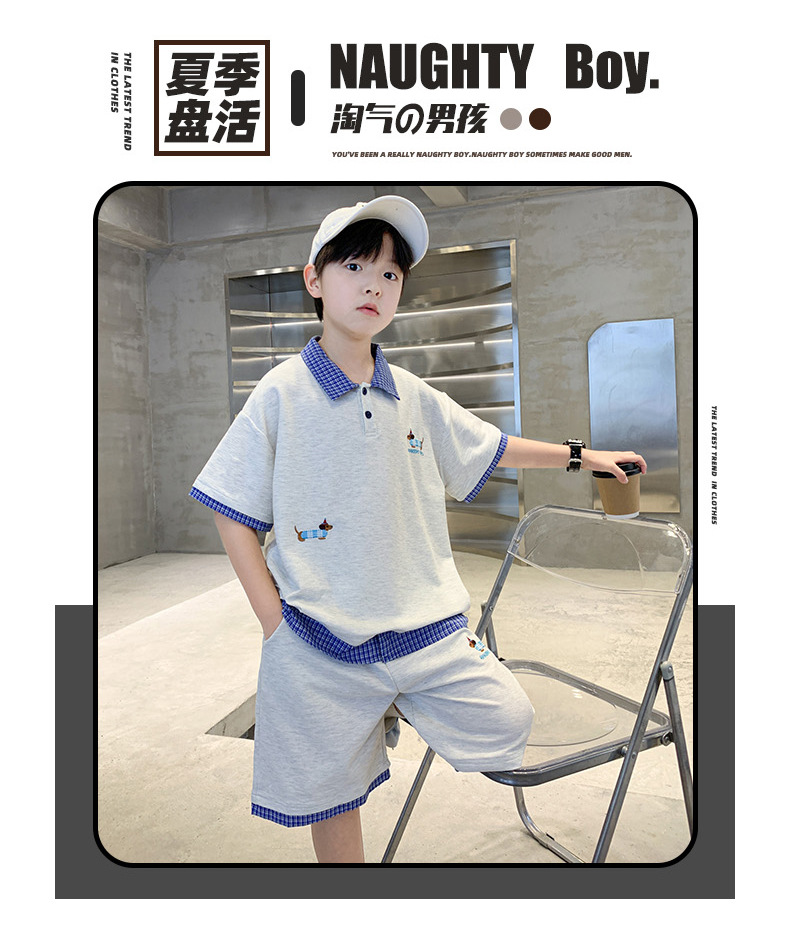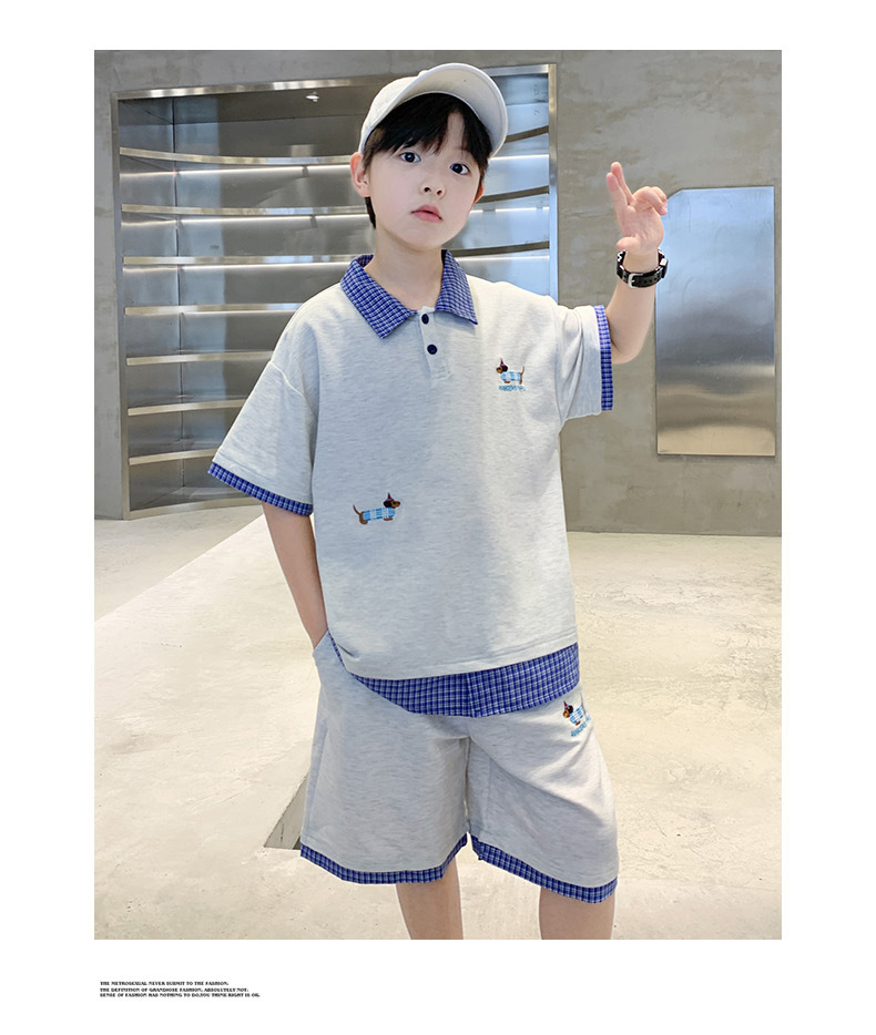 남학생 가짜 투피스 콘트라스트 폴로 셔츠 반팔 세트 2025 년 새 학문 여름 루즈 캐주얼 투피스 세트
