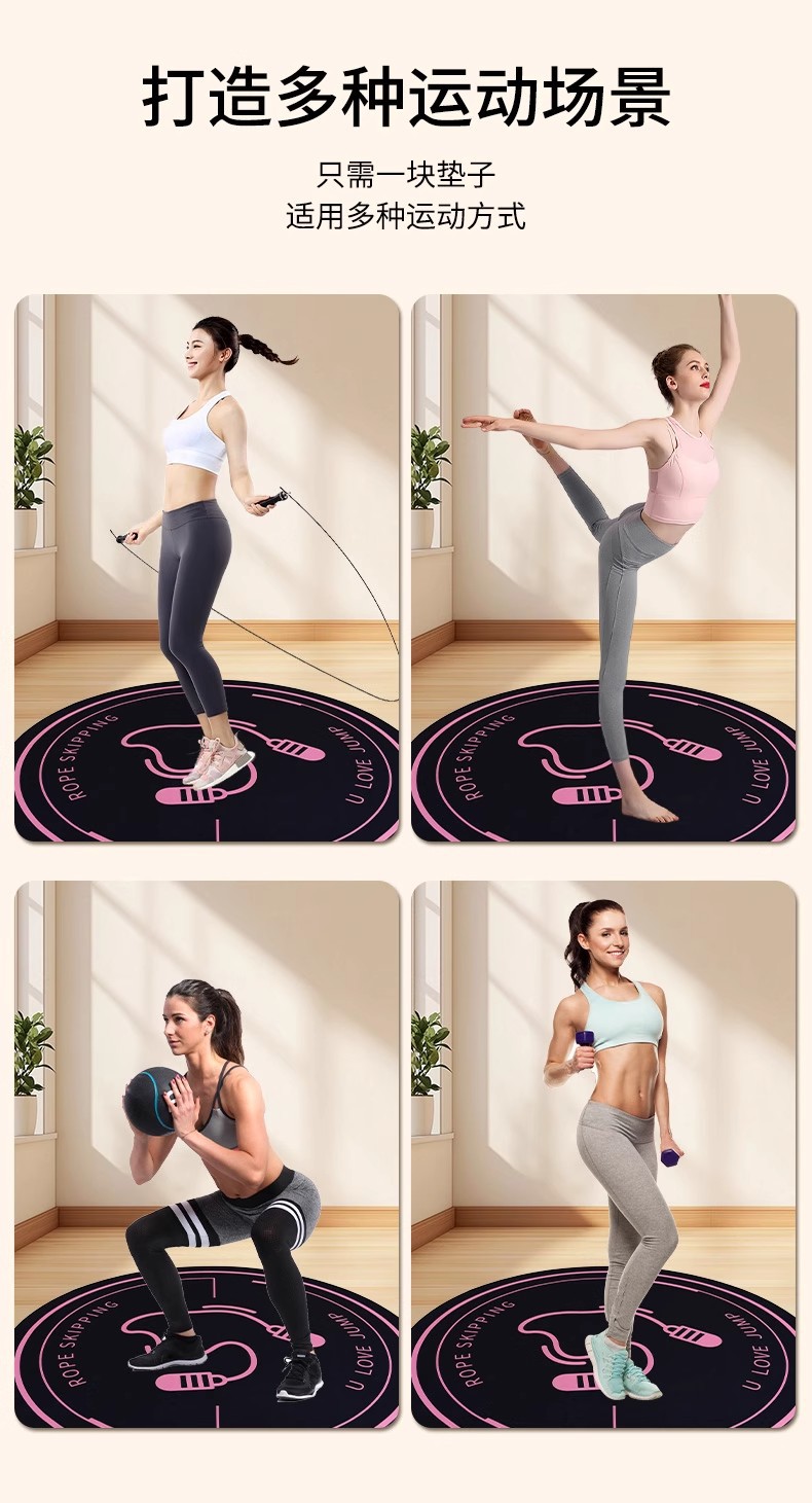 둥근 줄넘기 바닥 매트, 줄넘기 카펫, 실내 피트니스 요가 매트, 두꺼운 미끄럼 방지 충격 흡수 스포츠 줄넘기 매트