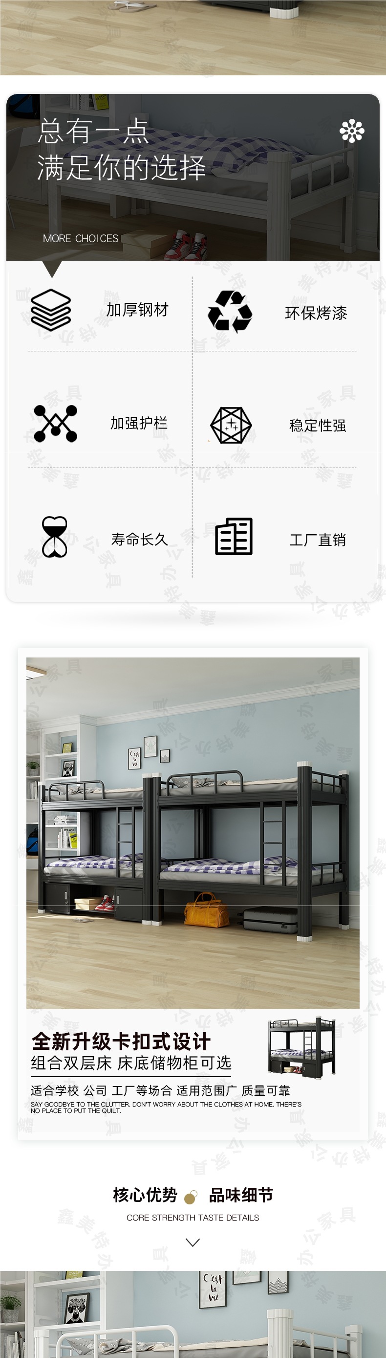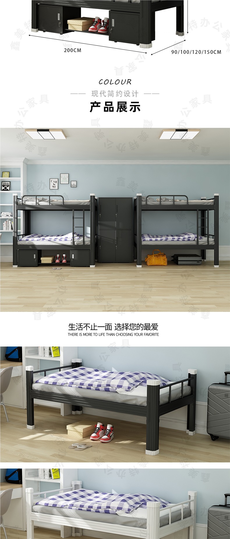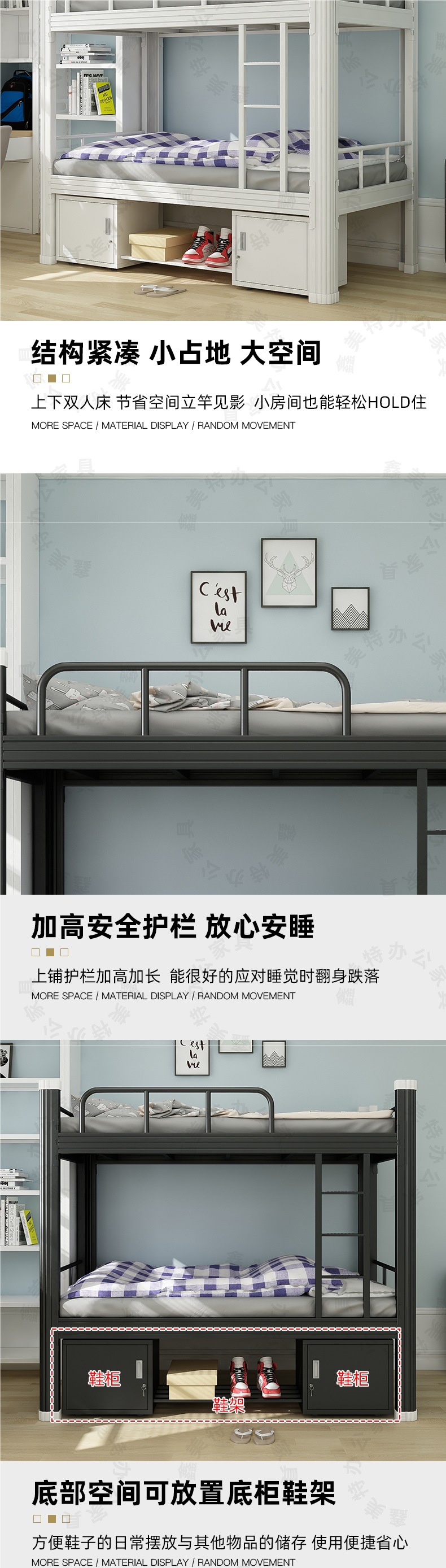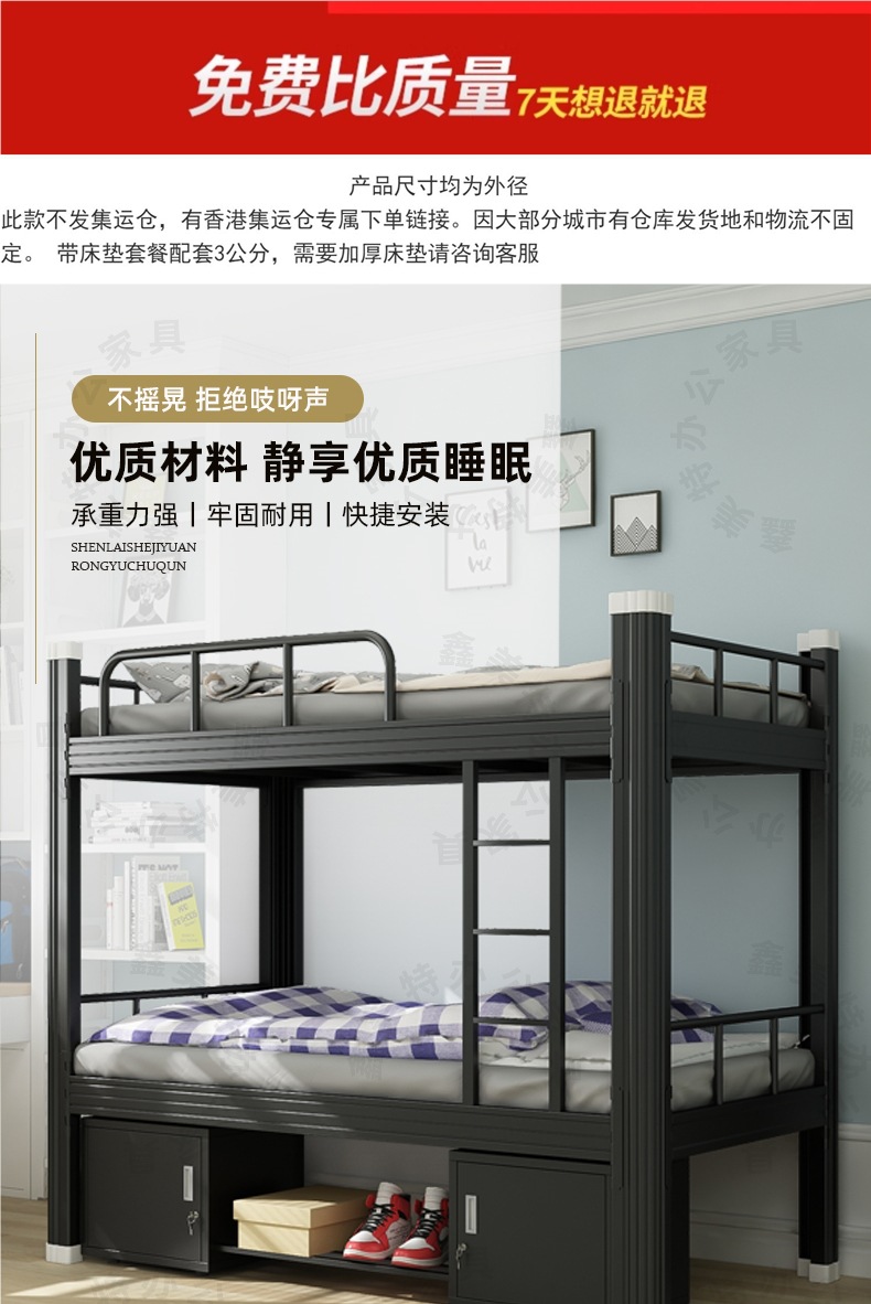 상하 이층 철침대 학생 기숙사 직원 사이트 더블 하이 및 저 선반 더블 침실 아파트 싱글 아이언 침대스토어 가기