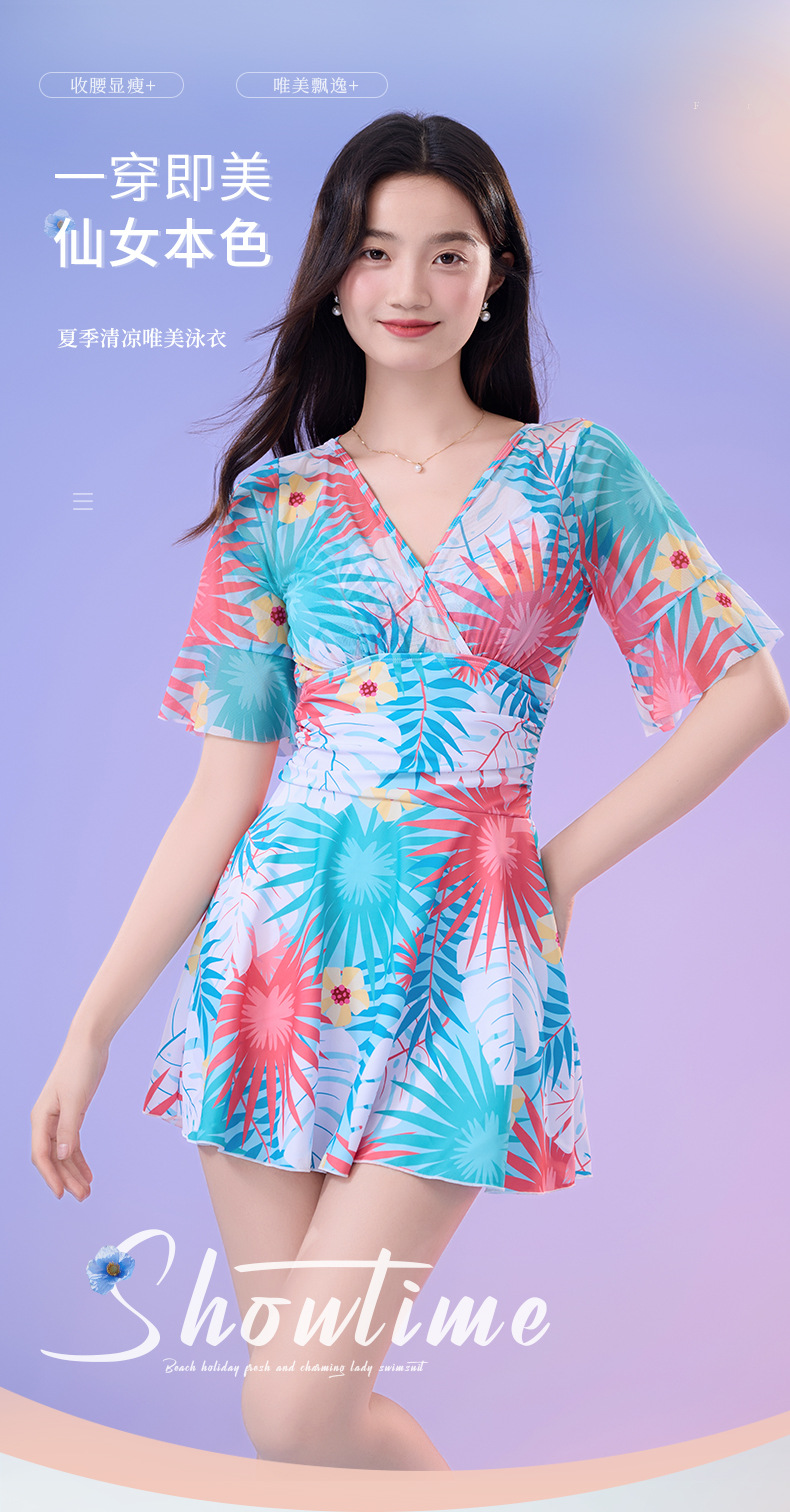 새로운 수영복 여성 일본식 원피스 스커트 플러스 사이즈 mm 수영복 슬리밍 보수적 인 빅 가슴 수집 온천 수영복