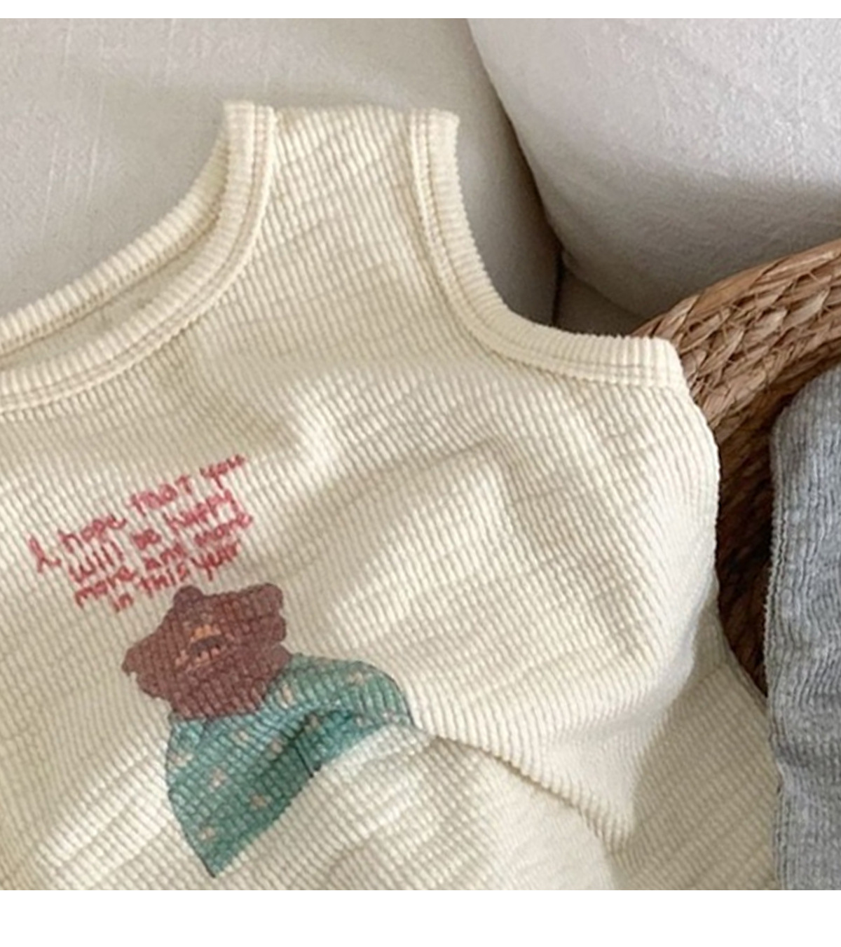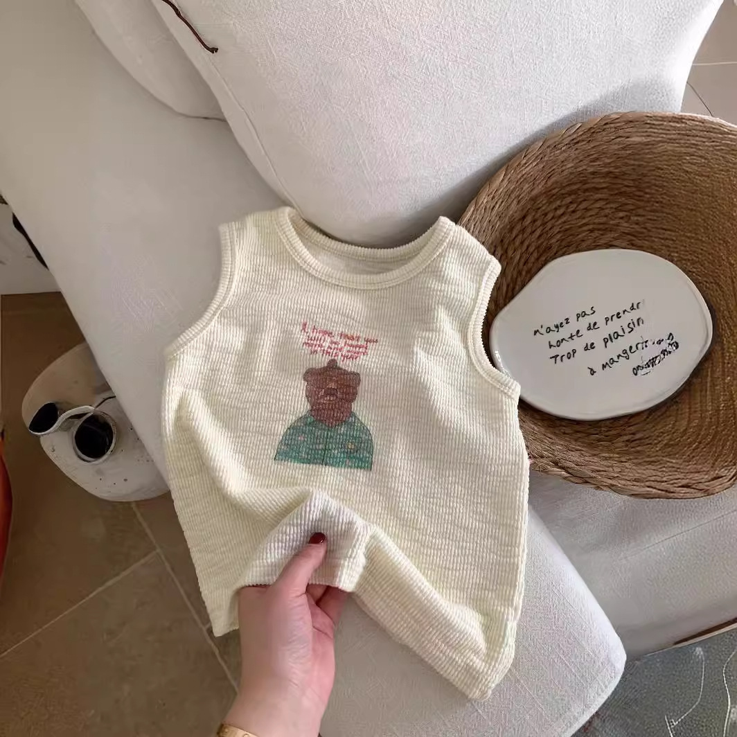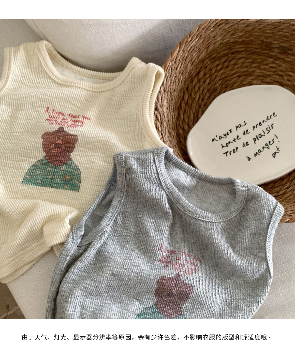 한국 여름 새로운 스타일 2025 만화 영어 곰 편안한 조끼 티셔츠 다목적 캐주얼 부드러운 피부 친화적 인 민소매 티셔츠