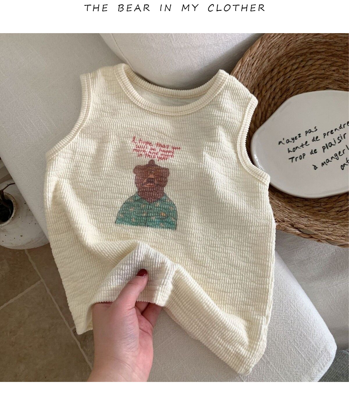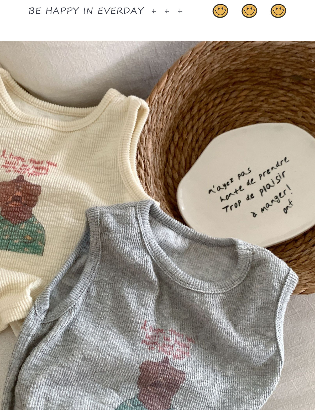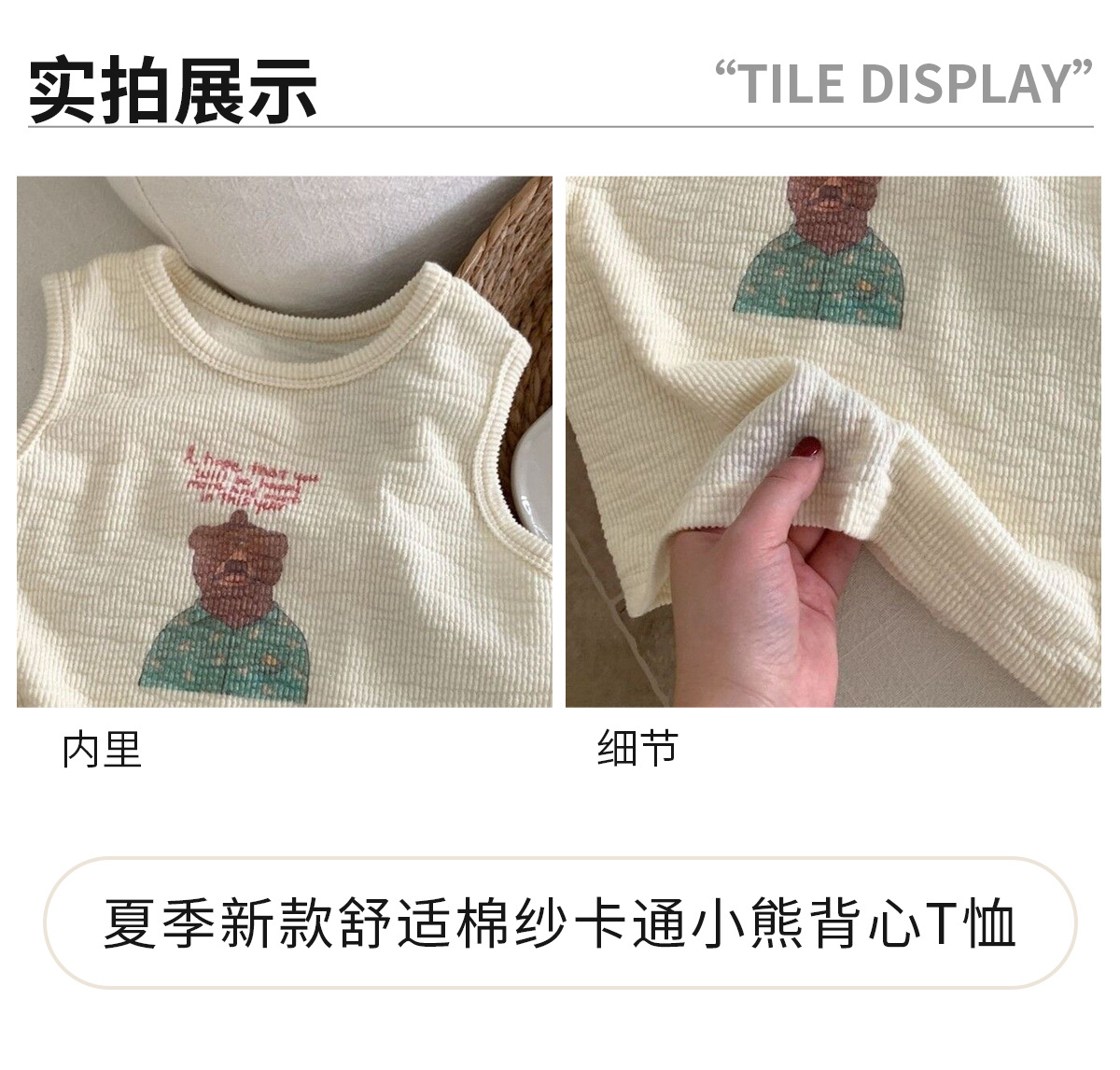 한국 여름 새로운 스타일 2025 만화 영어 곰 편안한 조끼 티셔츠 다목적 캐주얼 부드러운 피부 친화적 인 민소매 티셔츠