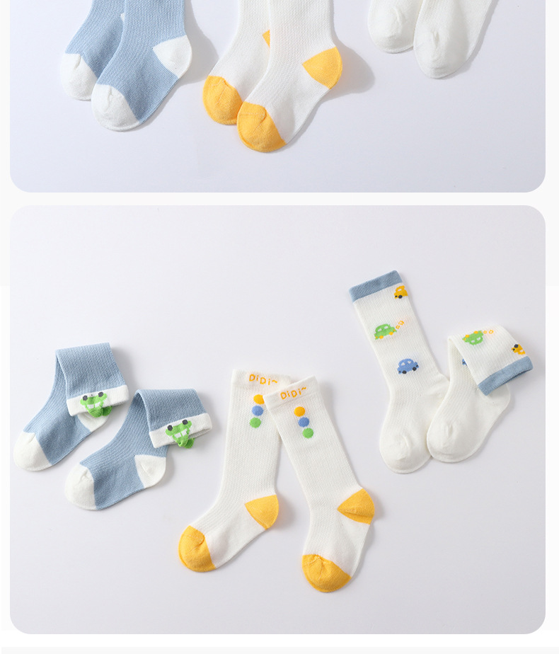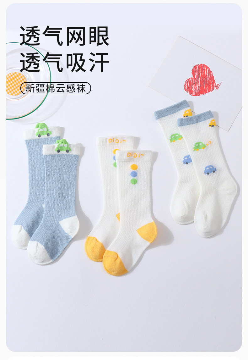 아기 양말 여름 얇은 빗질면 중간 튜브 양말 아기 0-3 봄과 여름 메쉬 신생아 소년과 소녀 스타킹