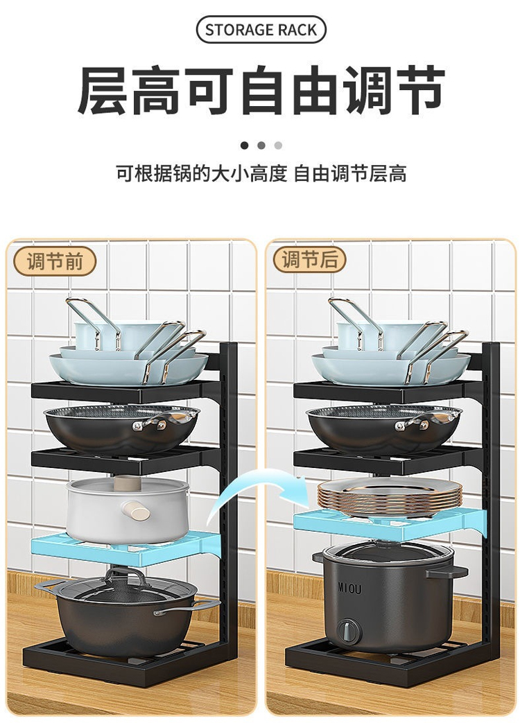 부엌 싱크대 아래 캐비닛 다층 냄비 랙 물 버킷 스테인레스 스틸 스토리지 랙 조정 테이블 상단스토어 가기