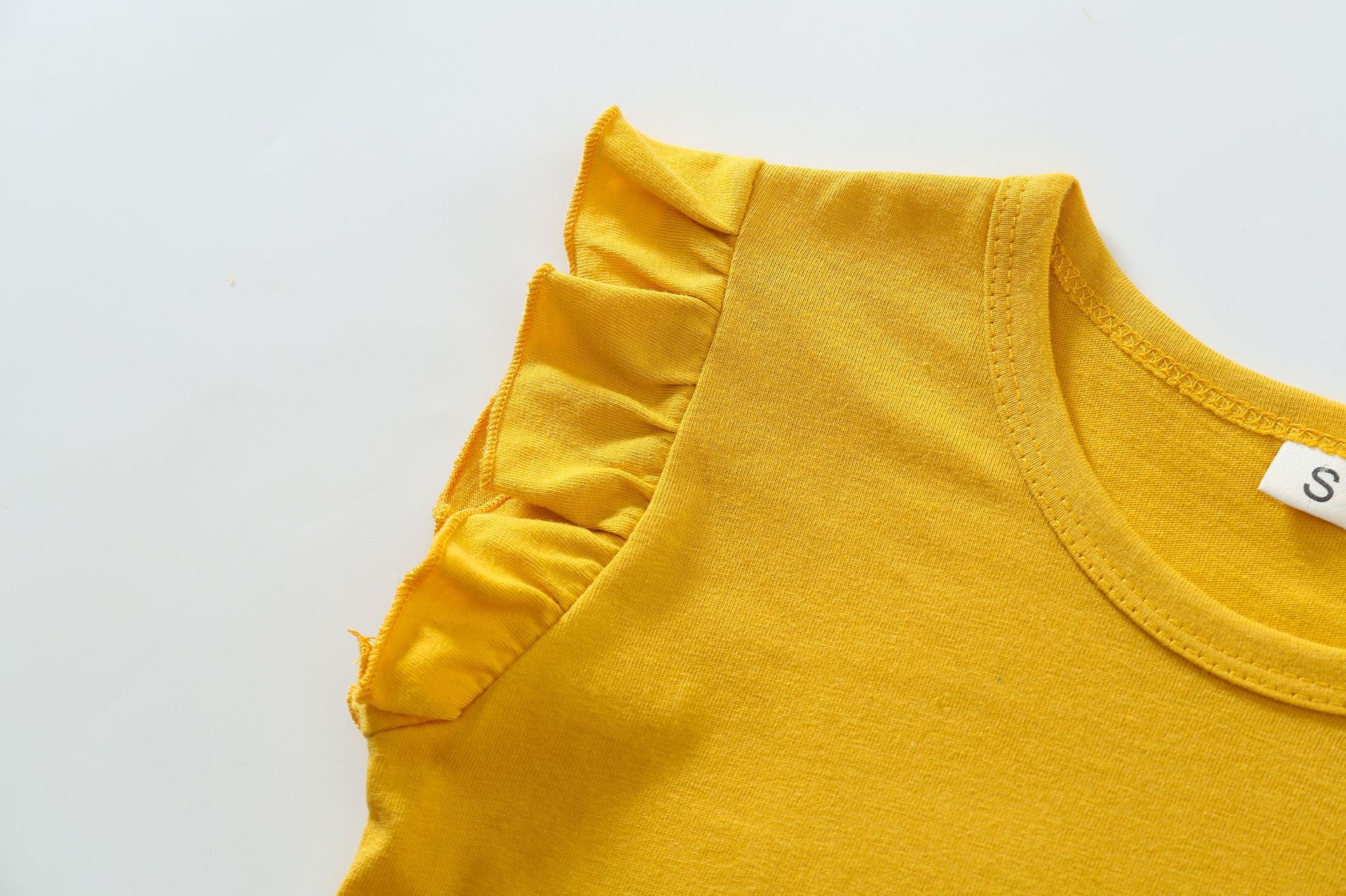 국경 간 아기 소녀 여름 옷, 귀여운 만화 프린트 작은 날개 소매 옷, 세련된 꽃 반바지, 소녀 투피스 도매