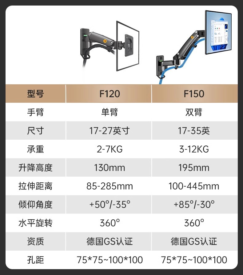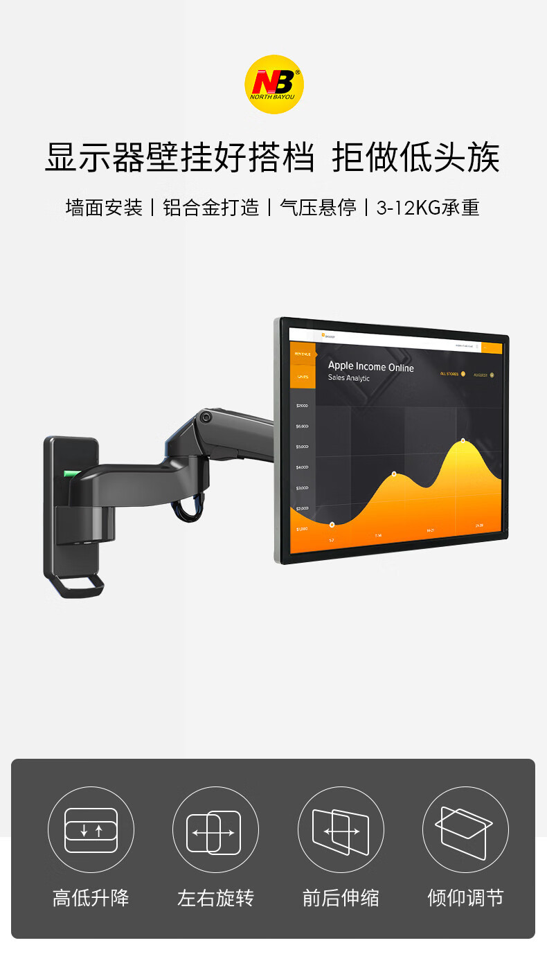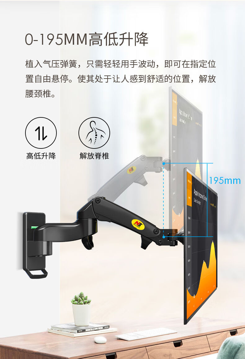 새로운 NB F150 컴퓨터 모니터 스탠드 위아래로 호버링 벽걸이 회전 리프팅 스크린 벽걸이 텔레스코픽스토어 가기