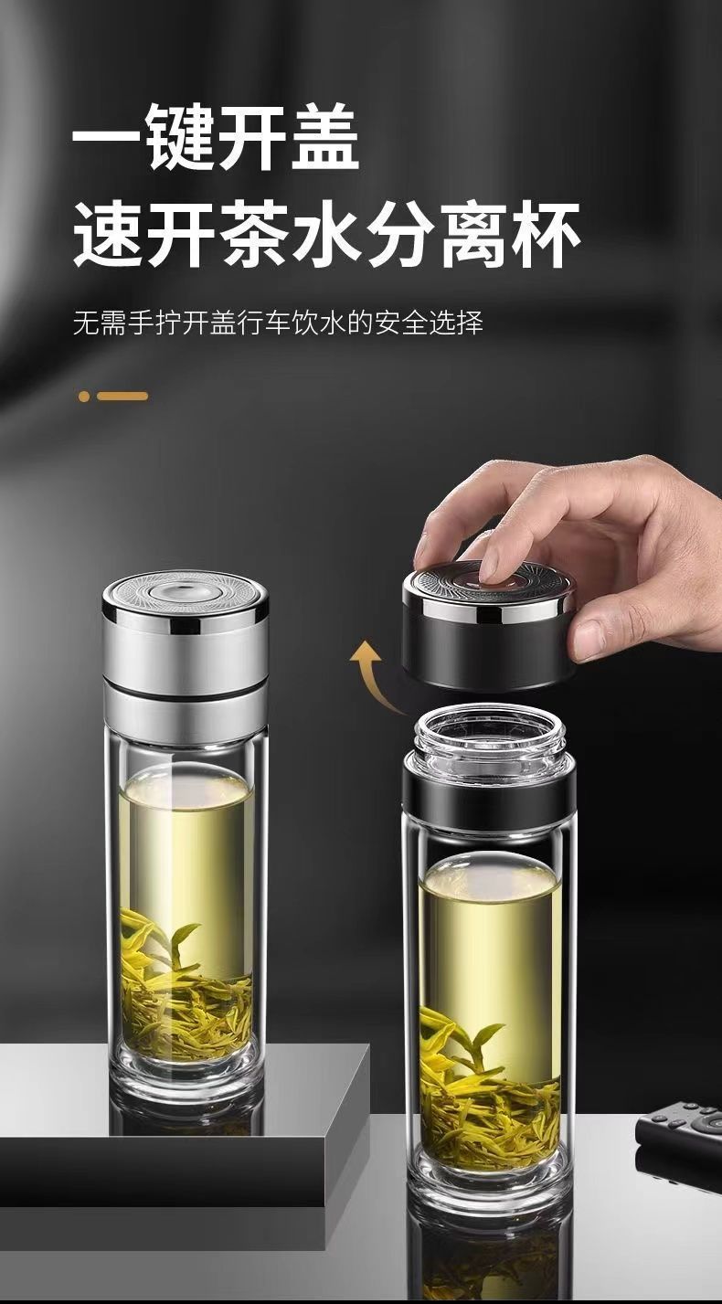 ∝남성용 신형 차수분리컵, 차량용 속개컵, 원클릭 개폐, 이중유리컵, 휴대용 푸쉬형 물컵