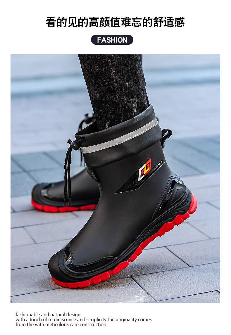 새로운 장화 남성용 방수 미끄럼 방지 작동 고무 신발 내마모성 소프트 하단 낚시 라이더 기모 레인 부츠 남성용 워터 슈즈