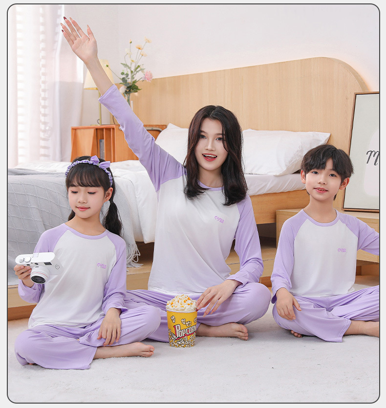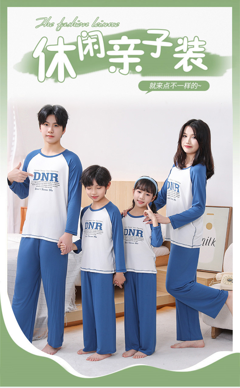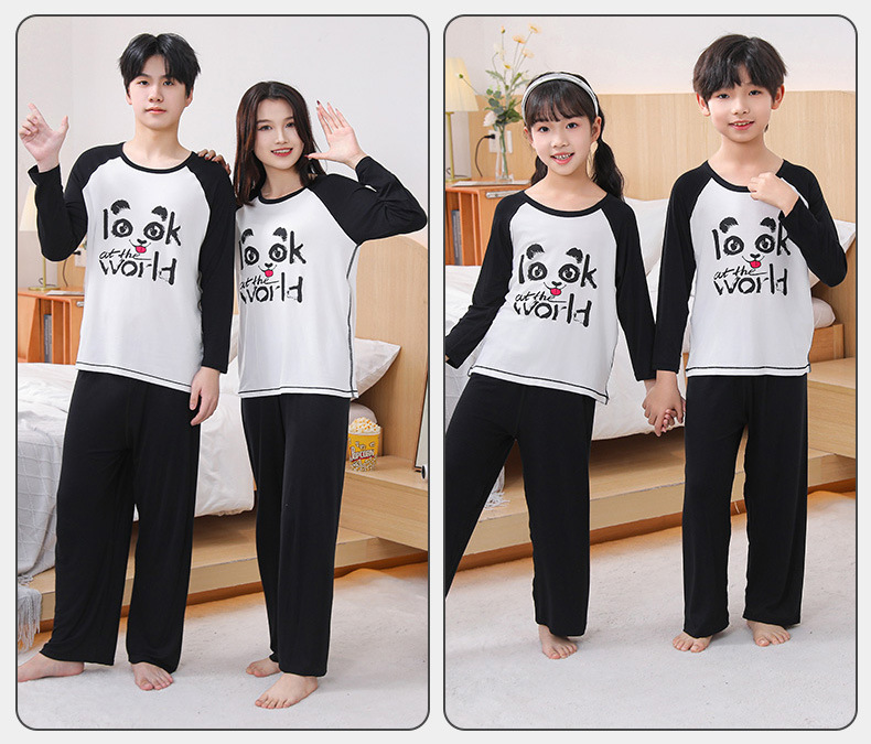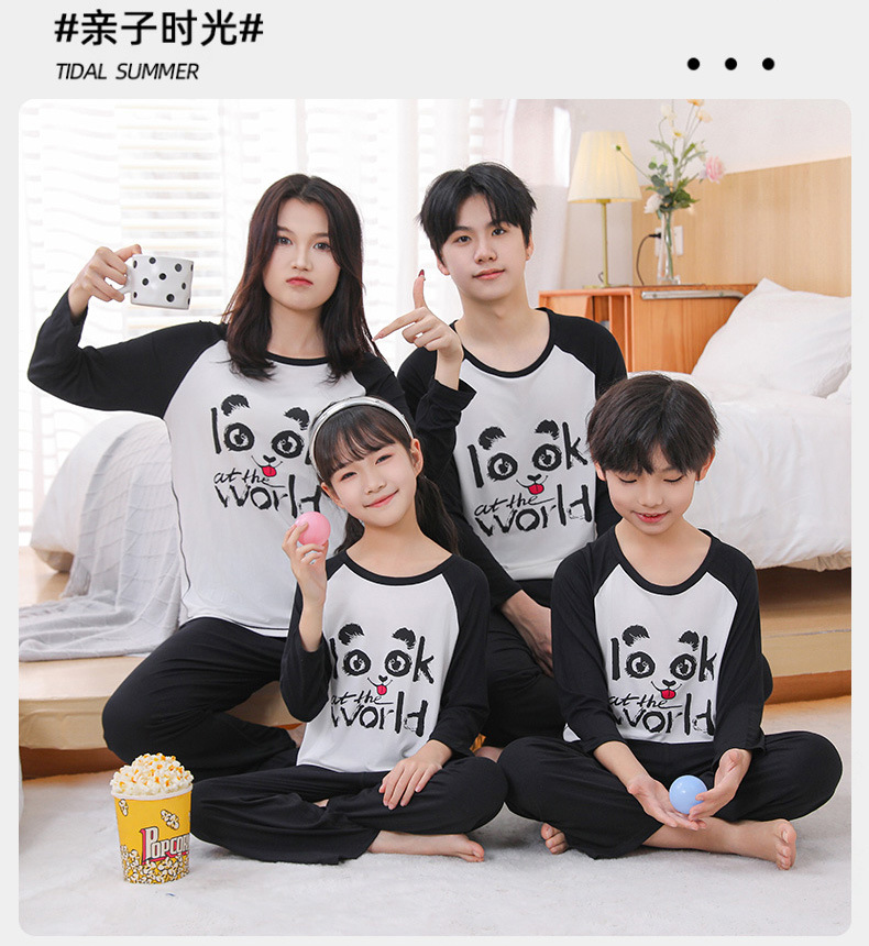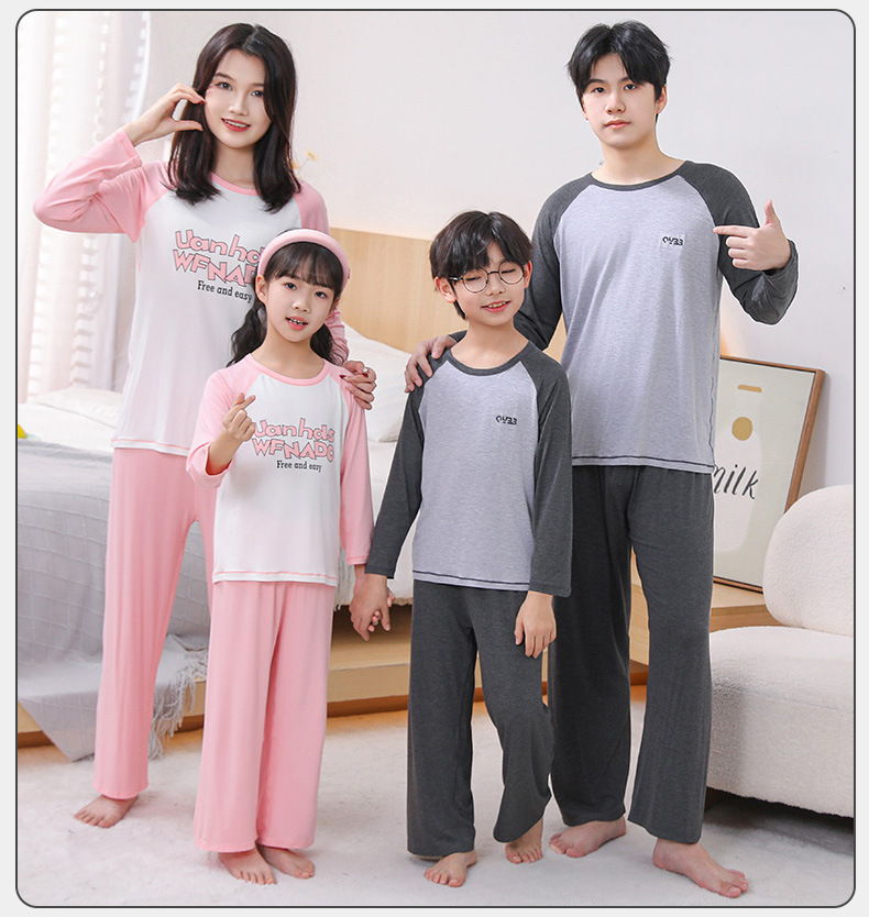 2025년 대형 소년 소녀용 부모-자식 라운드 넥 홈웨어 세트, 프린트 스플라이싱 긴팔 바지 잠옷 투피스 세트스토어 가기