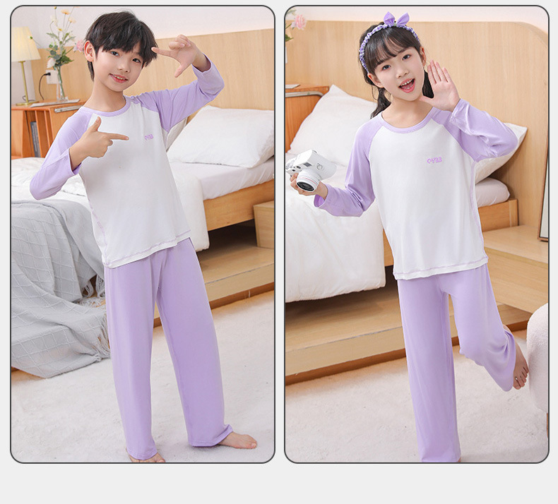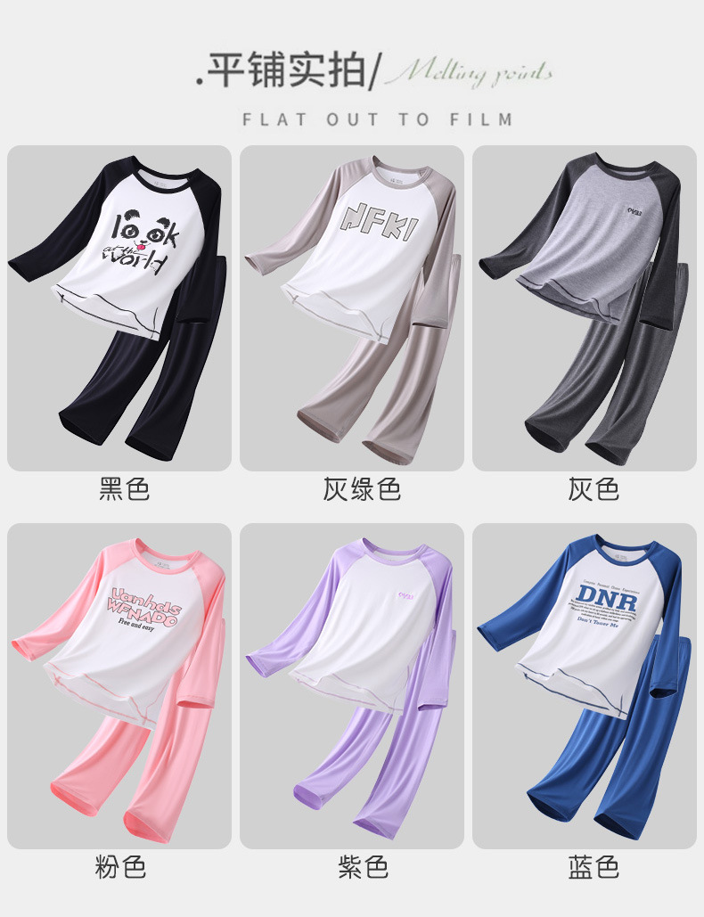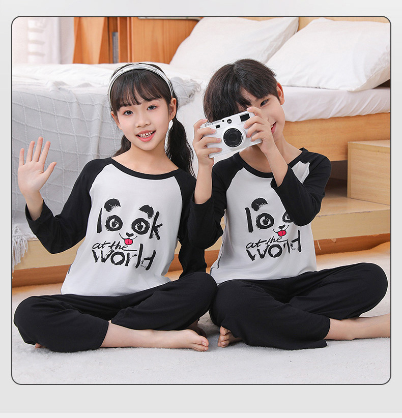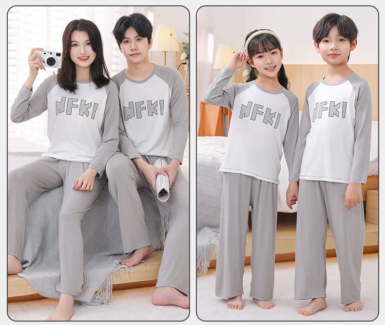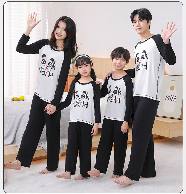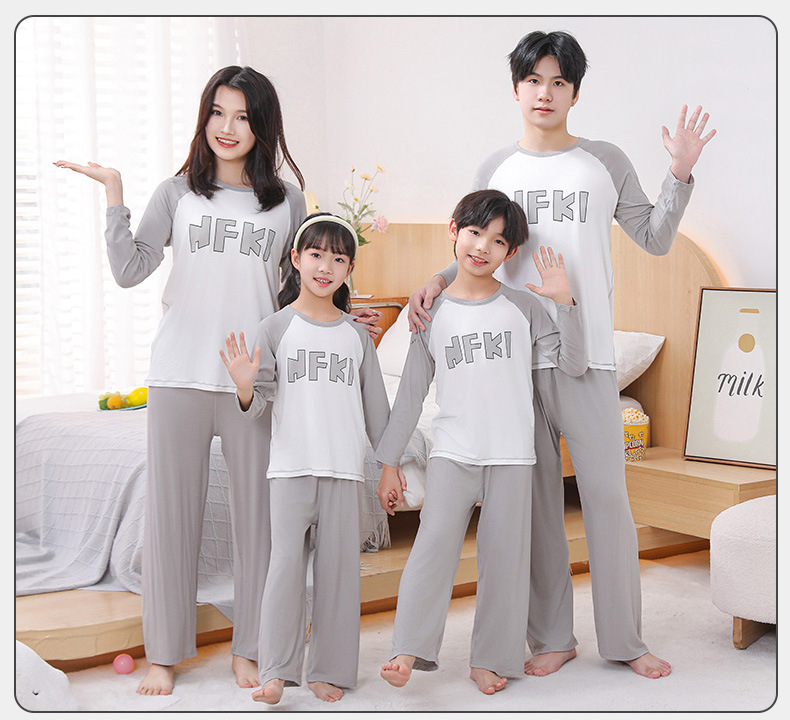 2025년 대형 소년 소녀용 부모-자식 라운드 넥 홈웨어 세트, 프린트 스플라이싱 긴팔 바지 잠옷 투피스 세트스토어 가기