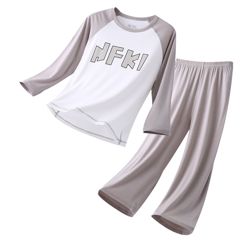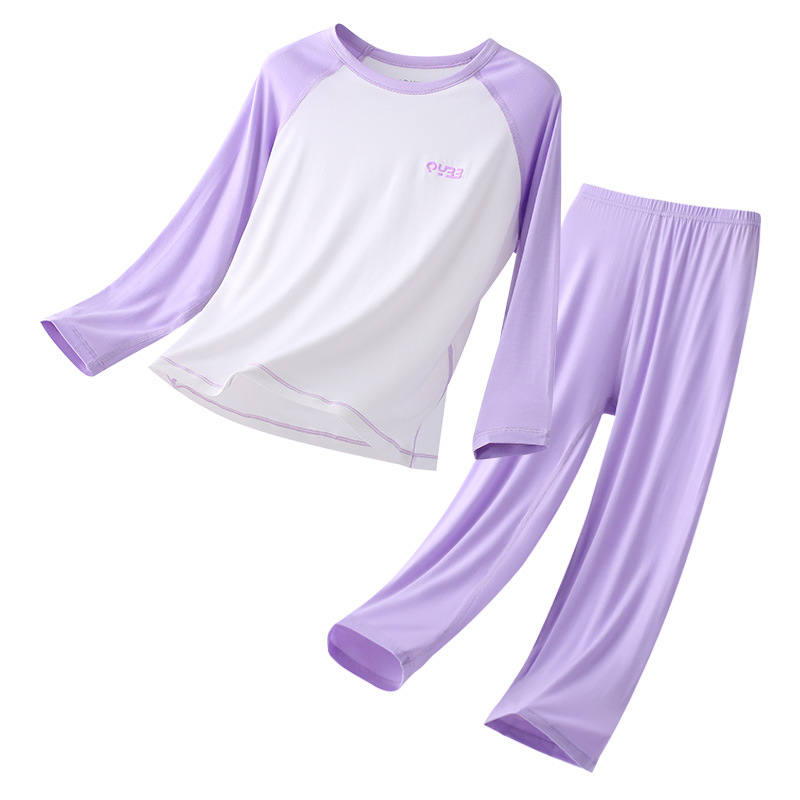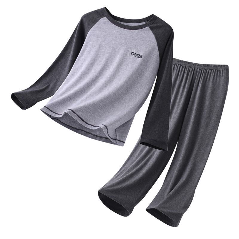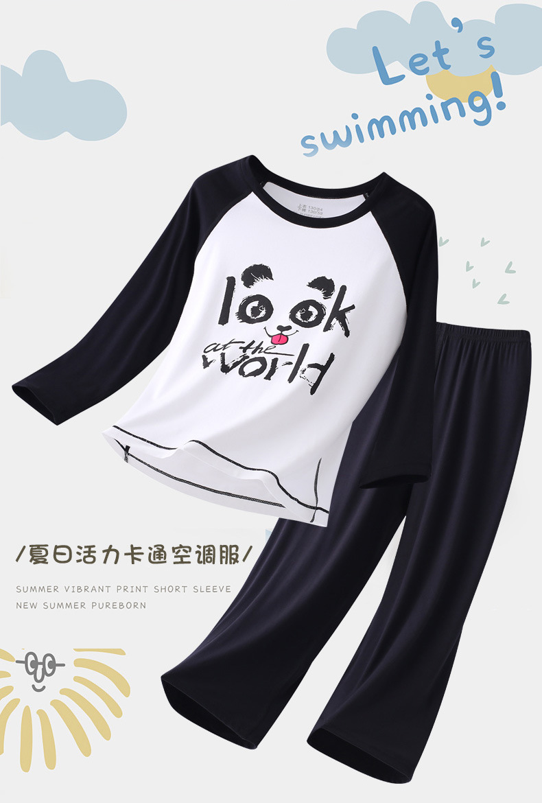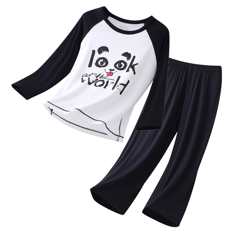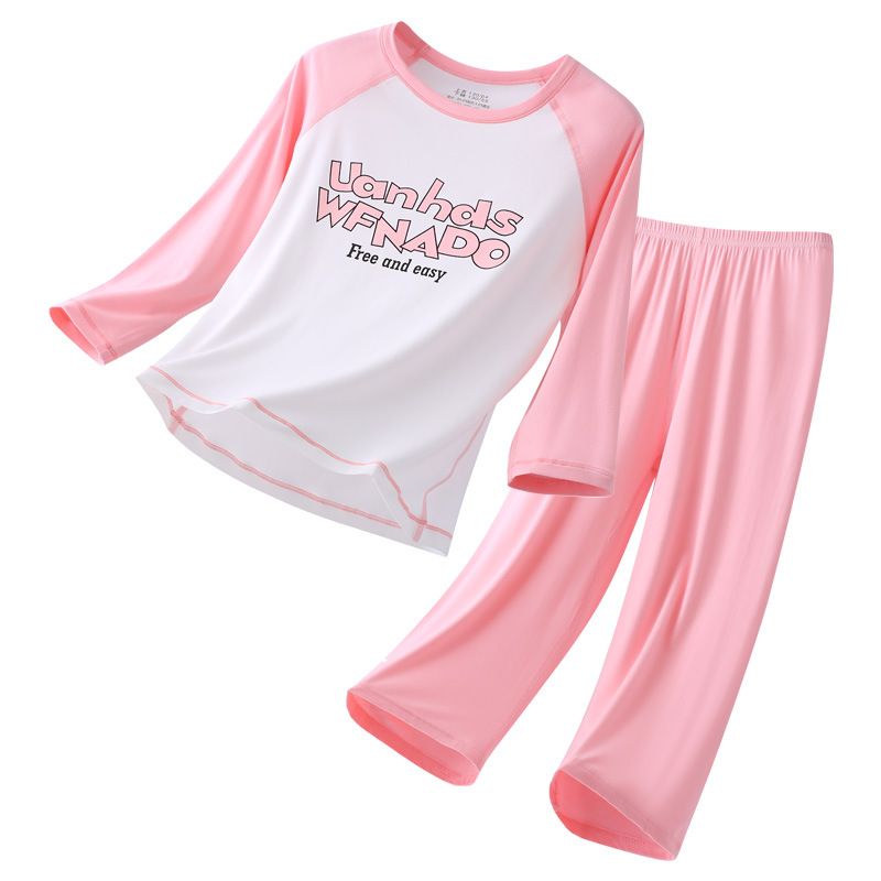 2025년 대형 소년 소녀용 부모-자식 라운드 넥 홈웨어 세트, 프린트 스플라이싱 긴팔 바지 잠옷 투피스 세트