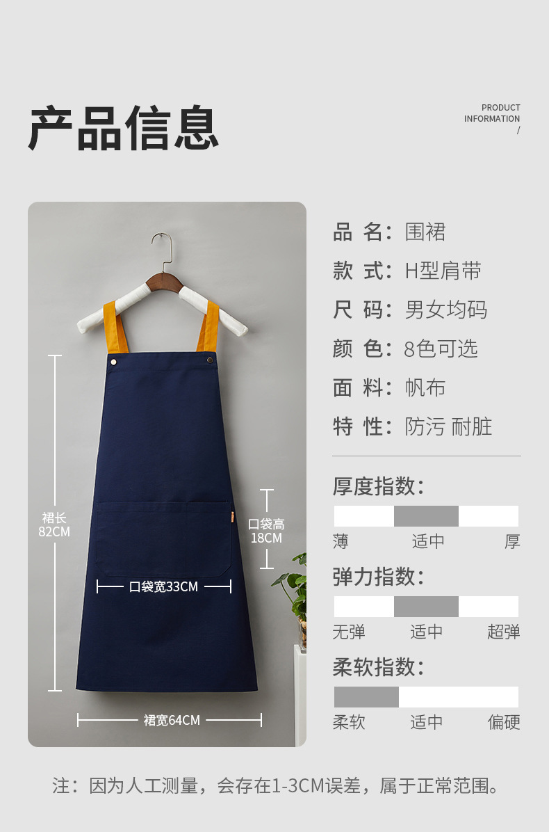 캔버스 앞치마 맞춤형 로고 인쇄 과일 가게 커피 꽃 가게 웨이터 작업복 케이터링 작업복
