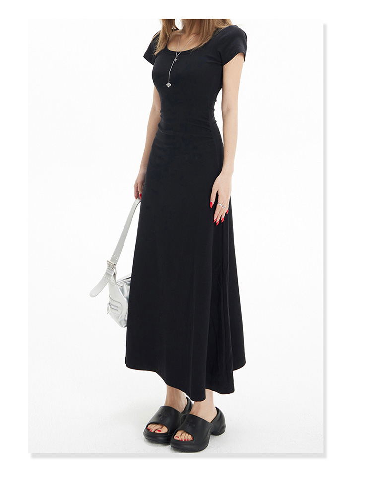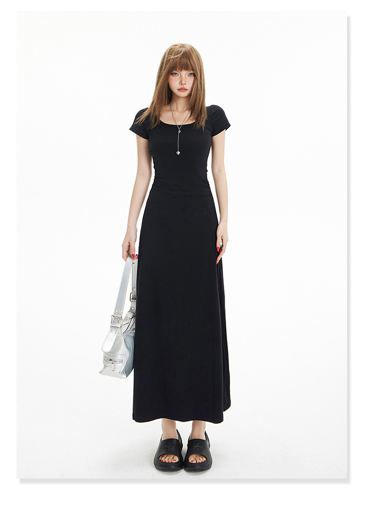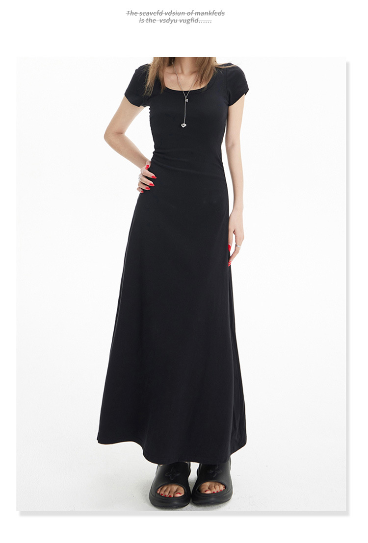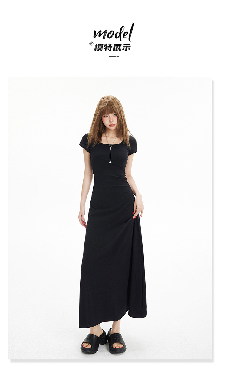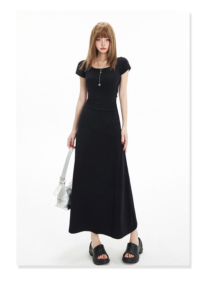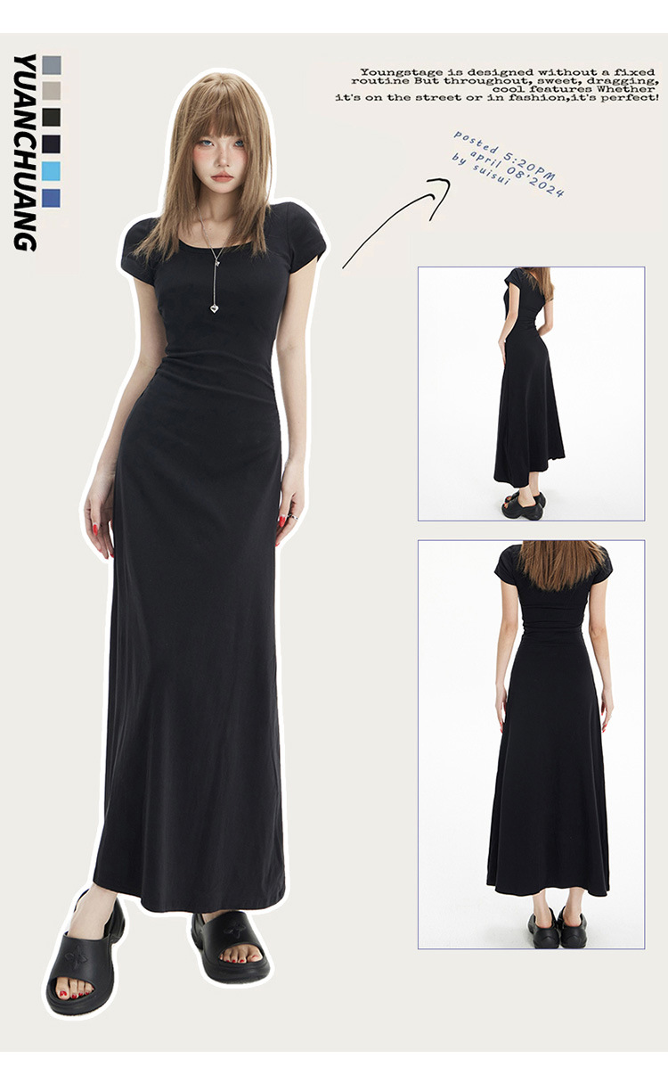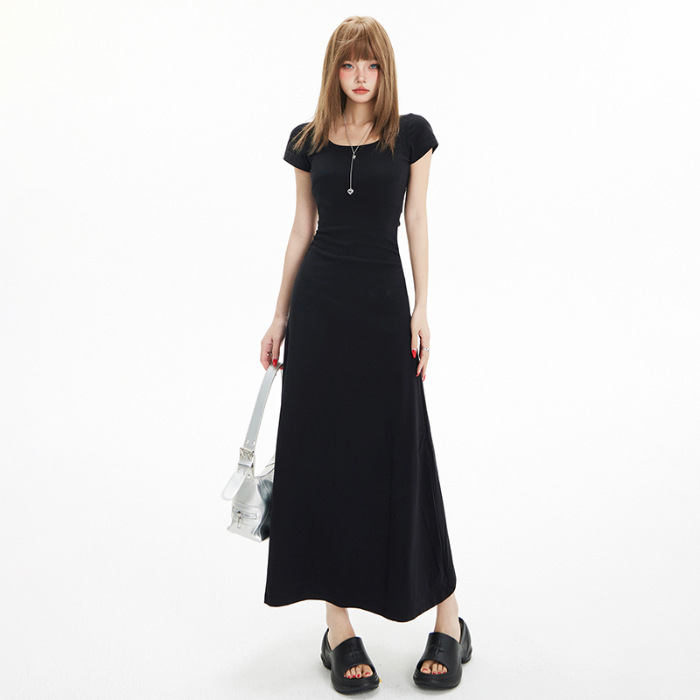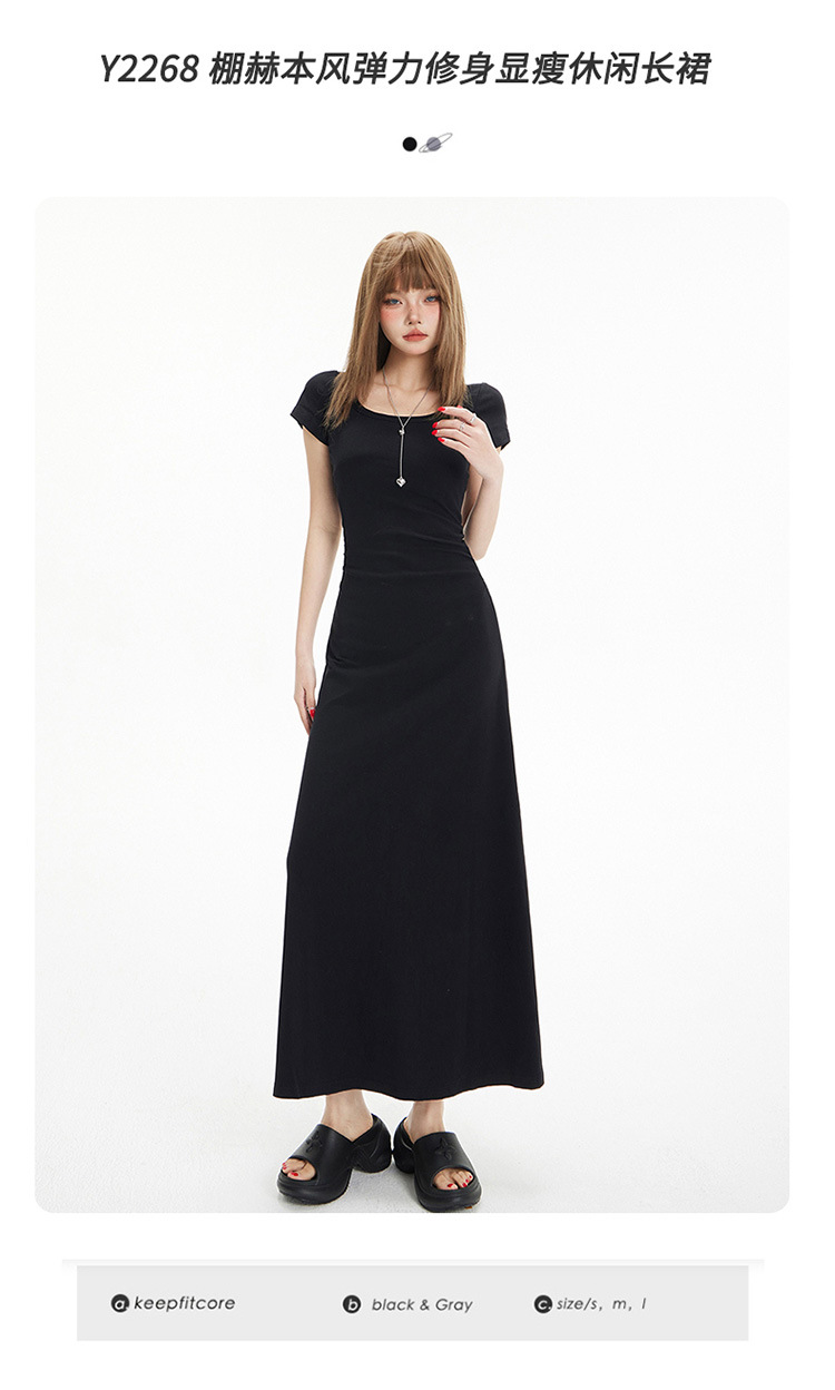 YC & 레트로 허리 짧은 소매 원피스 조커 스트레치 슬림 슬림 슬림 봄 및 여름 긴 원피스 A-라인 원피스 중국 스타일