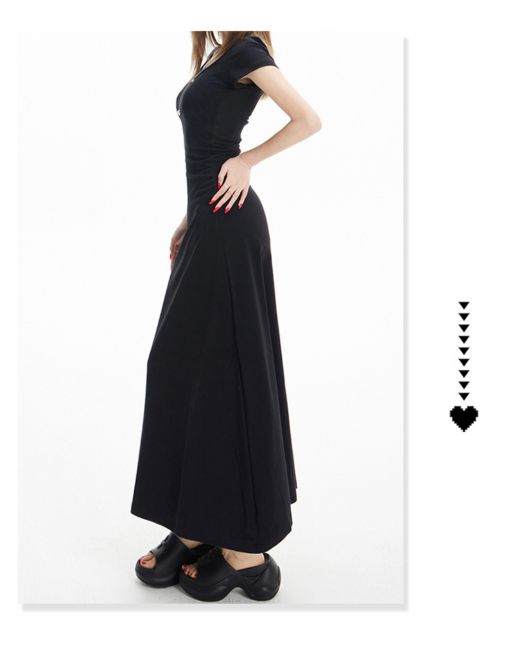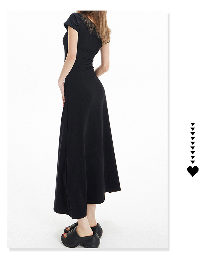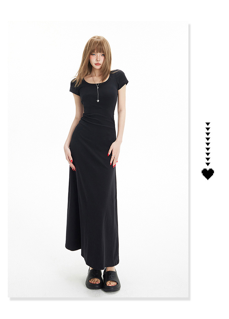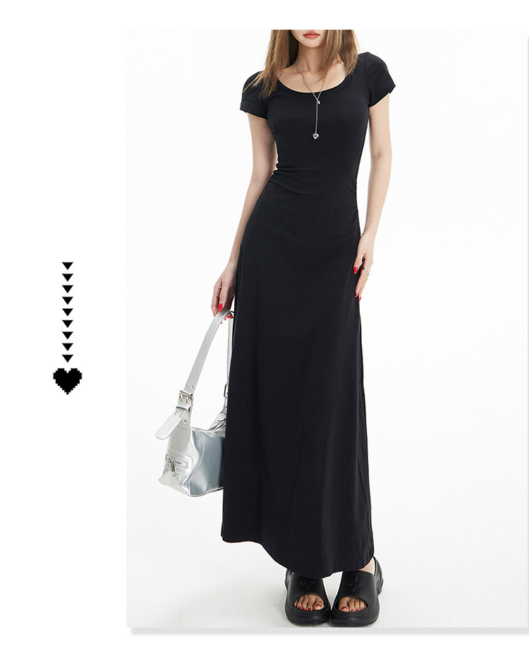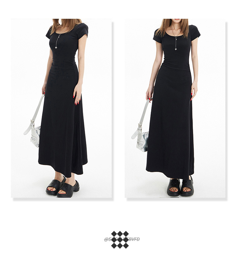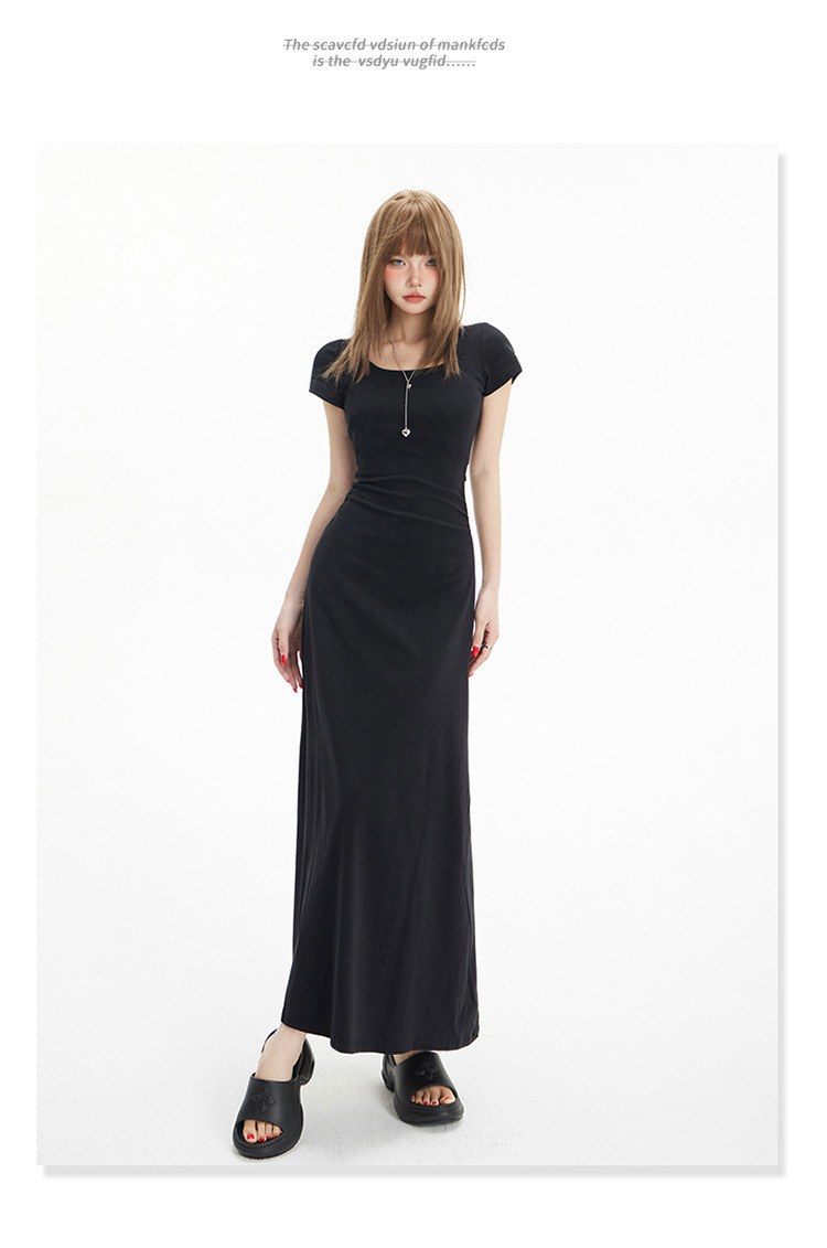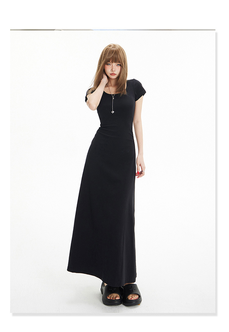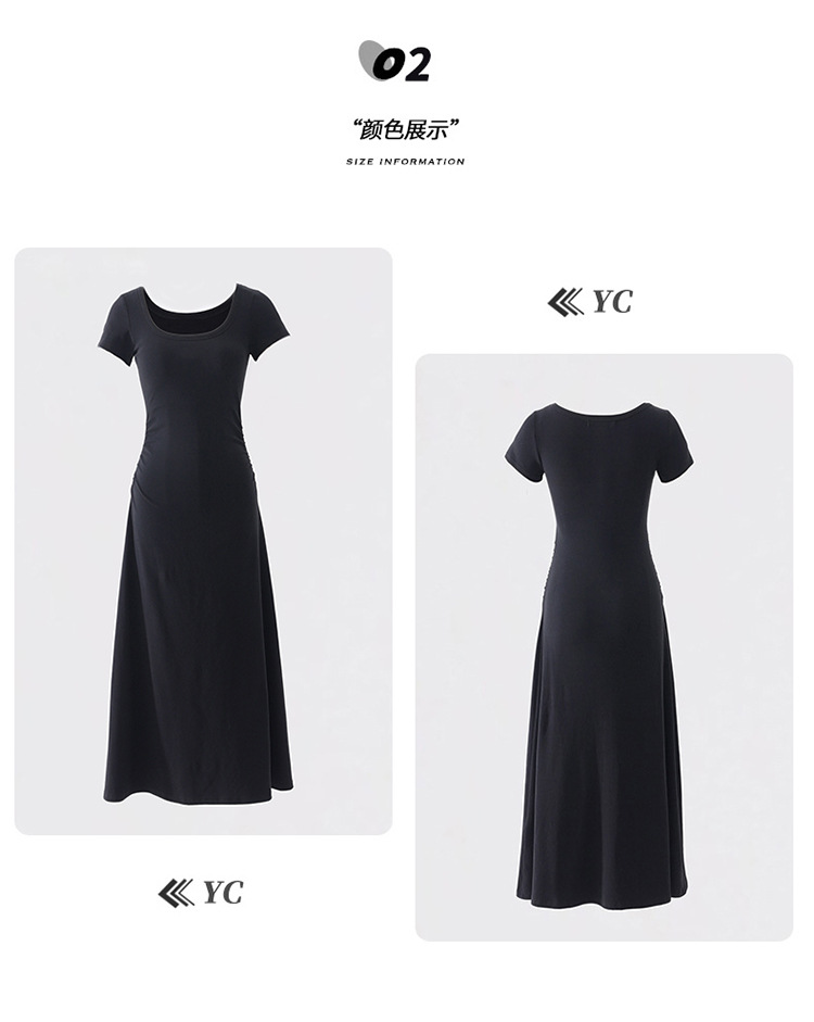 YC & 레트로 허리 짧은 소매 원피스 조커 스트레치 슬림 슬림 슬림 봄 및 여름 긴 원피스 A-라인 원피스 중국 스타일