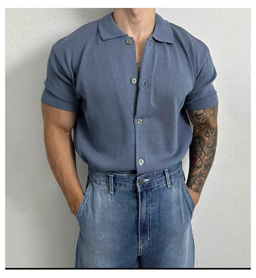 남성용 한국식 가볍고 성숙한 스타일의 반팔 폴로 셔츠 22024 여름 신상 하이엔드 캐주얼 다재다능한 루즈 니트 오픈