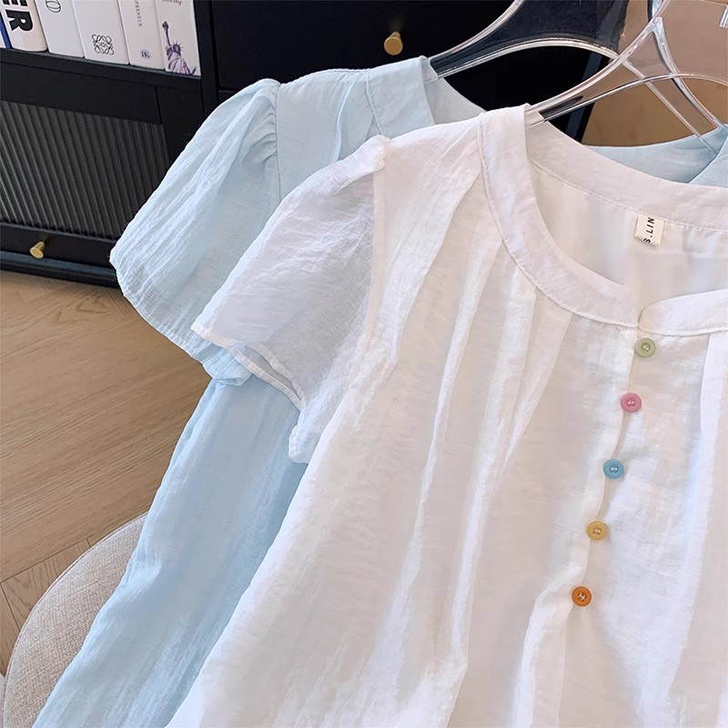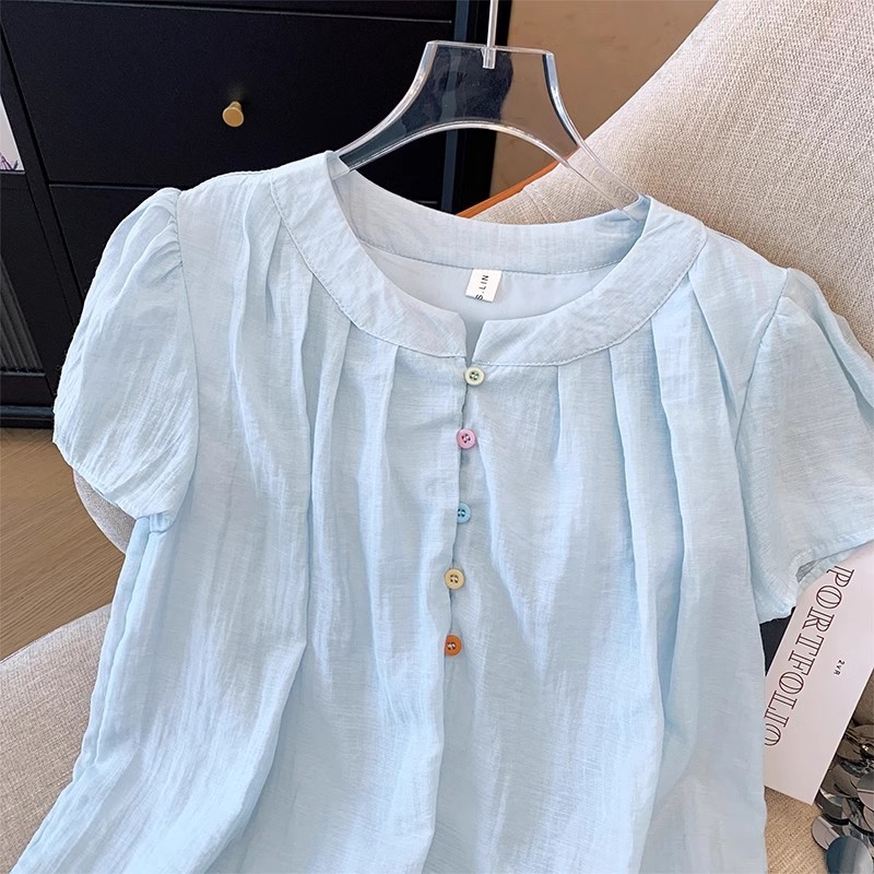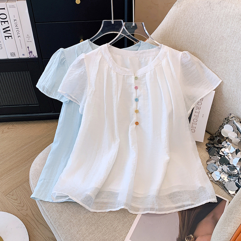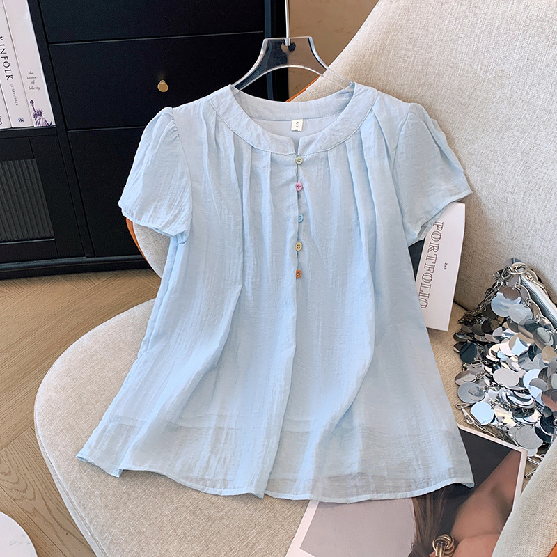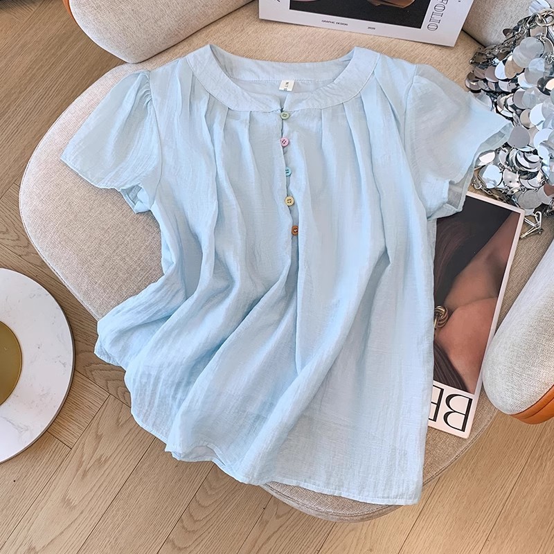 프랑스 여름 새로운 느슨한 달콤한 신선한 둥근 목 탑 느슨한 슬리밍 우아한 짧은 소매 셔츠 인형 셔츠스토어 가기