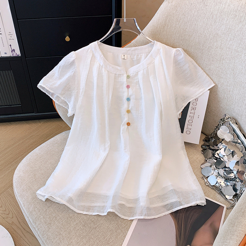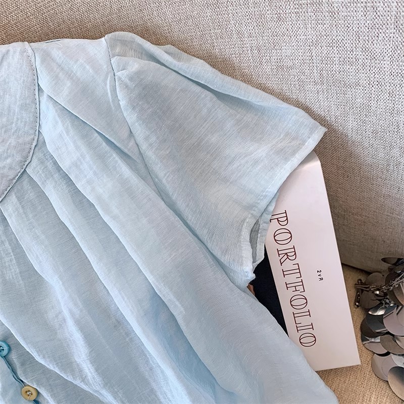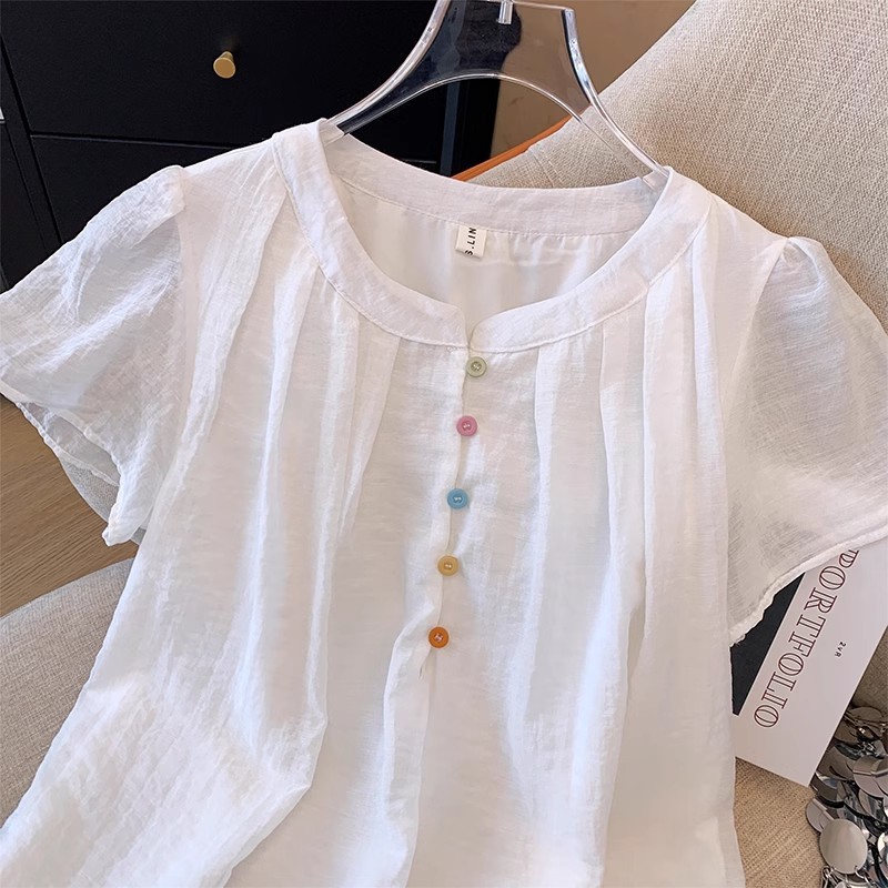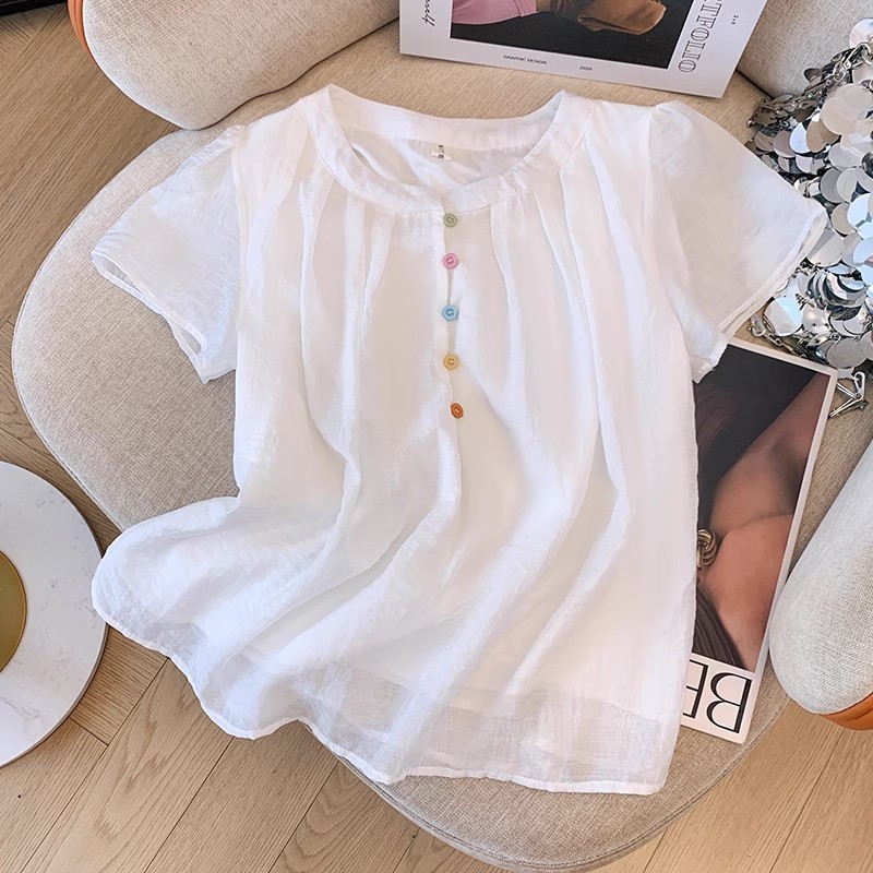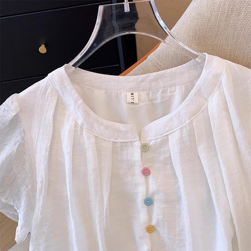 프랑스 여름 새로운 느슨한 달콤한 신선한 둥근 목 탑 느슨한 슬리밍 우아한 짧은 소매 셔츠 인형 셔츠스토어 가기