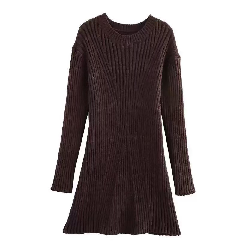 여성용 크로스보더 힙을 감싸는 타이트 니트 원피스, 새로운 하프 터틀넥 기본 단색 스타일의 짧은 가을 겨울 스웨터 원피스스토어 가기