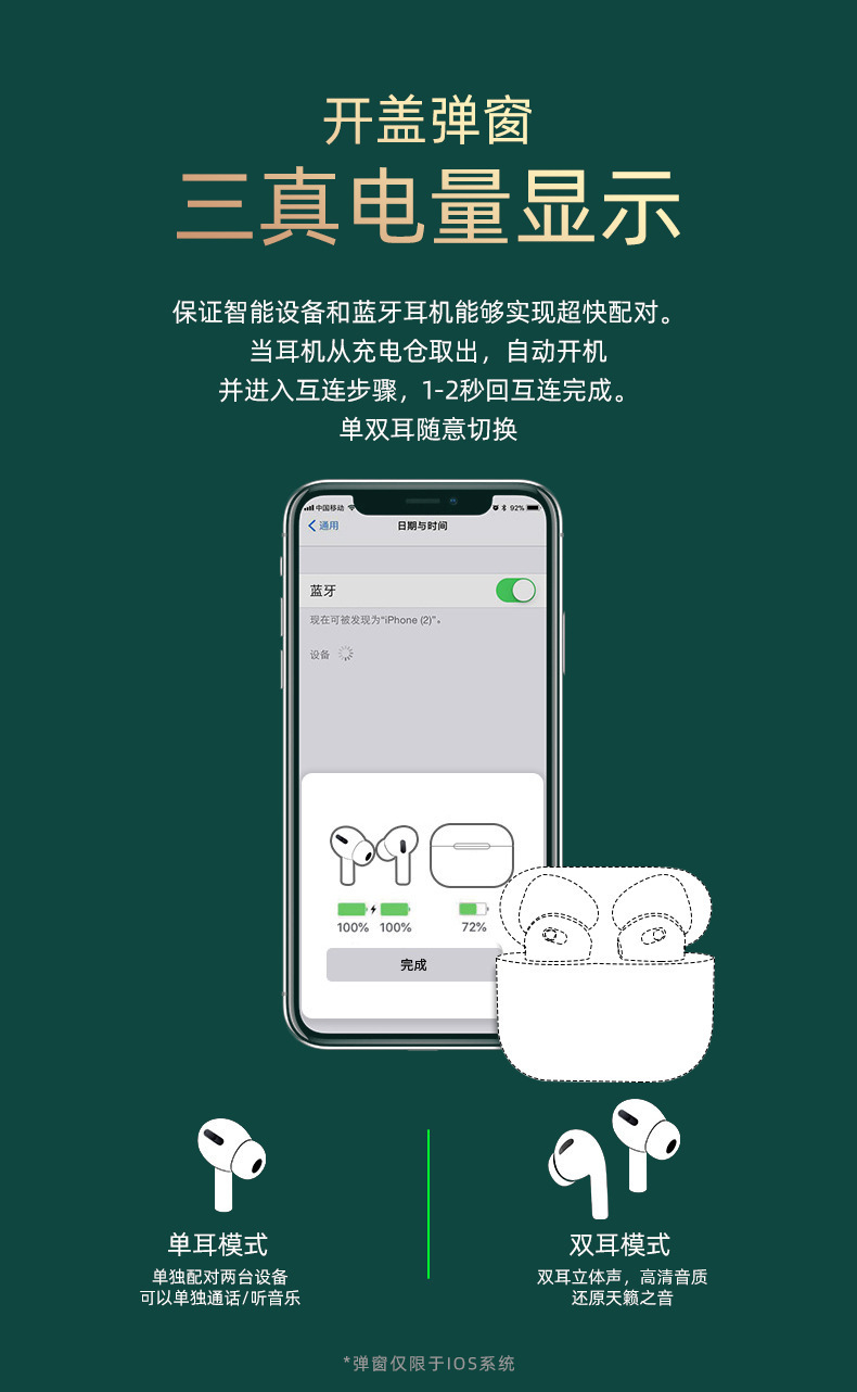 • 5세대 Yuehu(천장 1562AE) 매우 긴 배터리 수명 + 듀얼 마이크 소음 감소(40db) + 오리지널 연잎 + 원활한 전환 + 공간 오디오 + 모든 기능