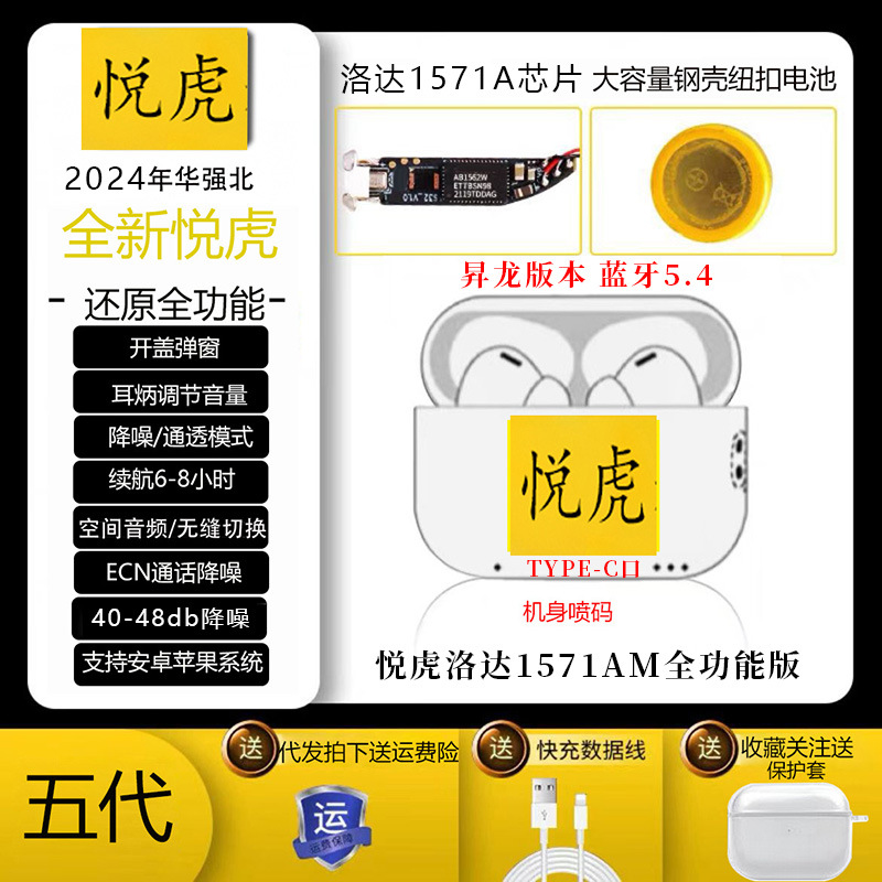 2025 새로운 Huaqiangbei 애플 Yuehu 2345 세대 블루투스 헤드셋 무선 로다 소음 감소에 적합스토어 가기