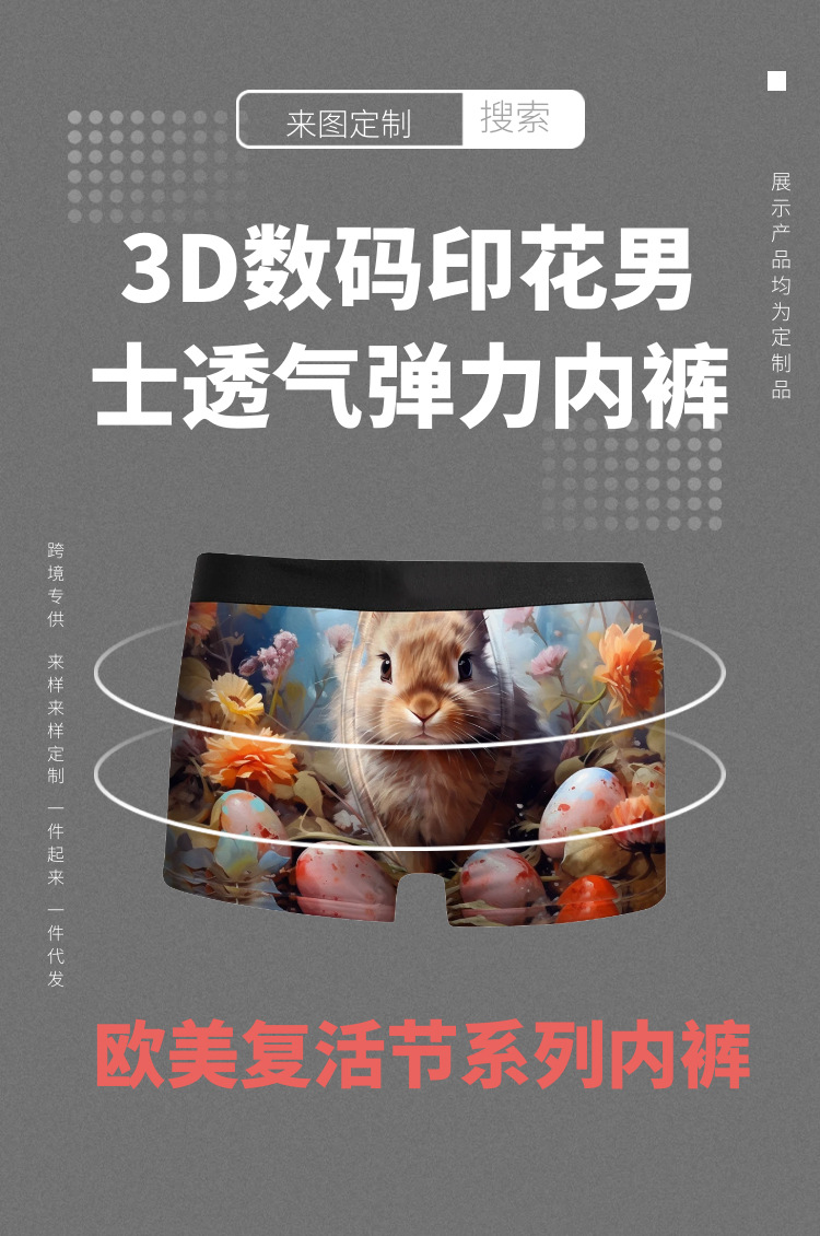 국경 간 전자 상거래 유럽과 미국의 부활절 남성 속옷 중간 허리 통기성 귀여운 섹시한 남성 복서 수영복스토어 가기