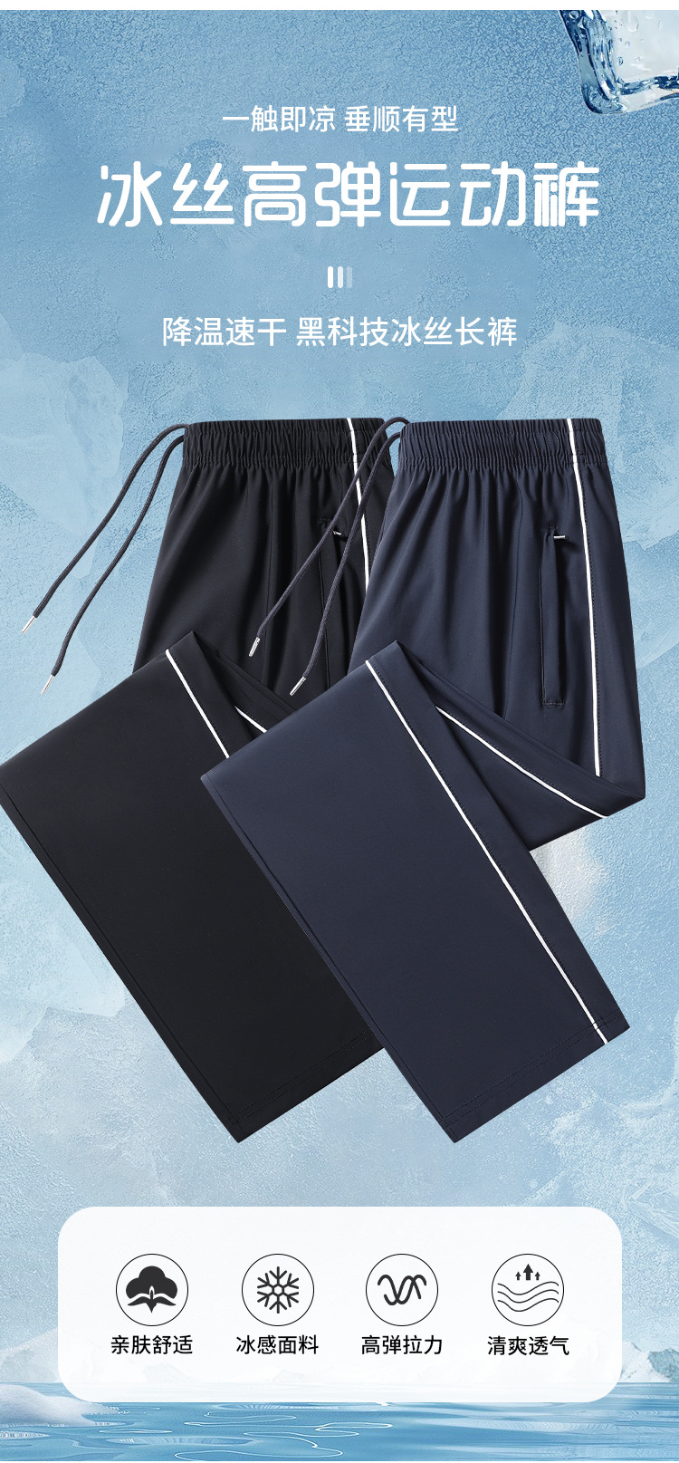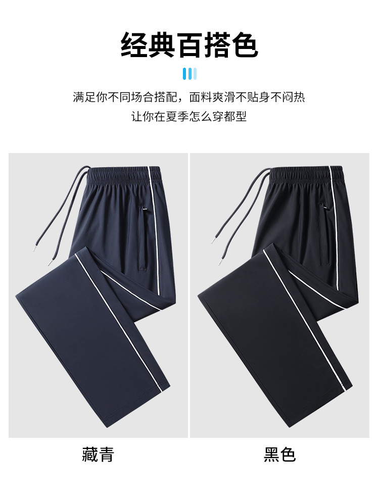 여름 아이스 실크 울트라 얇은 학교 유니폼 바지 한 바 남자와 여자의 느슨한 두 바 다크 블루 고등학생을위한 블랙 스포츠 바지스토어 가기
