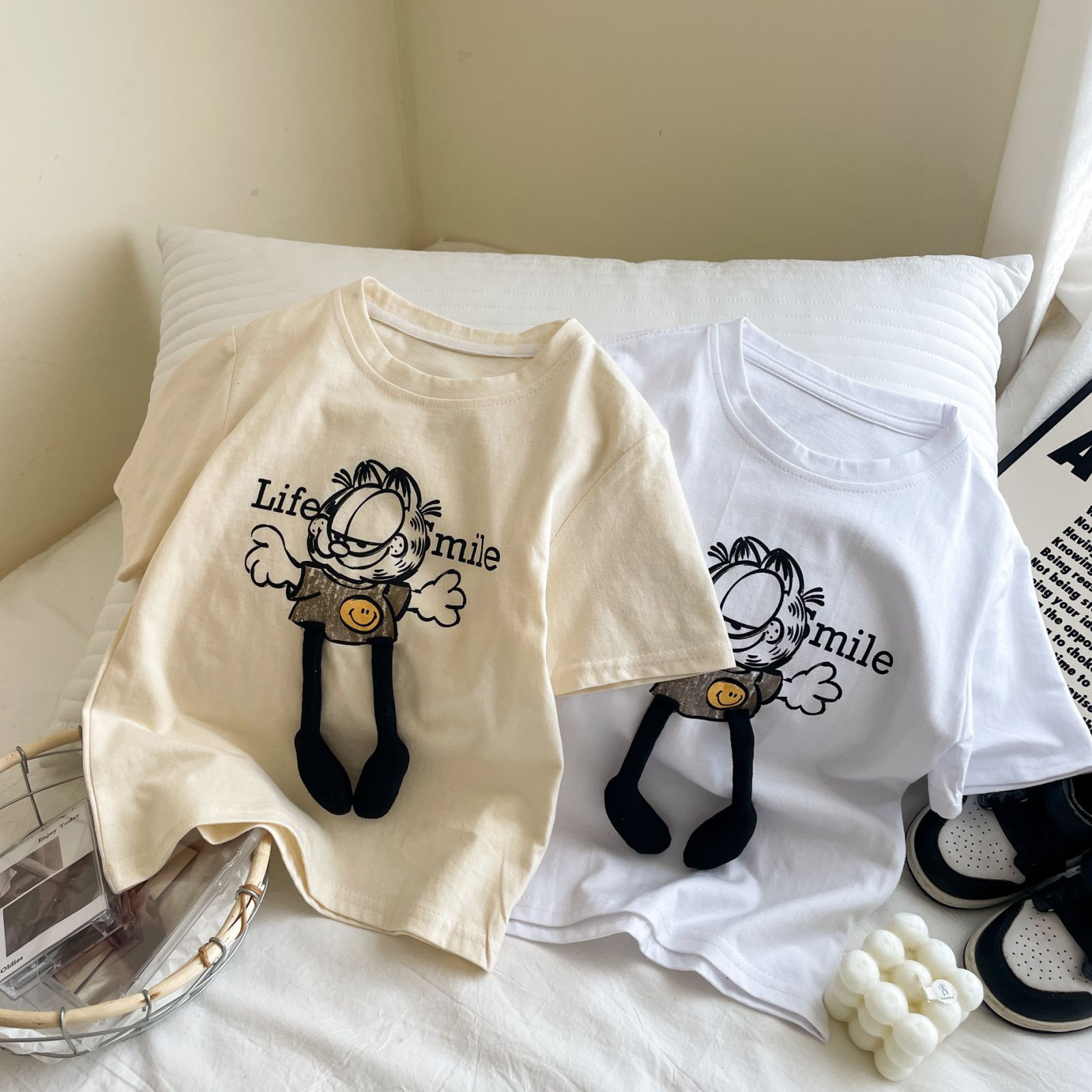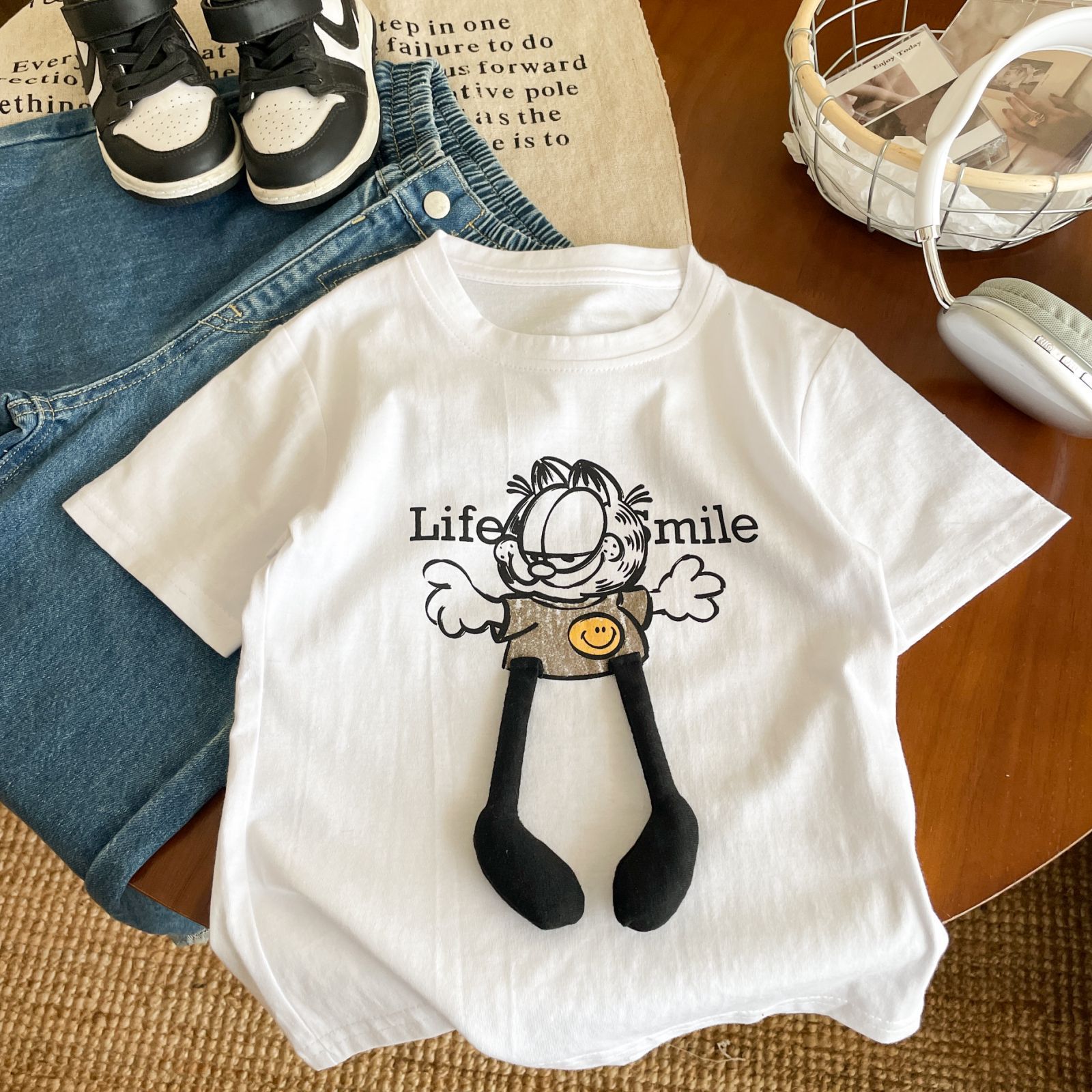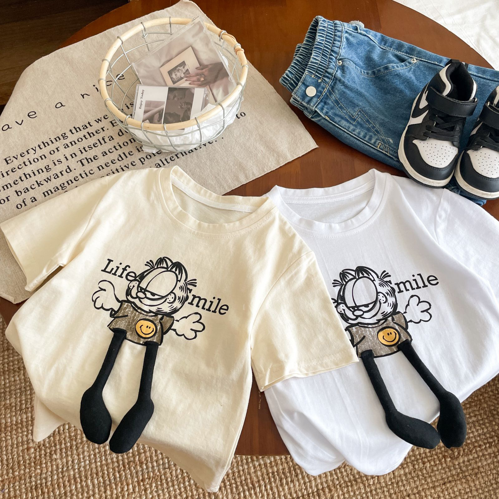 100% 면 어린이 반팔 티셔츠 여름 새 스타일 소년과 소녀를위한 만화 반팔 캐주얼 탑 중소 어린이를위한스토어 가기