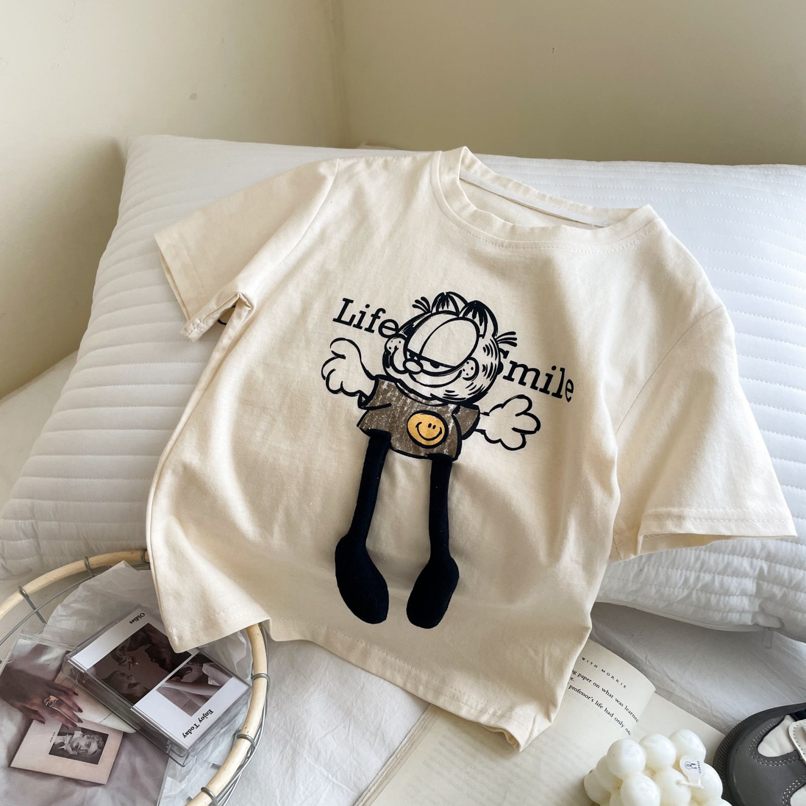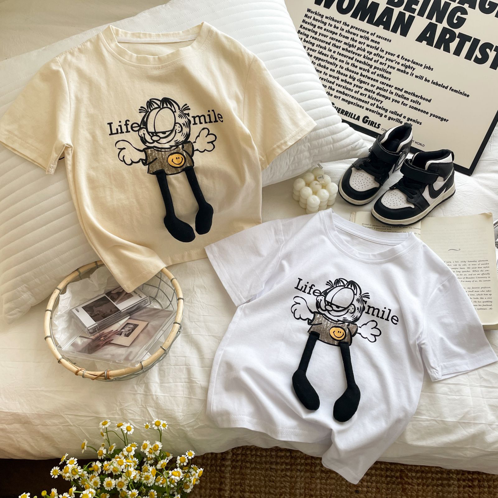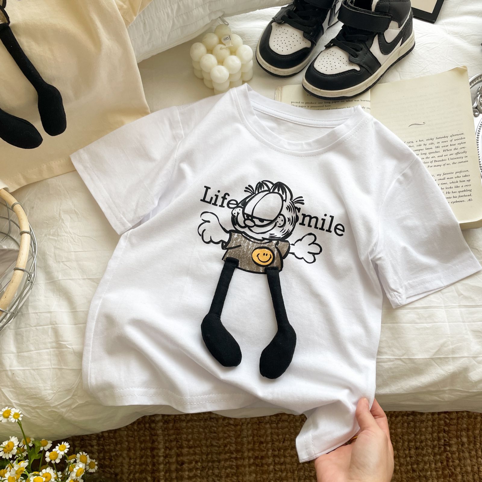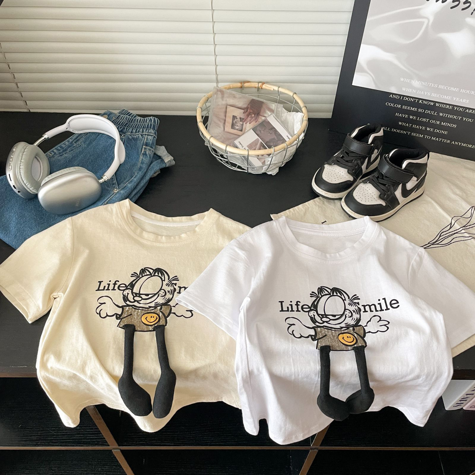 100% 면 어린이 반팔 티셔츠 여름 새 스타일 소년과 소녀를위한 만화 반팔 캐주얼 탑 중소 어린이를위한스토어 가기