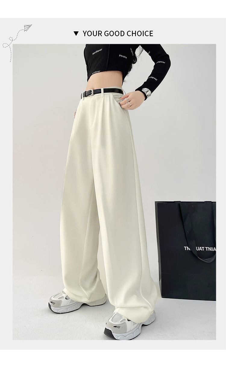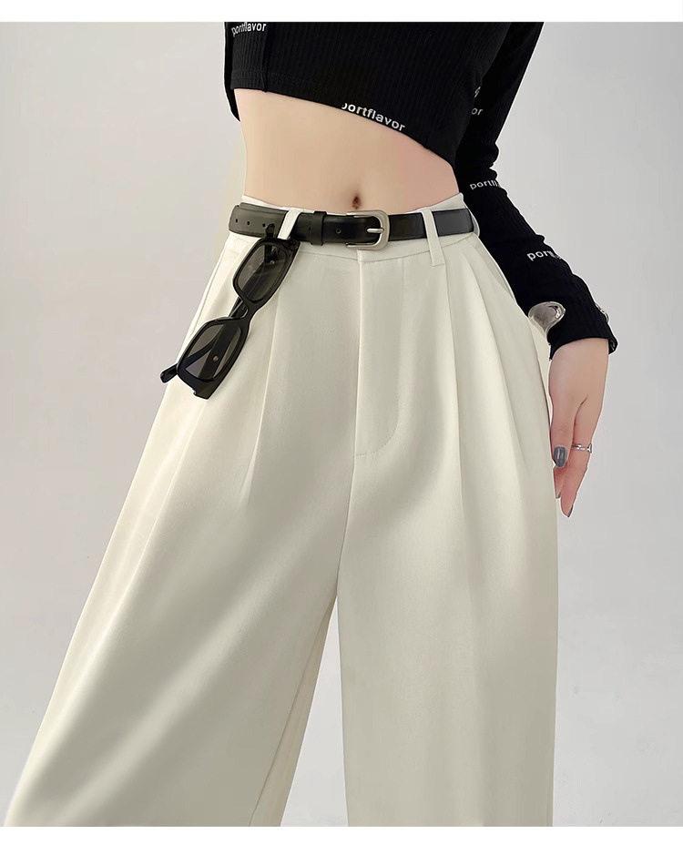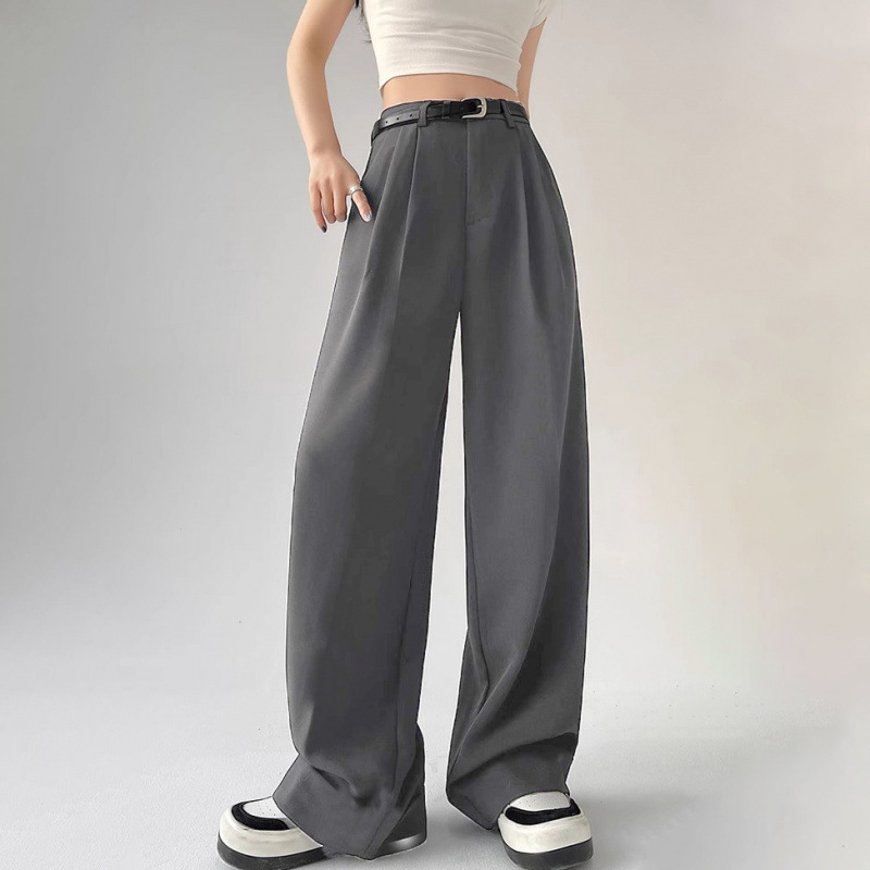 고급 세트 바지 여자 봄과 여름 2025 캐주얼 우아한 하이 웨이스트 루즈 핏 올 매치 스트레이트 와이드 레그 트레일 링 바지스토어 가기