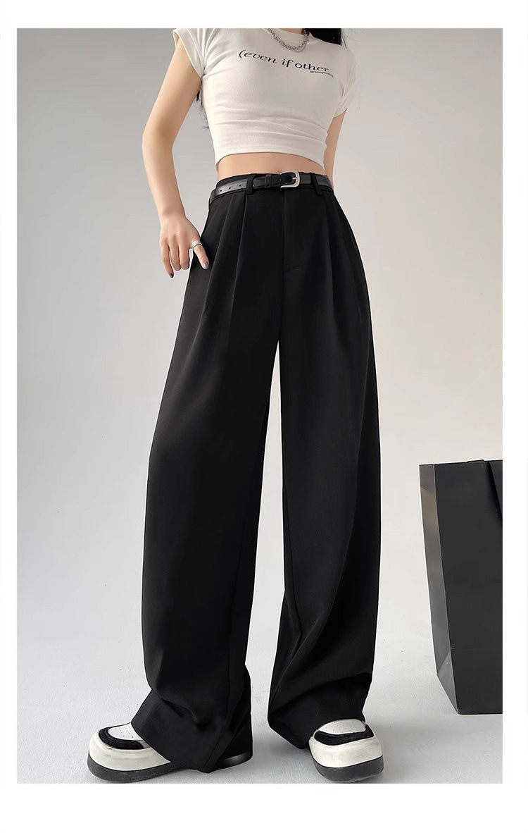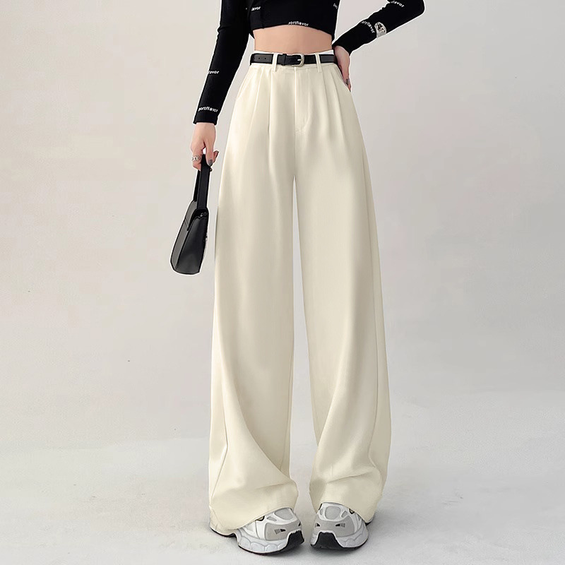고급 세트 바지 여자 봄과 여름 2025 캐주얼 우아한 하이 웨이스트 루즈 핏 올 매치 스트레이트 와이드 레그 트레일 링 바지