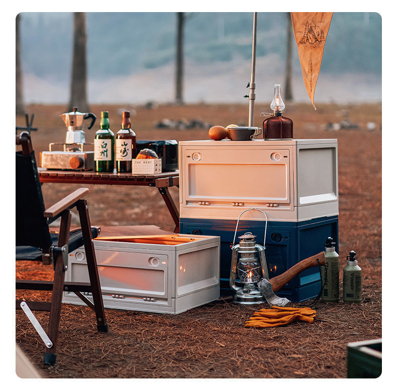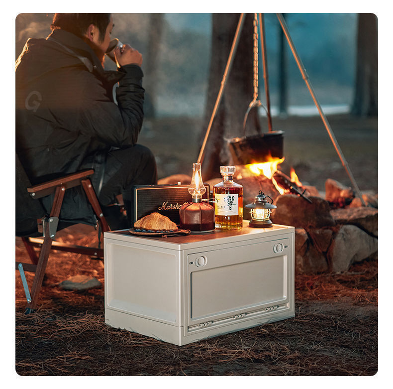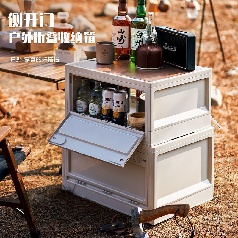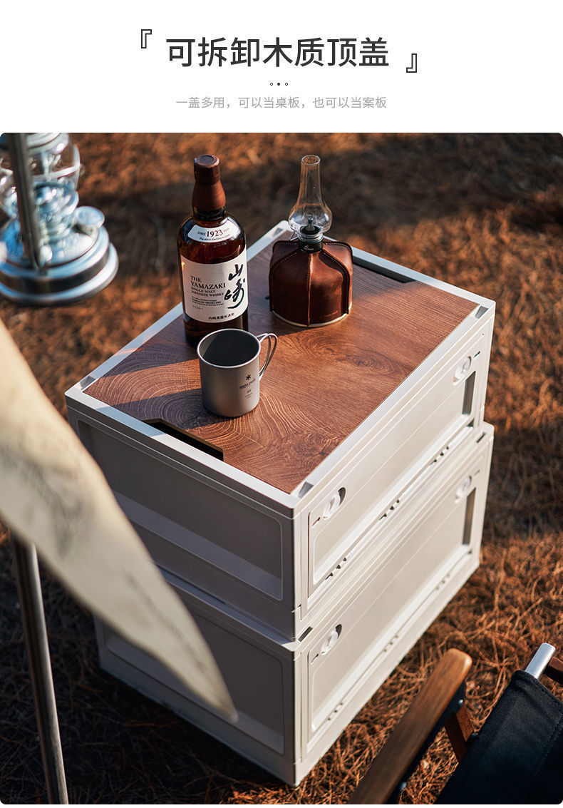 야외 접이식 스토리지 박스 사이드 오프닝 스토리지 박스 캠핑 캠핑 나무 커버 테이블 자동차 트렁크 마감 상자스토어 가기