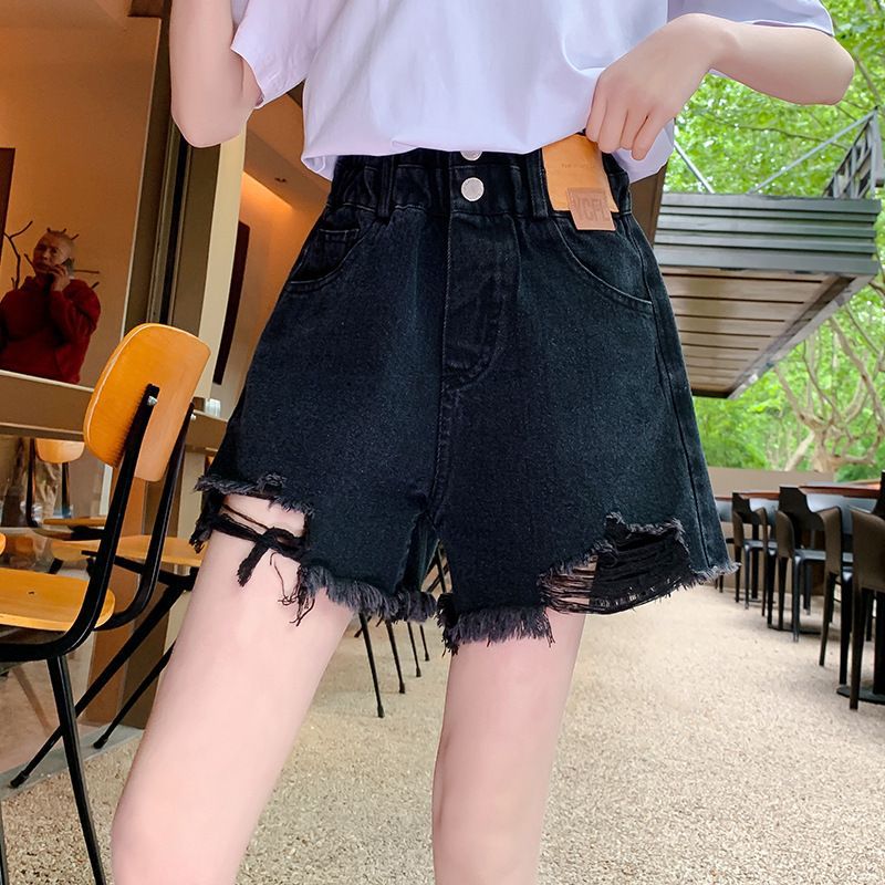 소녀 데님 반바지 여름 새로운 한국 스타일 어린이 서양식 구멍 라벨링 데님 핫 바지 빅 키즈 반바지 트렌디