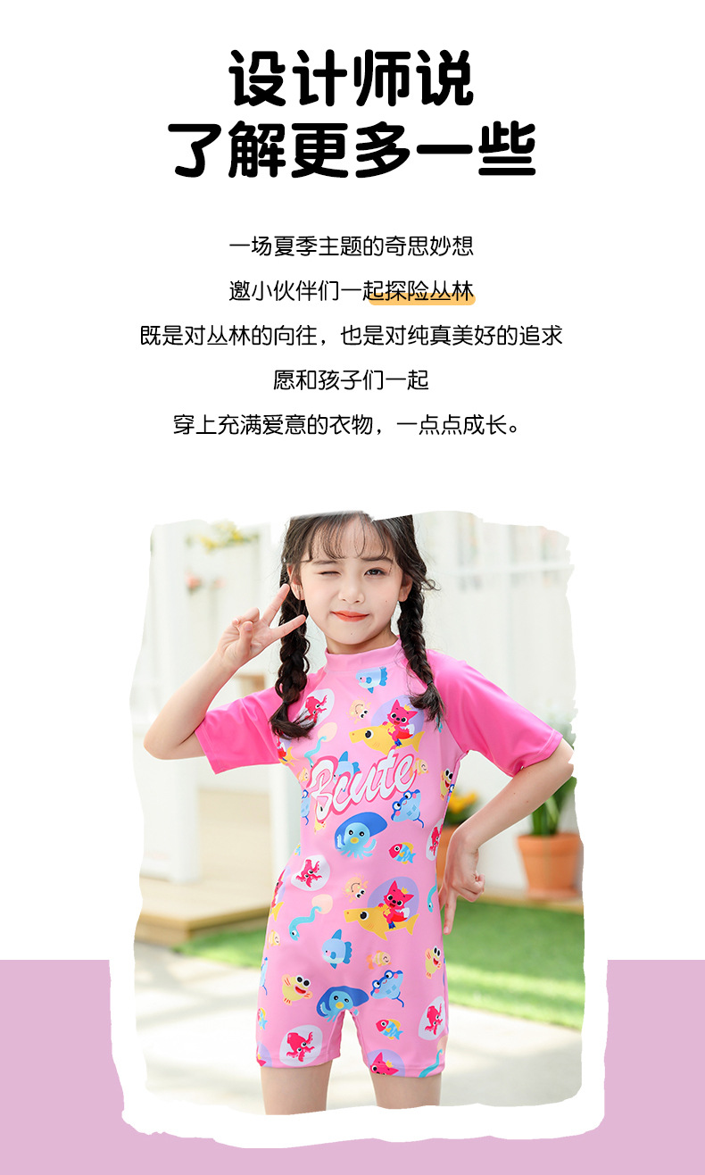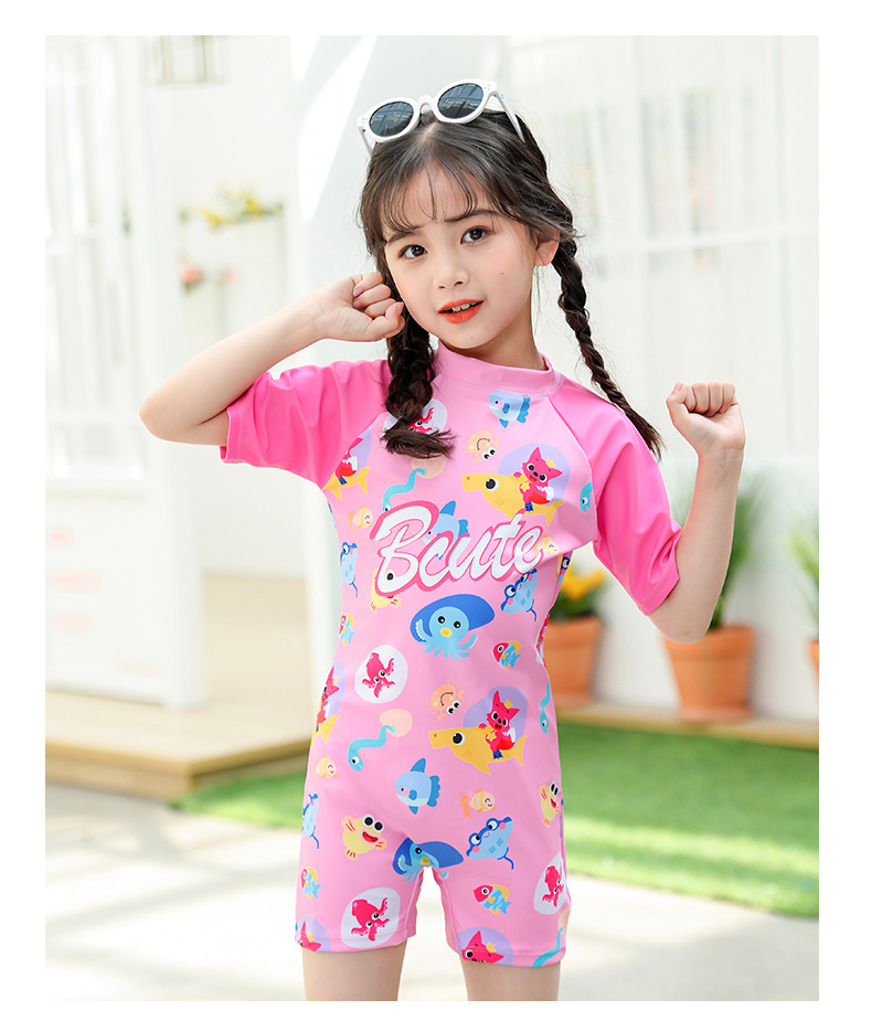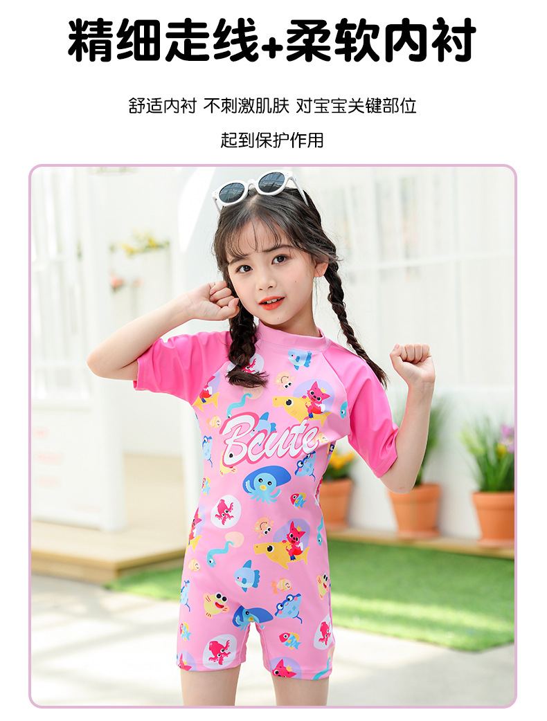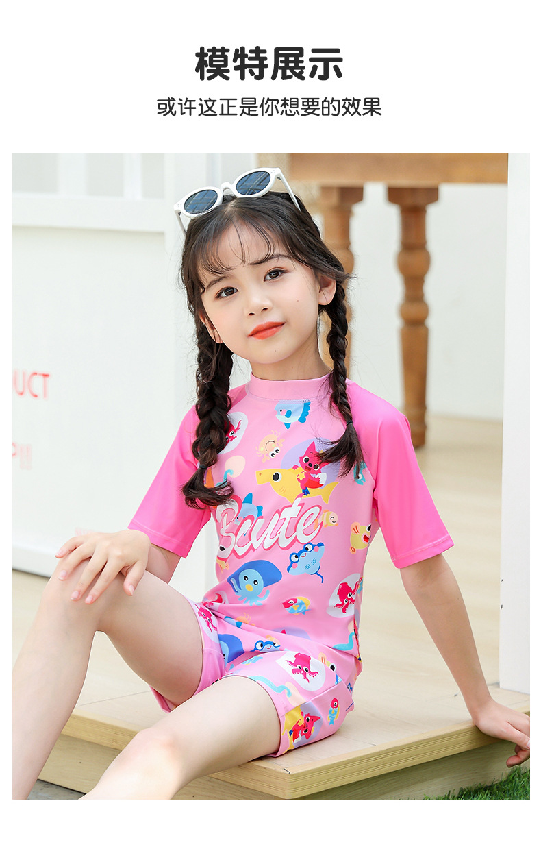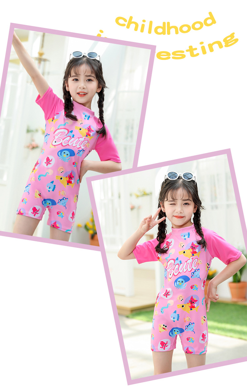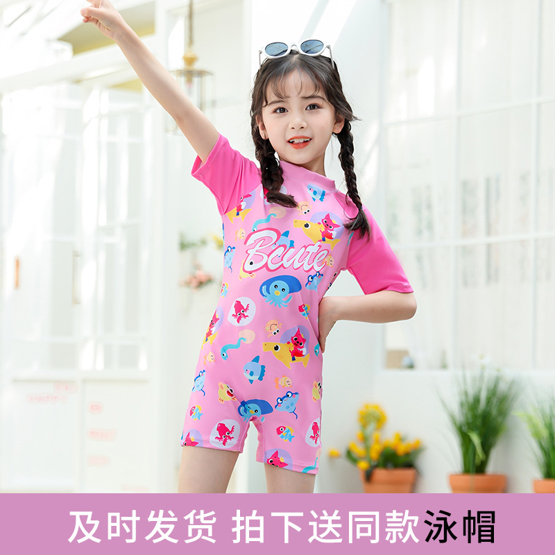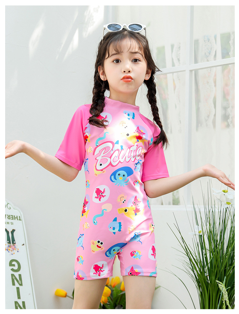 새로운 어린이 수영복 소녀 태양 보호 속건성 노출 방지 만화 아기 공주 스타일 귀여운 복서 수영복스토어 가기