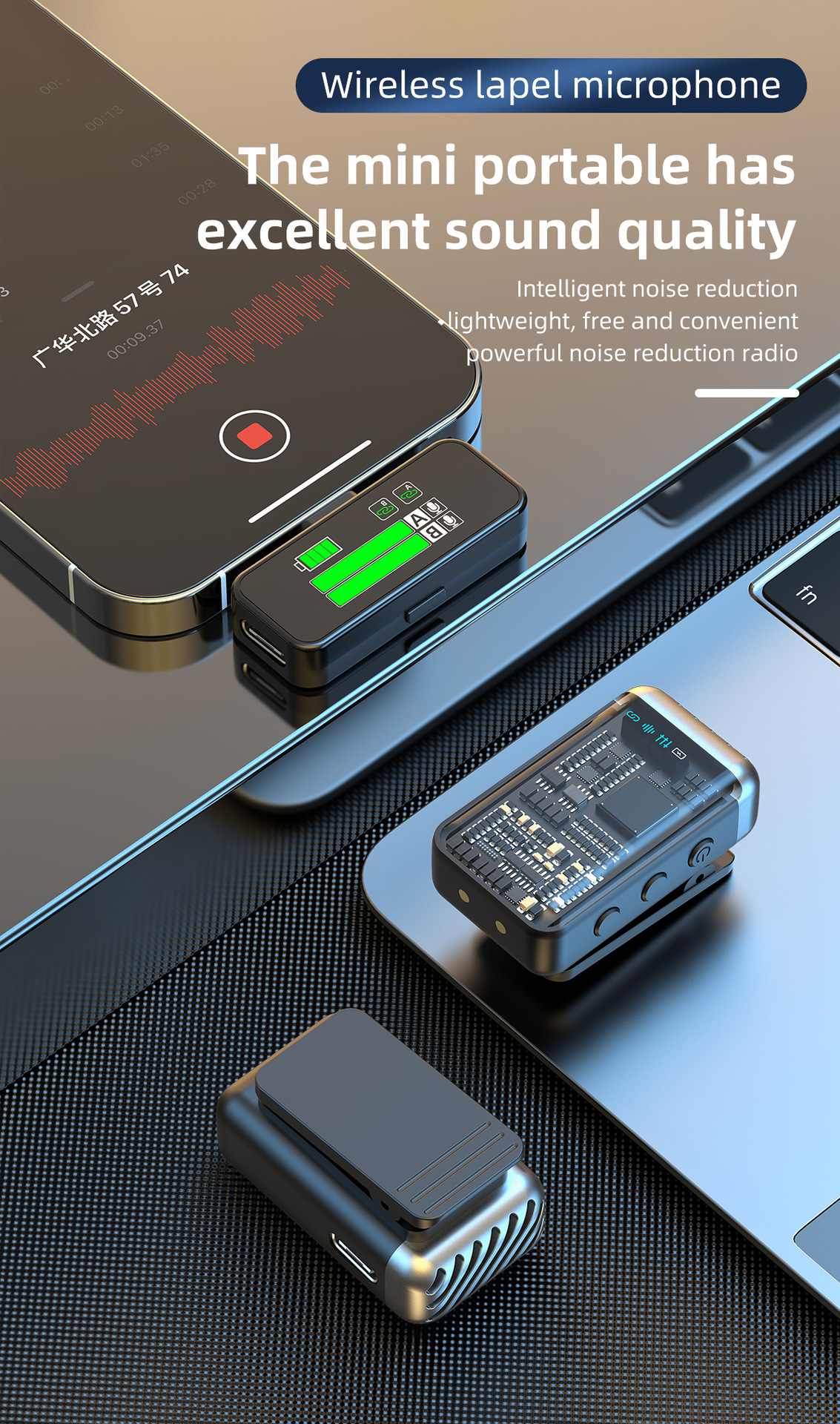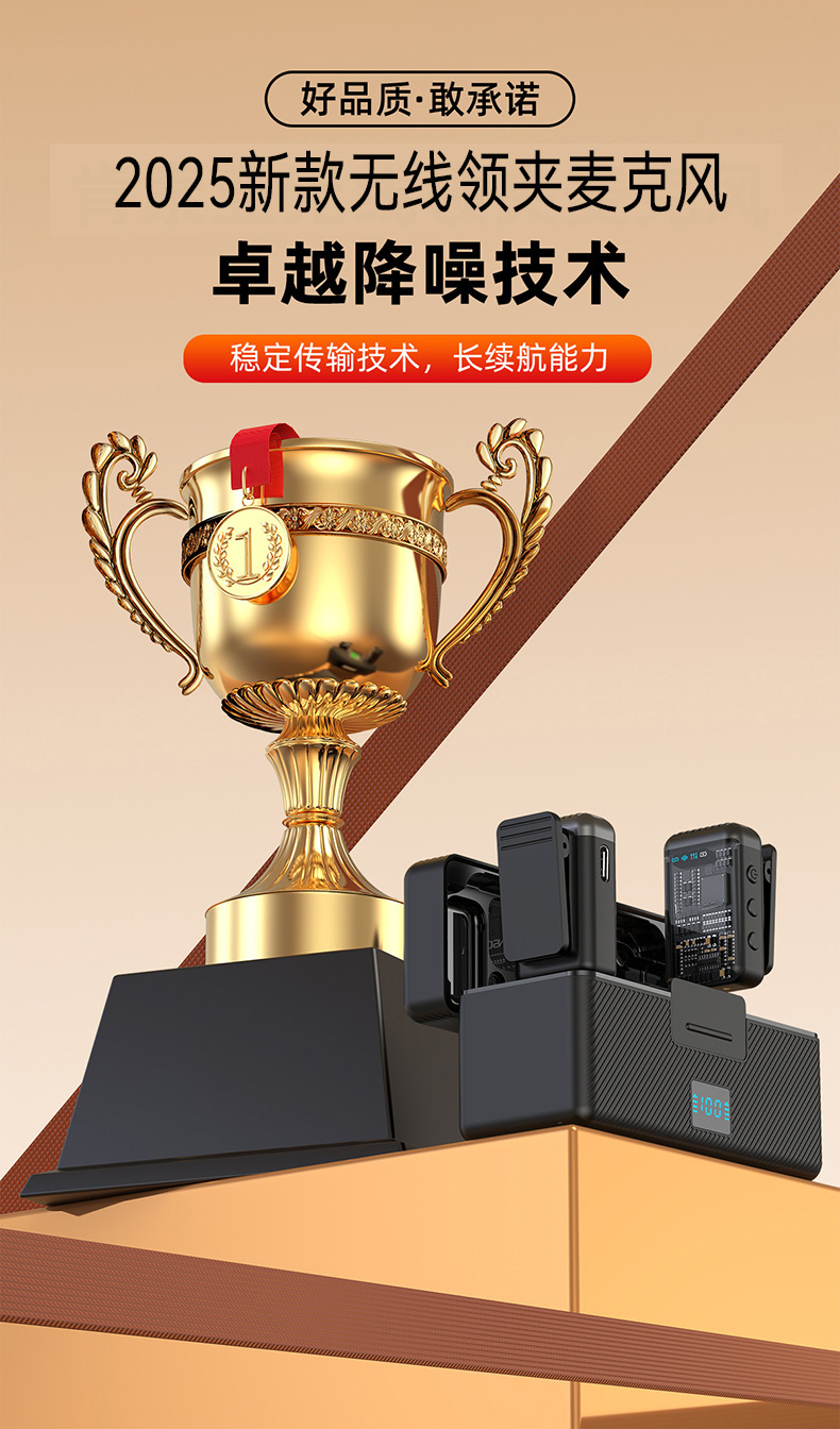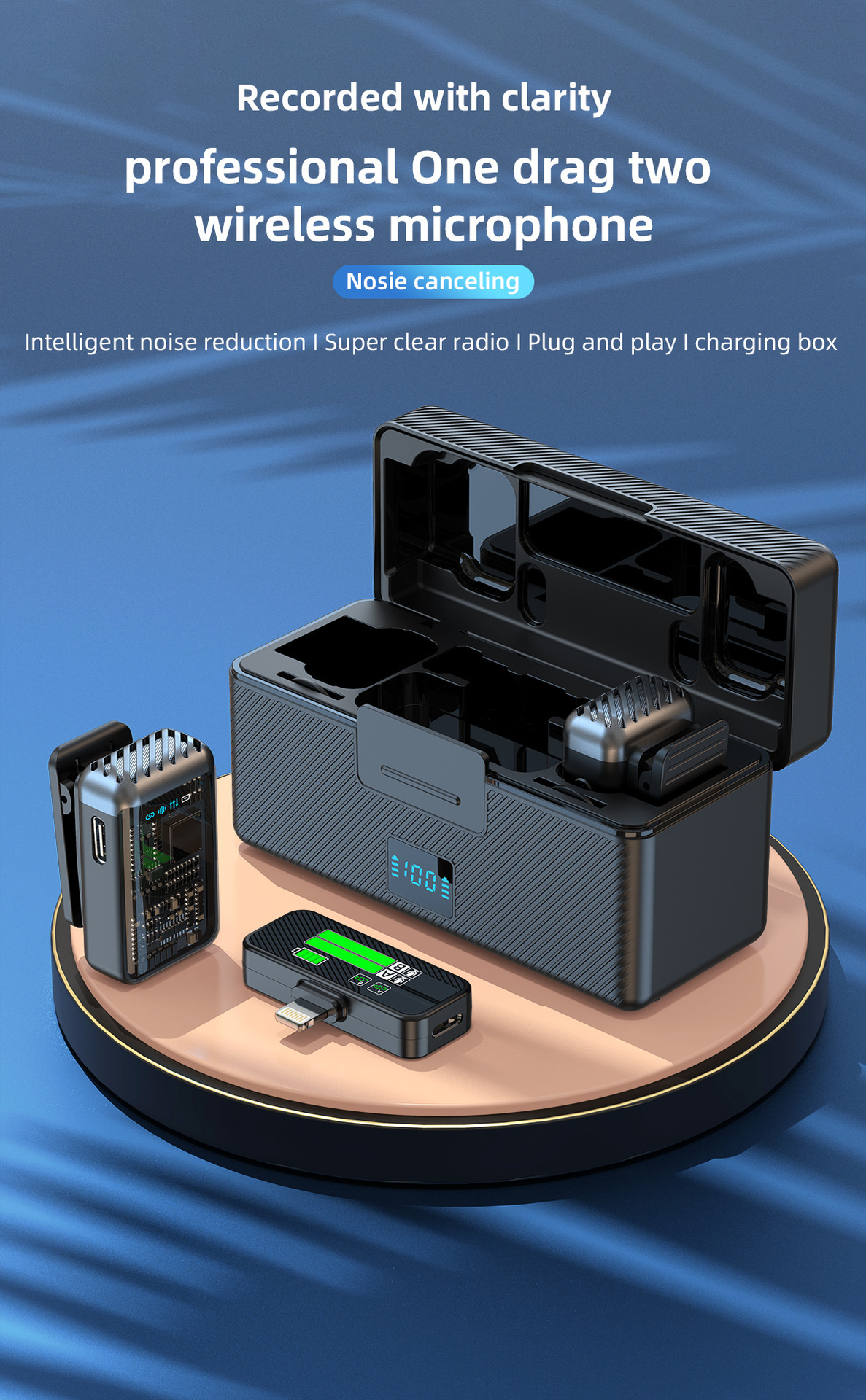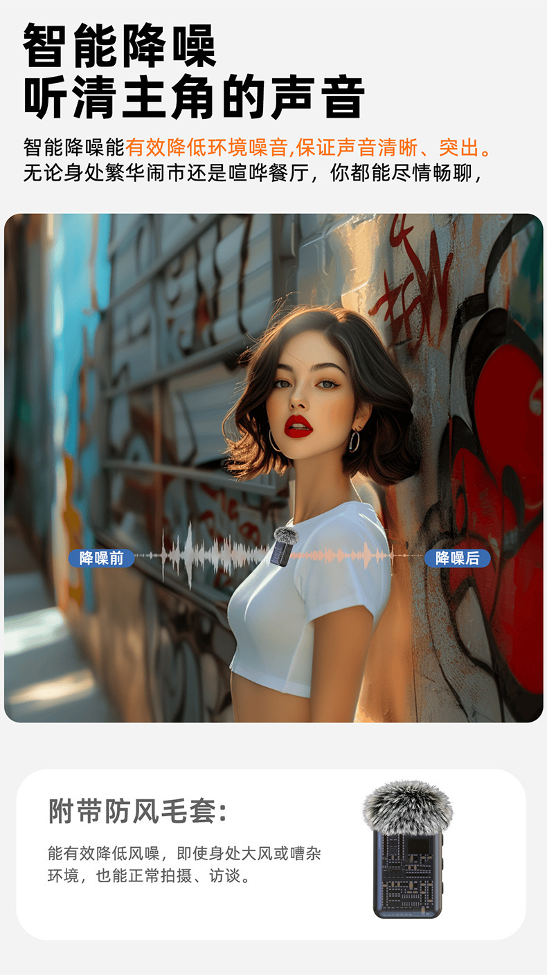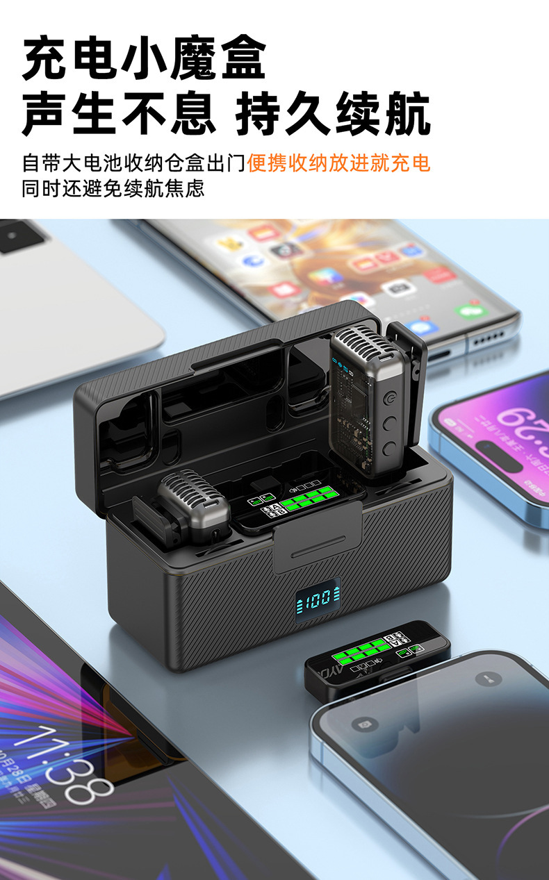 2025 새로운 무선 칼라 클립 마이크 한 키 소음 감소 잔향은 창고가있는 3 레벨 볼륨 조정 1 드래그 2 일 수 있습니다.
