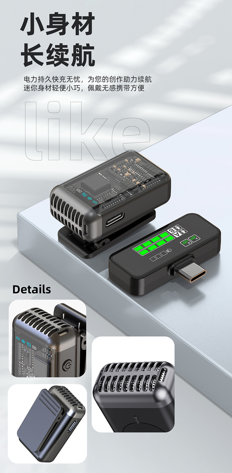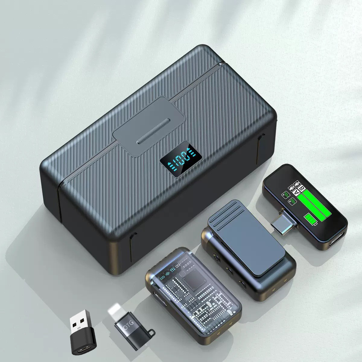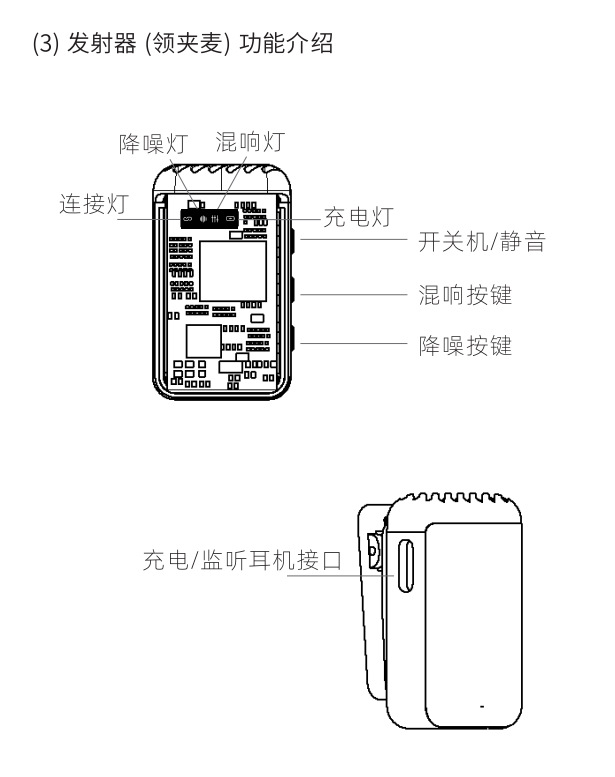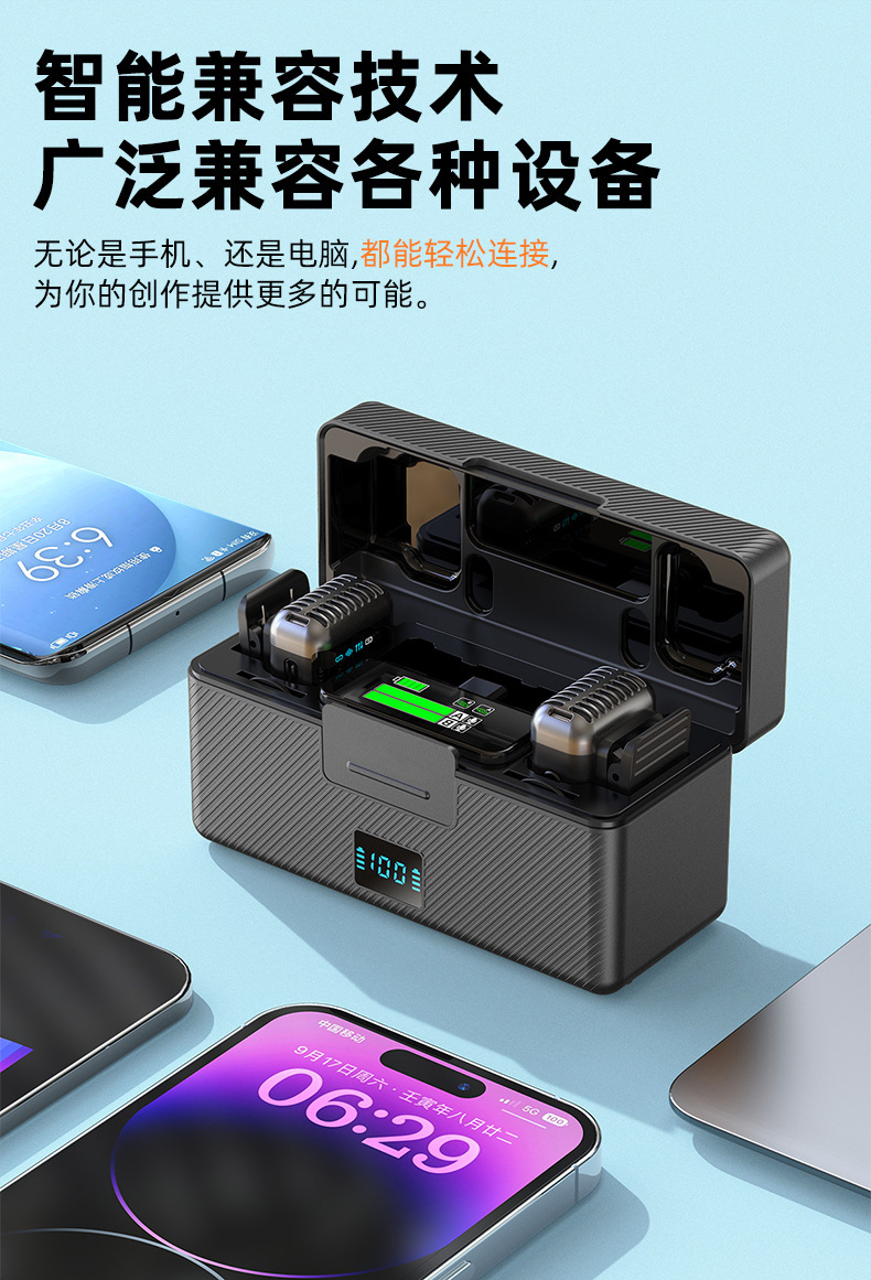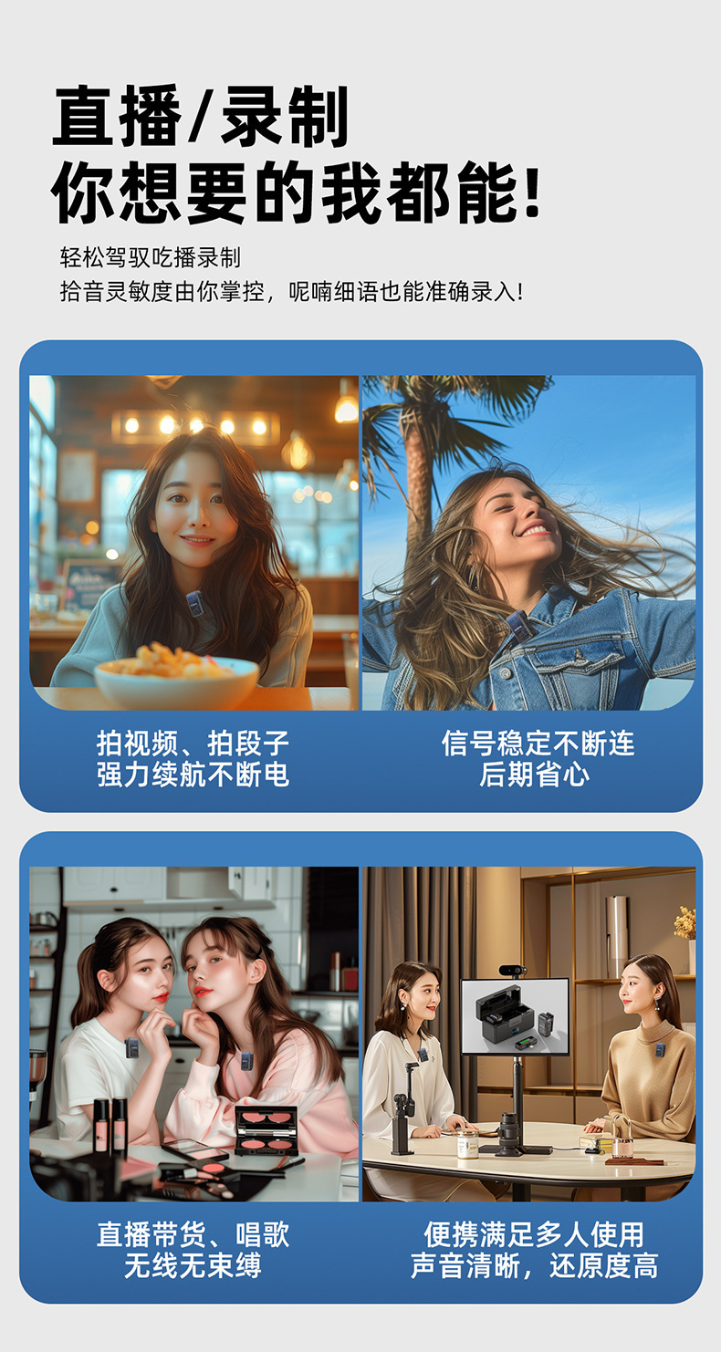 2025 새로운 무선 칼라 클립 마이크 한 키 소음 감소 잔향은 창고가있는 3 레벨 볼륨 조정 1 드래그 2 일 수 있습니다.