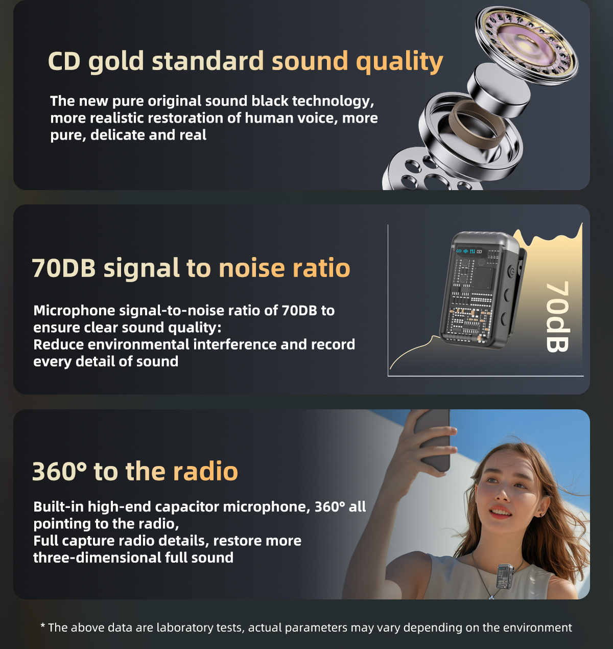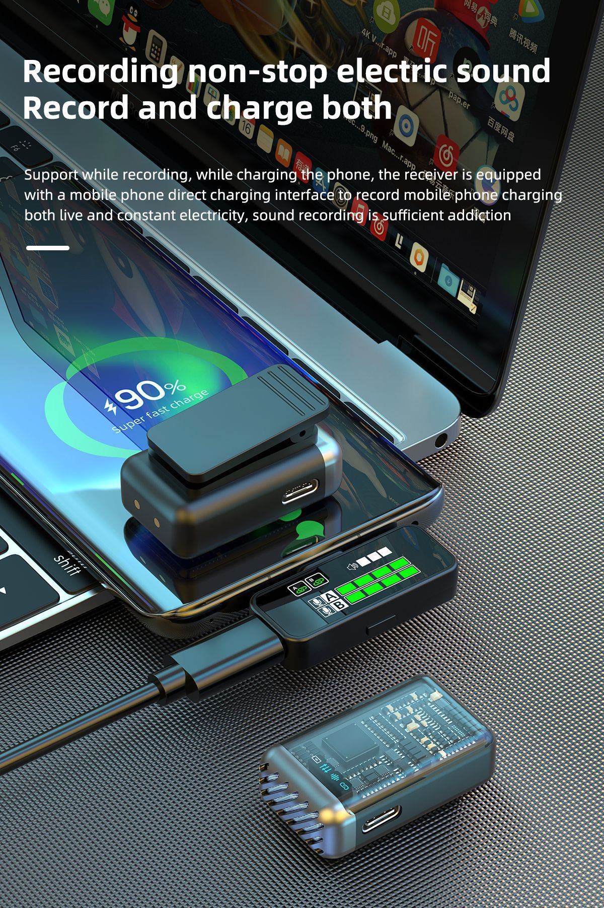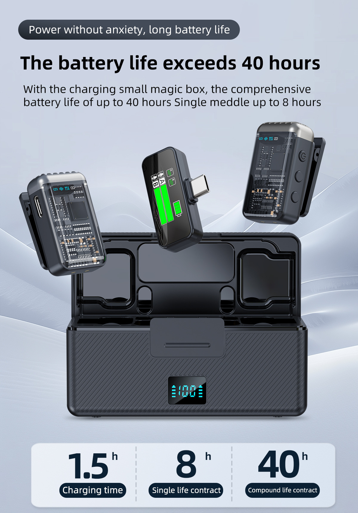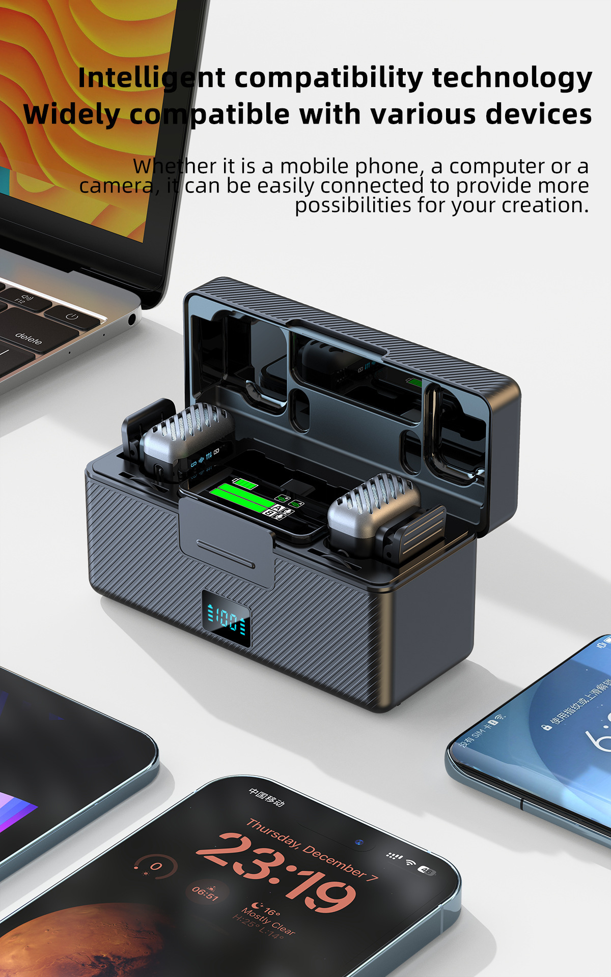 2025 새로운 무선 칼라 클립 마이크 한 키 소음 감소 잔향은 창고가있는 3 레벨 볼륨 조정 1 드래그 2 일 수 있습니다.