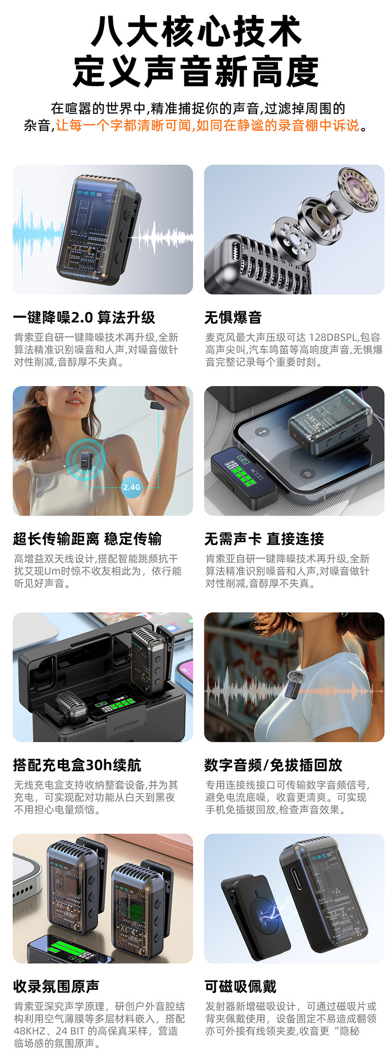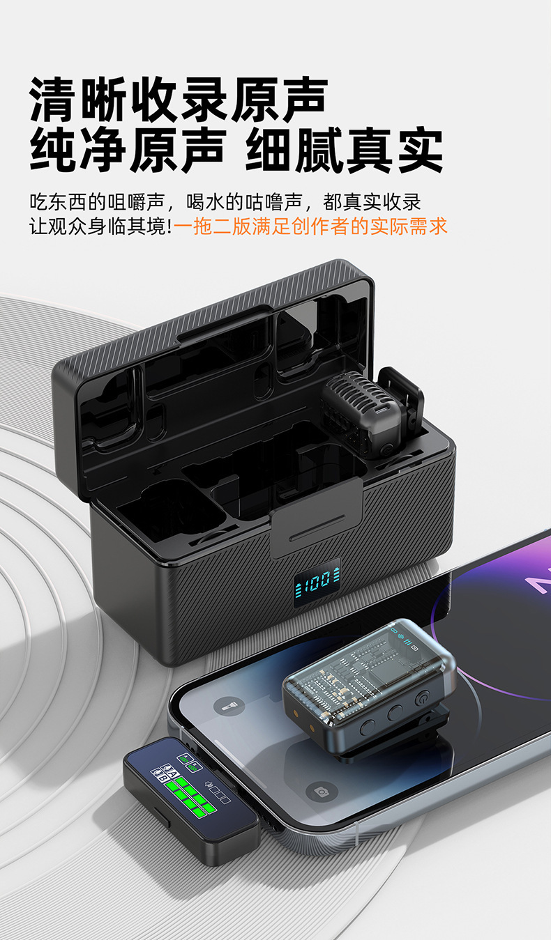 2025 새로운 무선 칼라 클립 마이크 한 키 소음 감소 잔향은 창고가있는 3 레벨 볼륨 조정 1 드래그 2 일 수 있습니다.스토어 가기