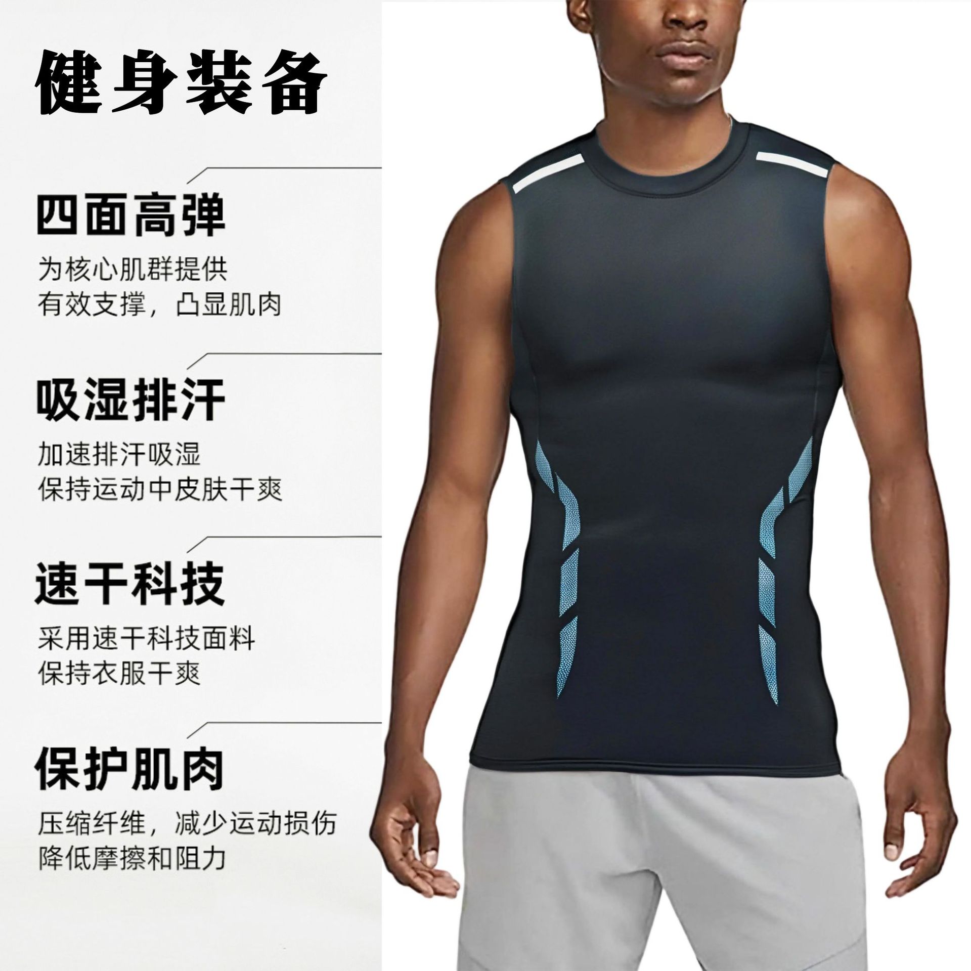 농구 타이트 민소매 조끼 탱크 탑 남성용 속건성 러닝 스포츠 피트니스 스트레치 베이스 트레이닝 아우터웨어