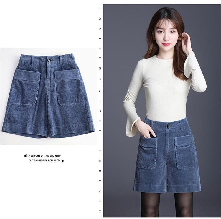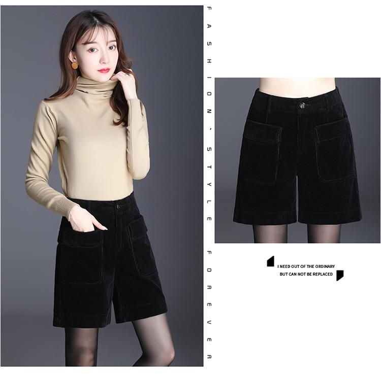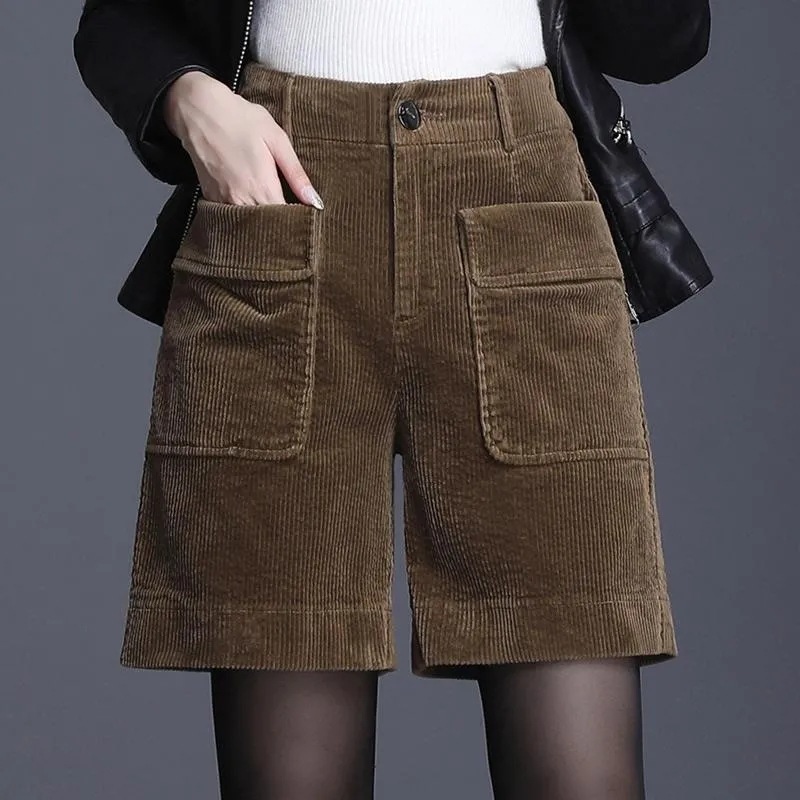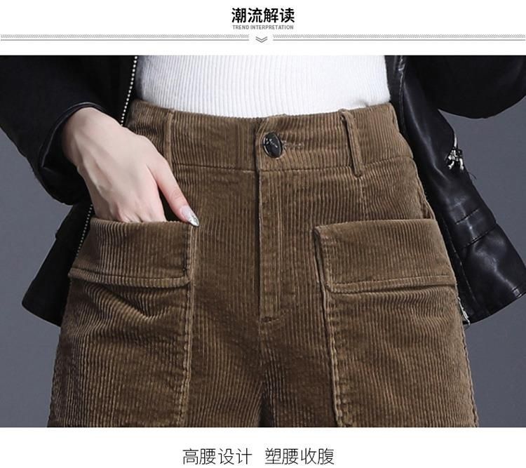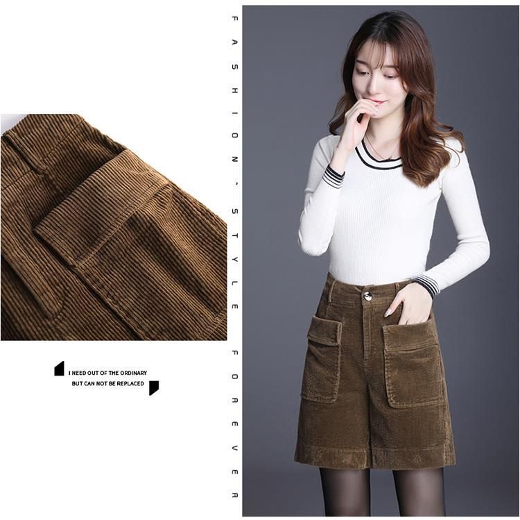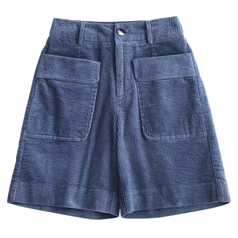 8926 코듀로이 와이드 레그 스트레이트 반바지 2024 신작 여성 봄, 가을 루즈한 하이웨이스트 코듀로이 5부 바지 여성용스토어 가기