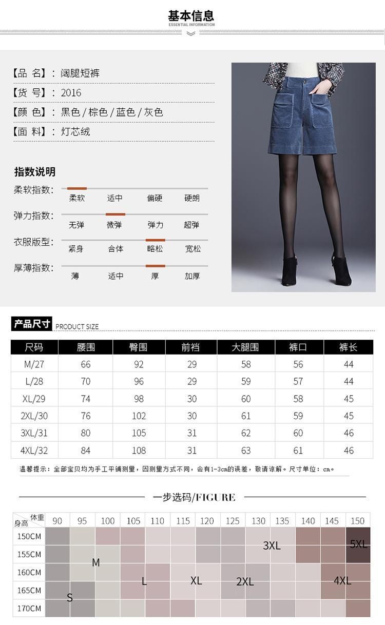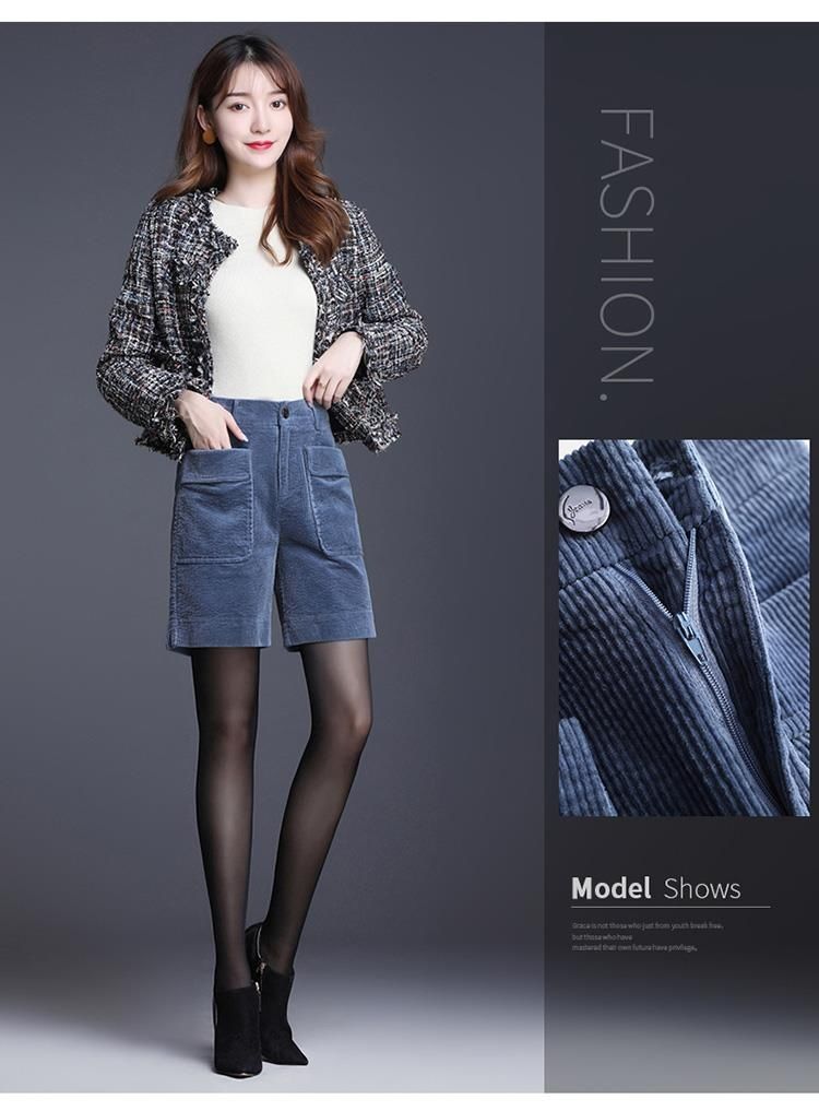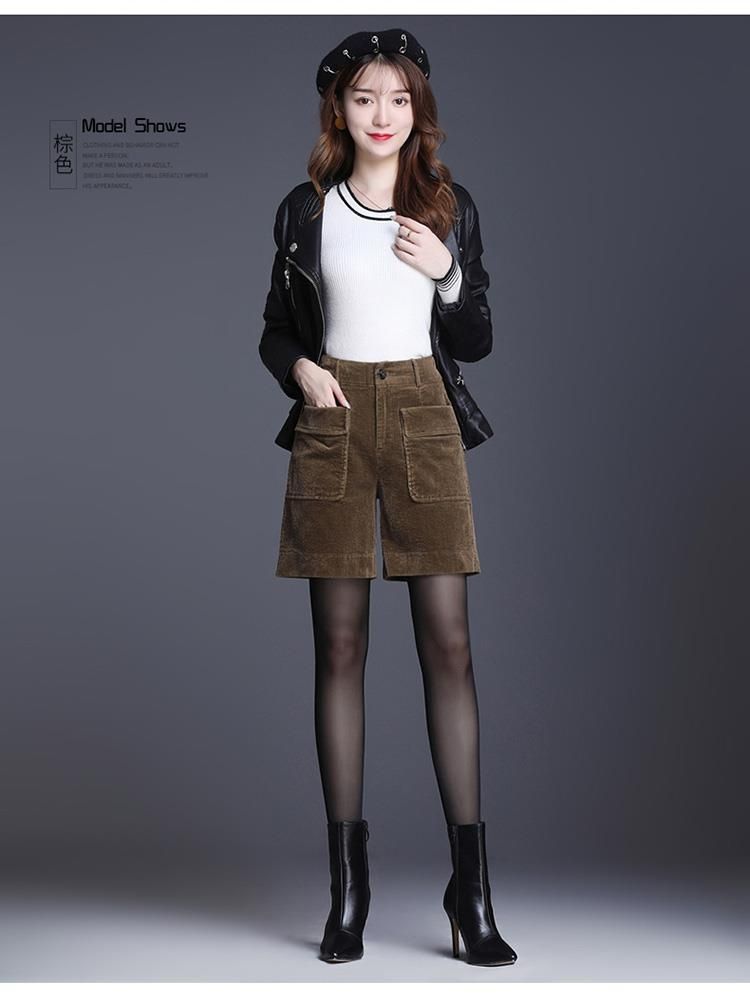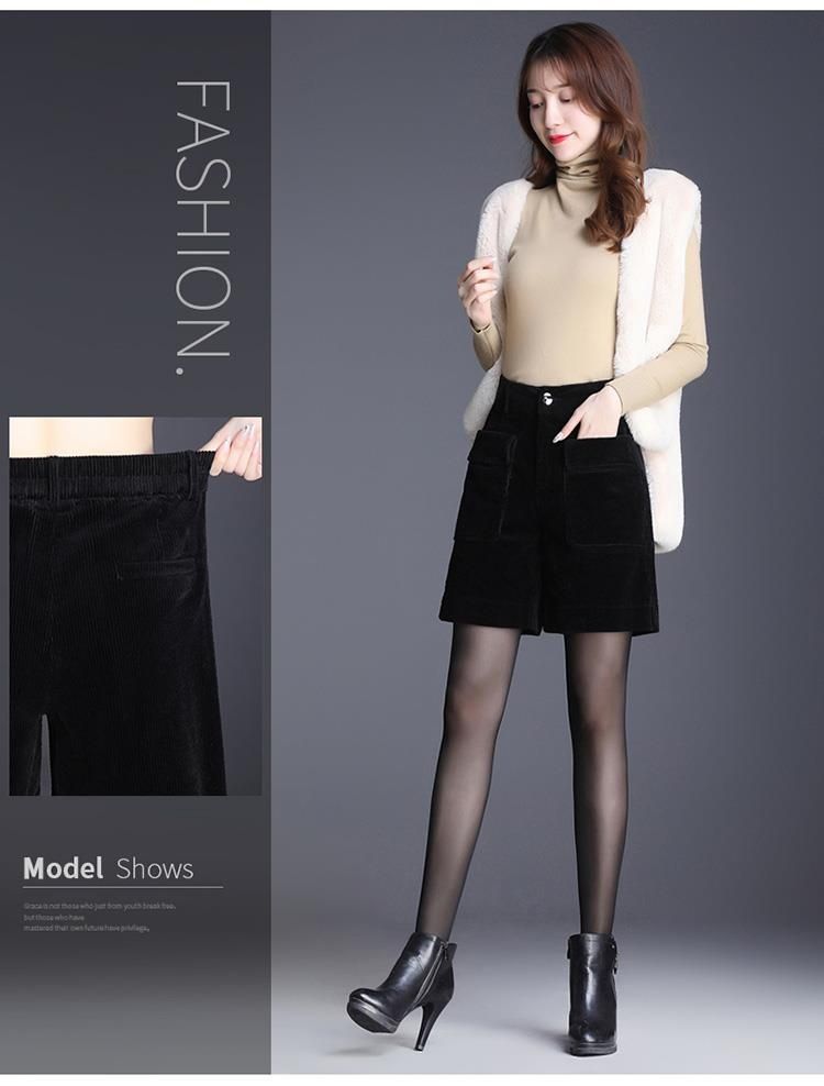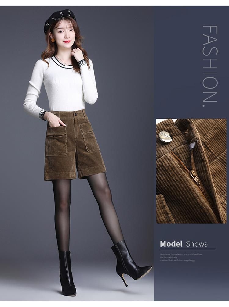 8926 코듀로이 와이드 레그 스트레이트 반바지 2024 신작 여성 봄, 가을 루즈한 하이웨이스트 코듀로이 5부 바지 여성용스토어 가기