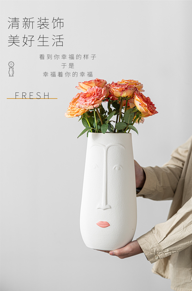 재고 도매 유럽과 미국의 바람 얼굴 세라믹 꽃병 창조적 인 추상 얼굴 꽃 홈 아트 장식 국경